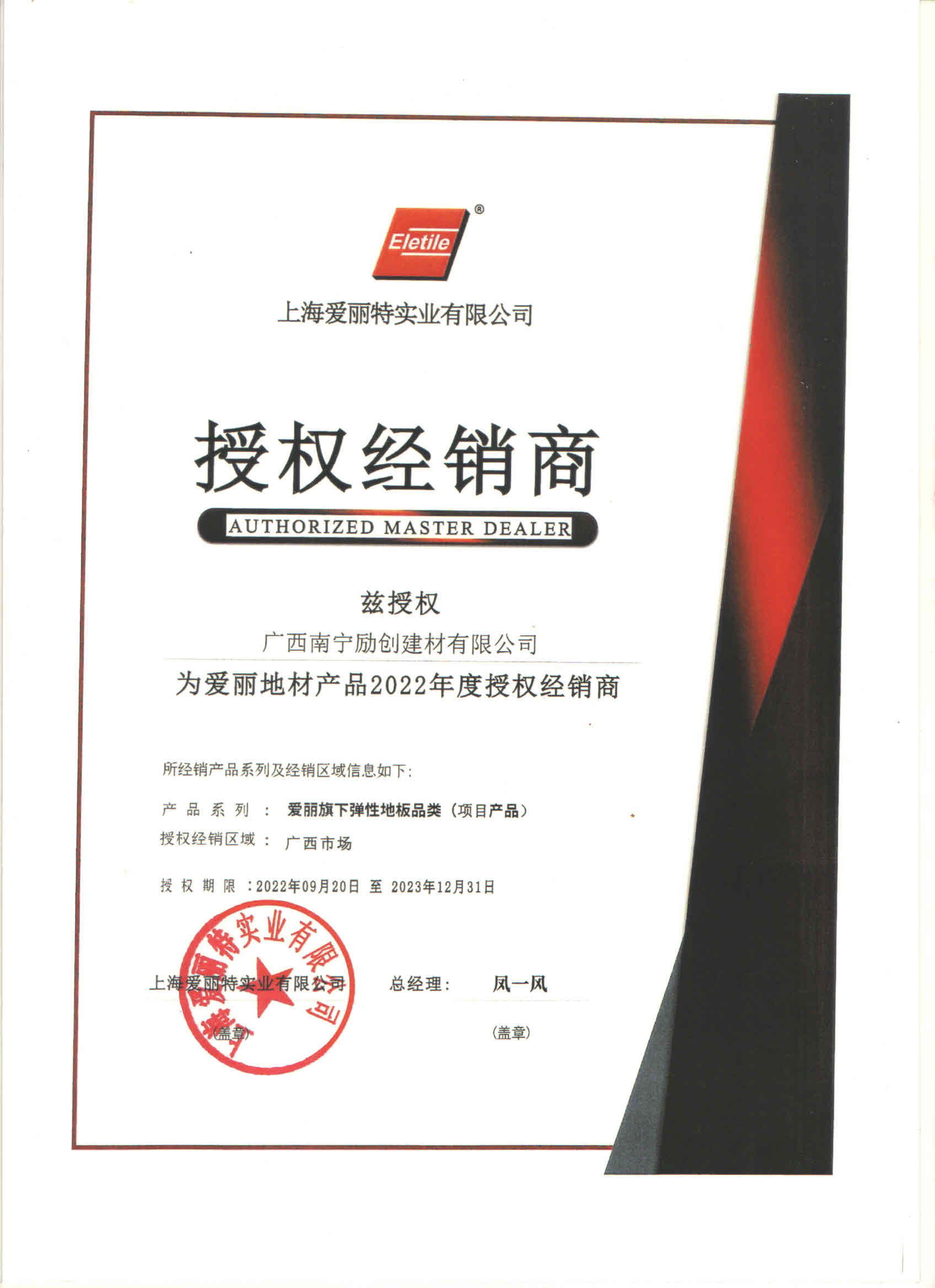 广西南宁励创建材有限公司是爱丽家居科技股份有限公司授权的广西区品牌推广商及销售服务平台,爱丽家居(Eletile)作为国内最早的PVC地板生产厂家之一,2020年3月23日在上海证券交易所A股主板上市(股票代码:603221),爱丽地板产品依据欧洲标准生产,通过了欧美严苛的环保测试和性能测试,不但满足国家标准且优于国家标准。公司致力于为广大的工程项目商、建筑师、设计师、项目经理、采购经理提供量身定制、高性价比的地材工程解决方案,为更多的建设项目提供兼具环保性、舒适性、丰富性、耐用性及美观性的高品质产品!