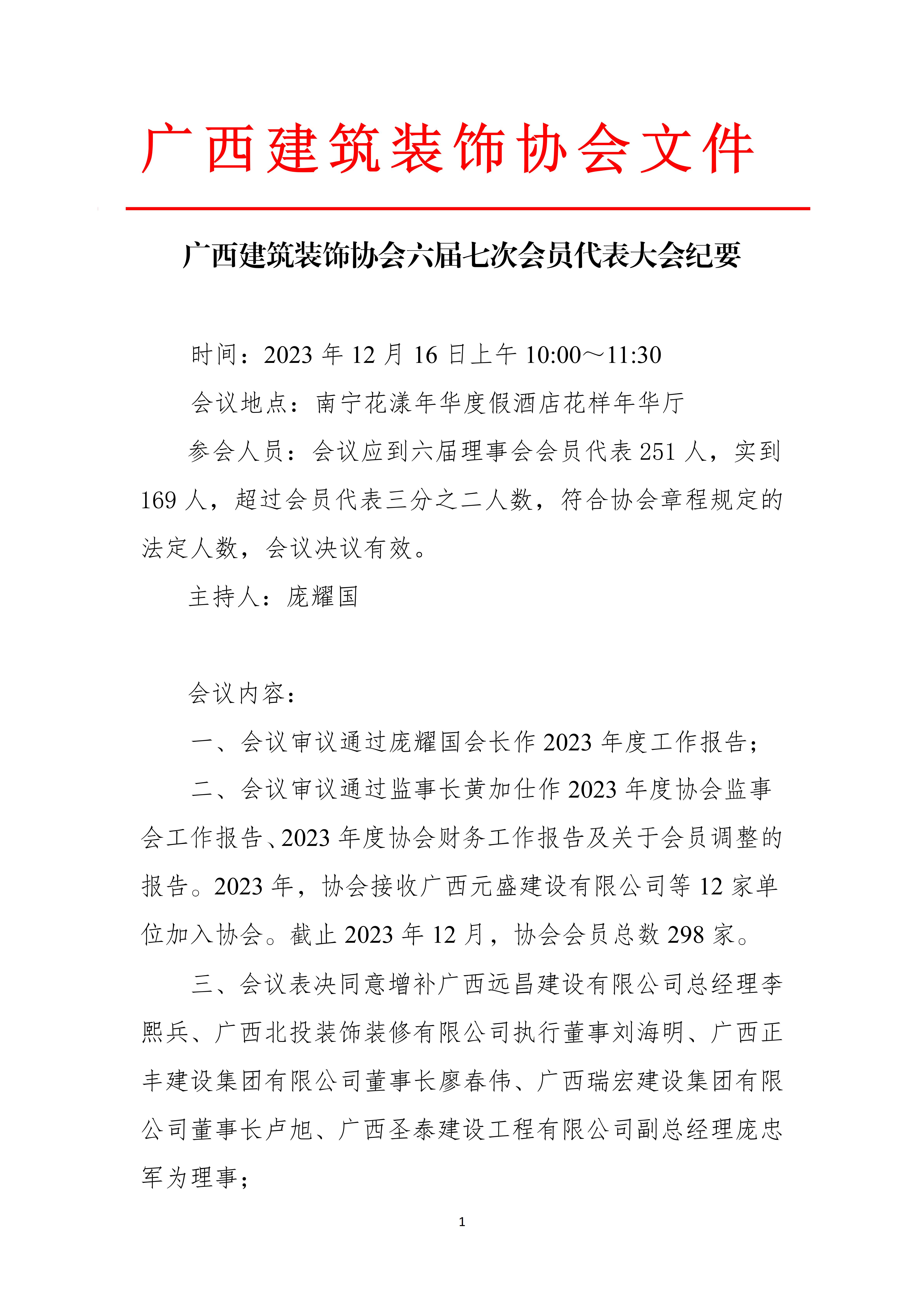 六届七次会员代表大会会议纪要