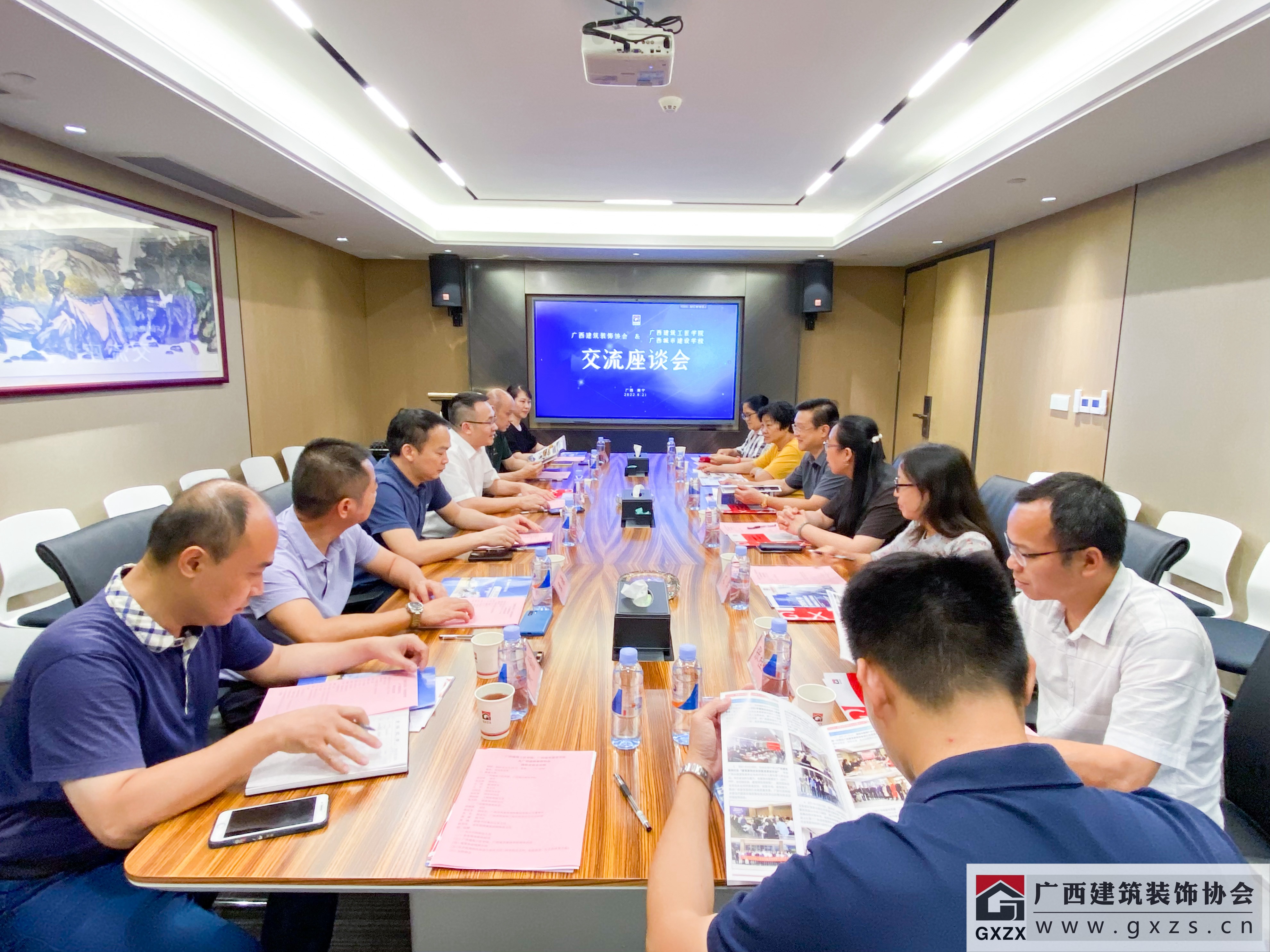 协会副会长、广西呈美建筑装饰集团有限公司董事长黄运东、广西英特装饰工程有限责任公司总经理李军等两位协会负责人作为企业代表,就企业在人才方面的实际需求与蒋校长一行进行了较深入的探讨、交流,并同意今后加强联系,开展用工人才培养方面的合作。