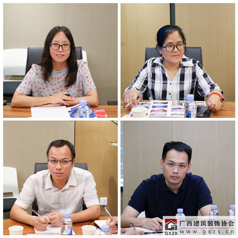 蒋以明校长介绍了广西城市建设学校现阶段的学校定位、教学、专业设置、人才培养、场地建设等综合情况,提出希望与广西建筑装饰协会下一步开展的:横向人才培养、工匠人才培养、技能大赛深入合作等提出了要求和展望,并表示欢迎协会会员企业与学校共同设立订单班,定向培养符合企业需求的用工人才;其他老师就:装饰专业的人才培养、行业专家到校授课、学校的生源培养政策宣贯推广等提出想法和方向。