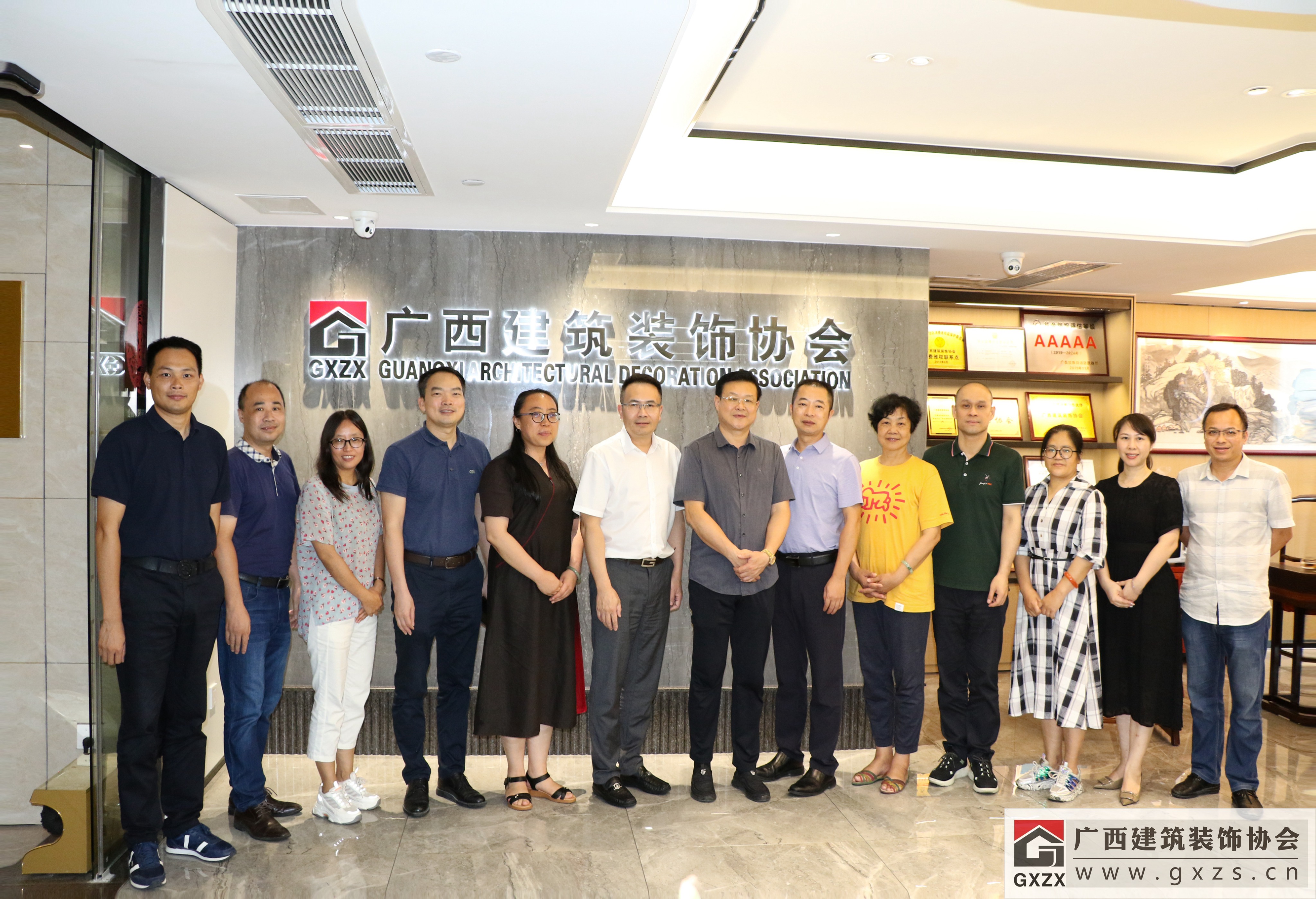 2022年6月21日广西建筑工匠学院、广西城市建设学校蒋以明校长一行7人,莅临协会开展“校行(企)人才培养合作”调研交流,庞耀国会长等协会负责人与来访嘉宾就校行(企)人才培养合作、建筑新业态发展、工匠技能大赛等议题进行深入、务实交谈与合作。
