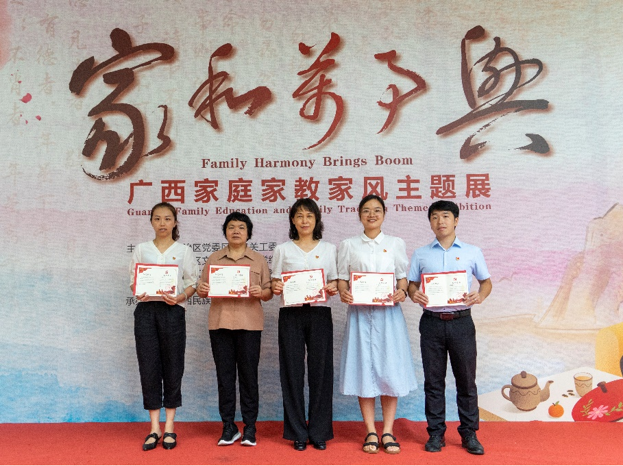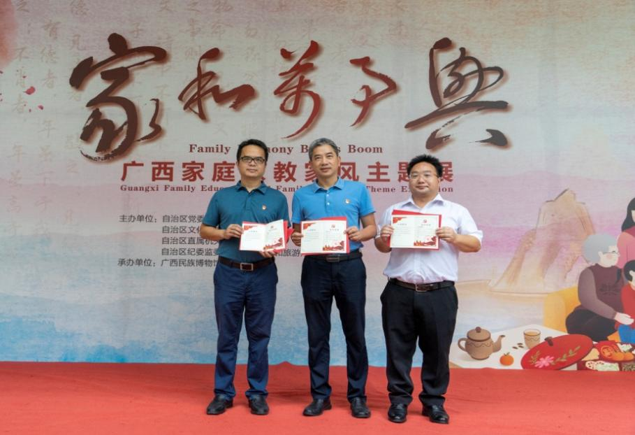 随后,三家协会负责人、共建支部书记带领大家走进展厅,认真参观“家和万事兴——广西家庭家教家风主题展”。