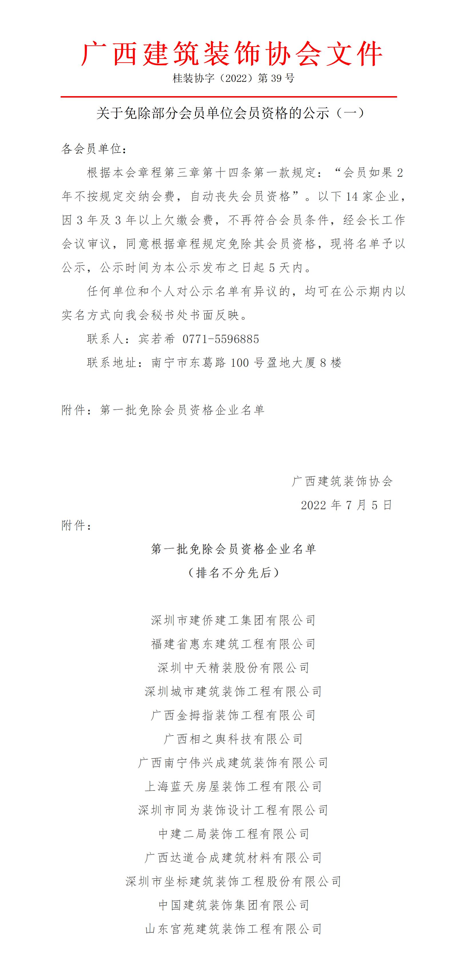 广西建筑装饰协会广西消费者权益保护委员会关于公布2022年度“广西家庭居室装饰装修企业信用评价获评企业的通知