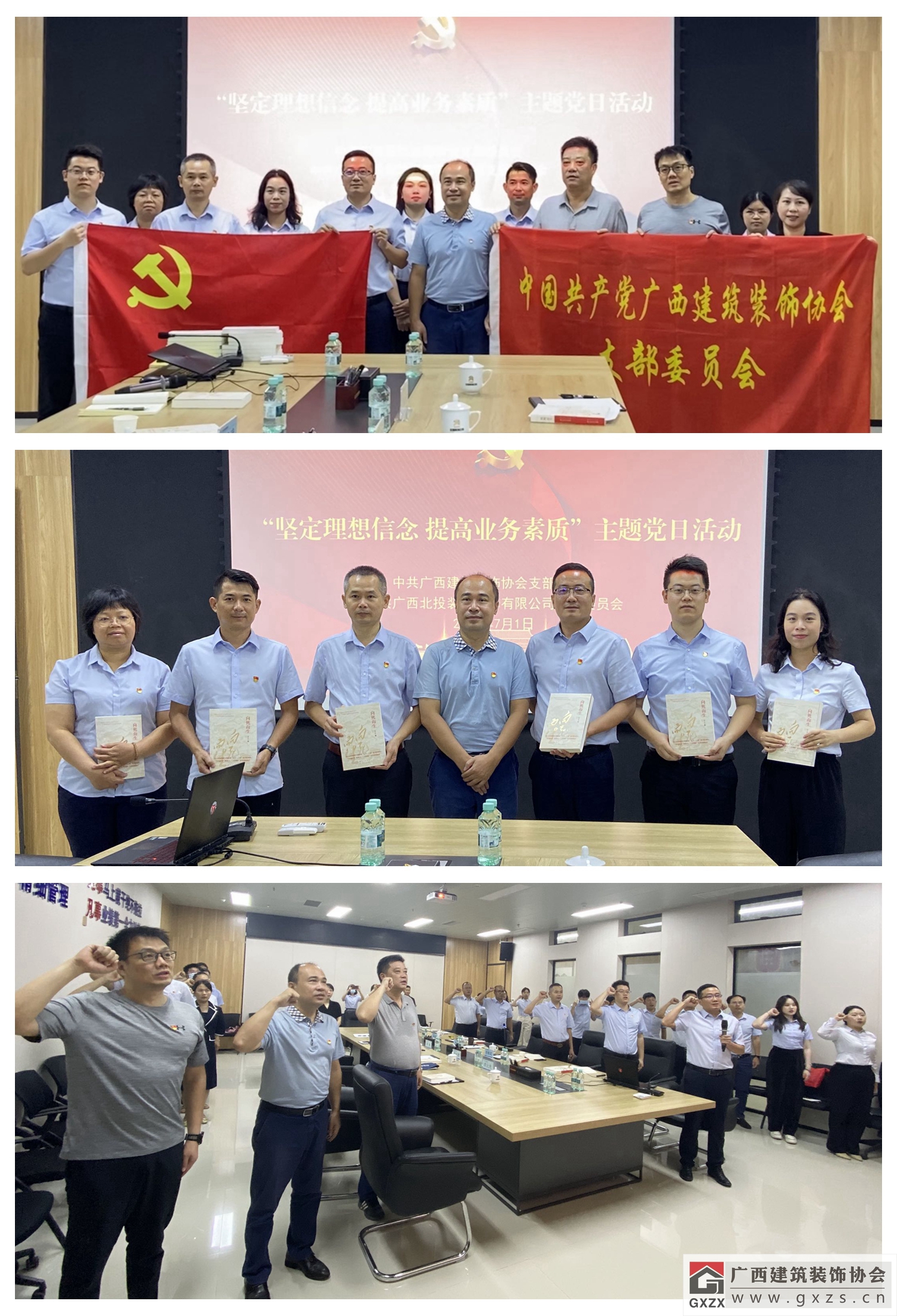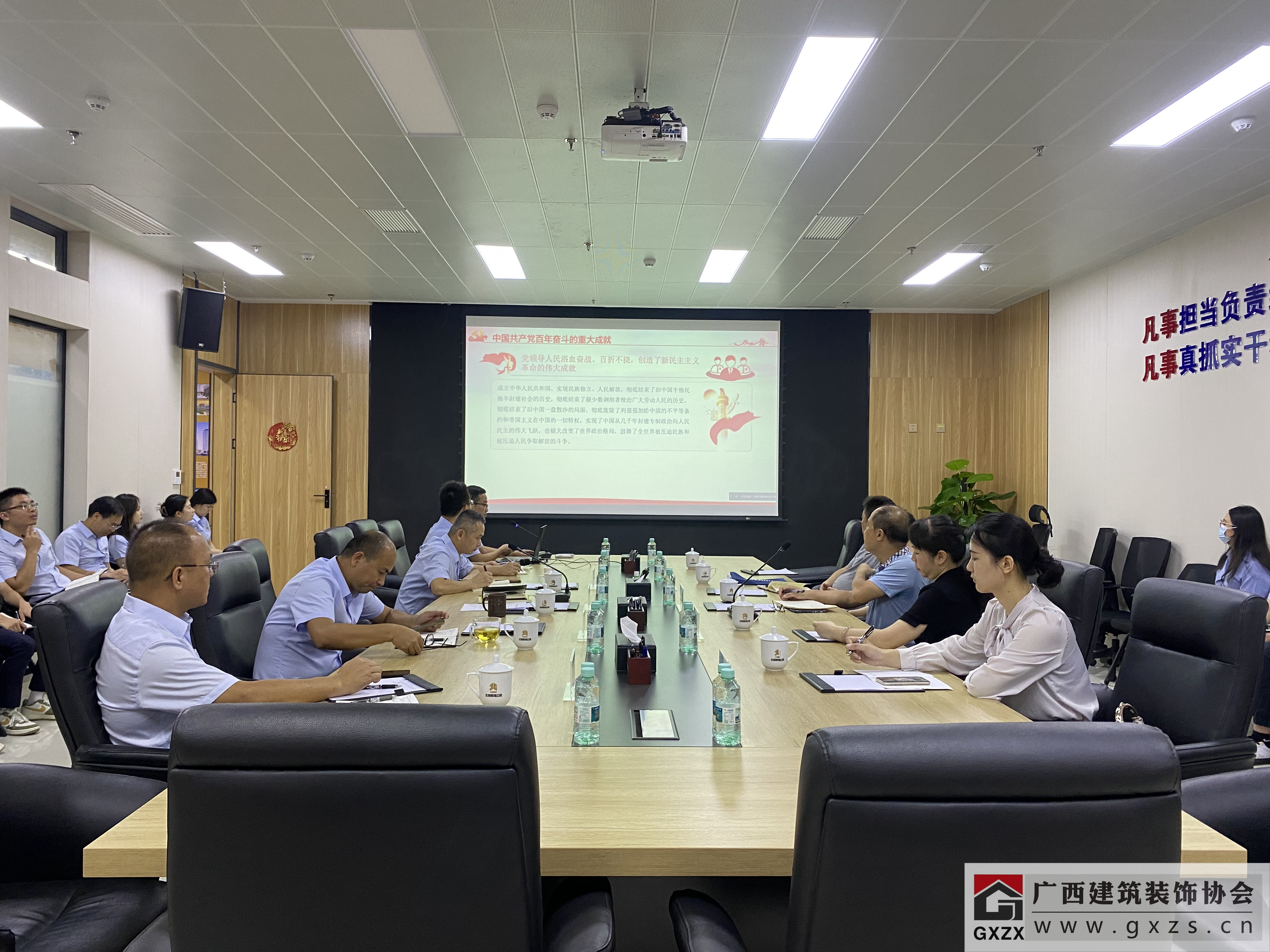 2022年7月1日,为庆祝中国共产党成立101周年,协会党支部与广西北投装饰装修有限公司党支部联合开展“坚定理想信念 提高业务素质”主题党日活动,两个支部的党员、入党积极分子等共30人参加活动。