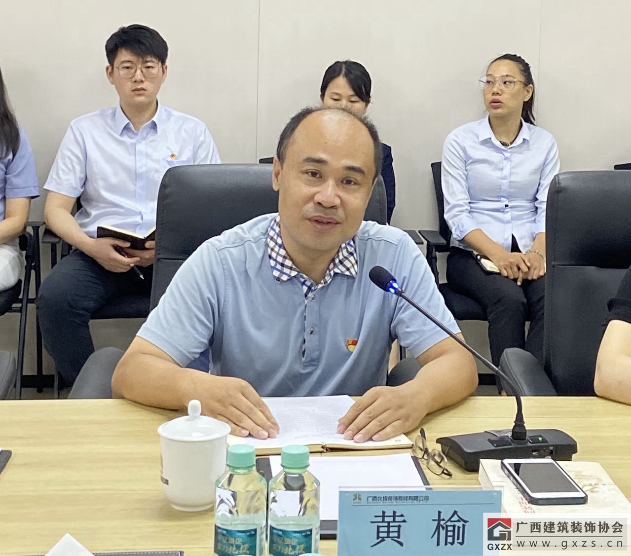 北投装饰公司党支部尹传勇书记对广西建筑装饰协会心系北装公司表示感谢,他认为,通过协会这一平台,加强与区内外优秀装饰企业的交流与学习,北投装饰可以快速健康地成长。他在发言中并呼吁所有党员及入党积极分子深入学习领会习近平新时代中国特色社会主义思想,不断提高自身的党性修养,坚定理想信念,提高业务素质,思考如何在本岗位上发挥党员先锋模范作用、攻坚克难,助力北装公司开拓外部市场。