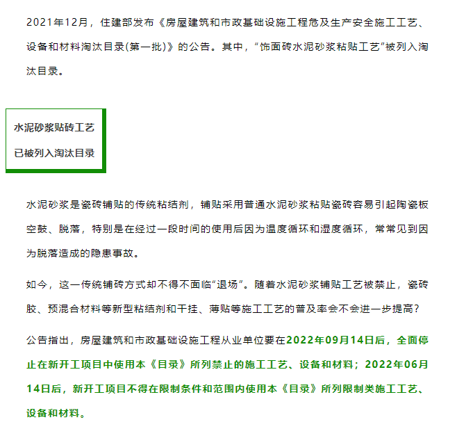 住建部明令禁止水泥砂浆贴墙砖,9月起实施