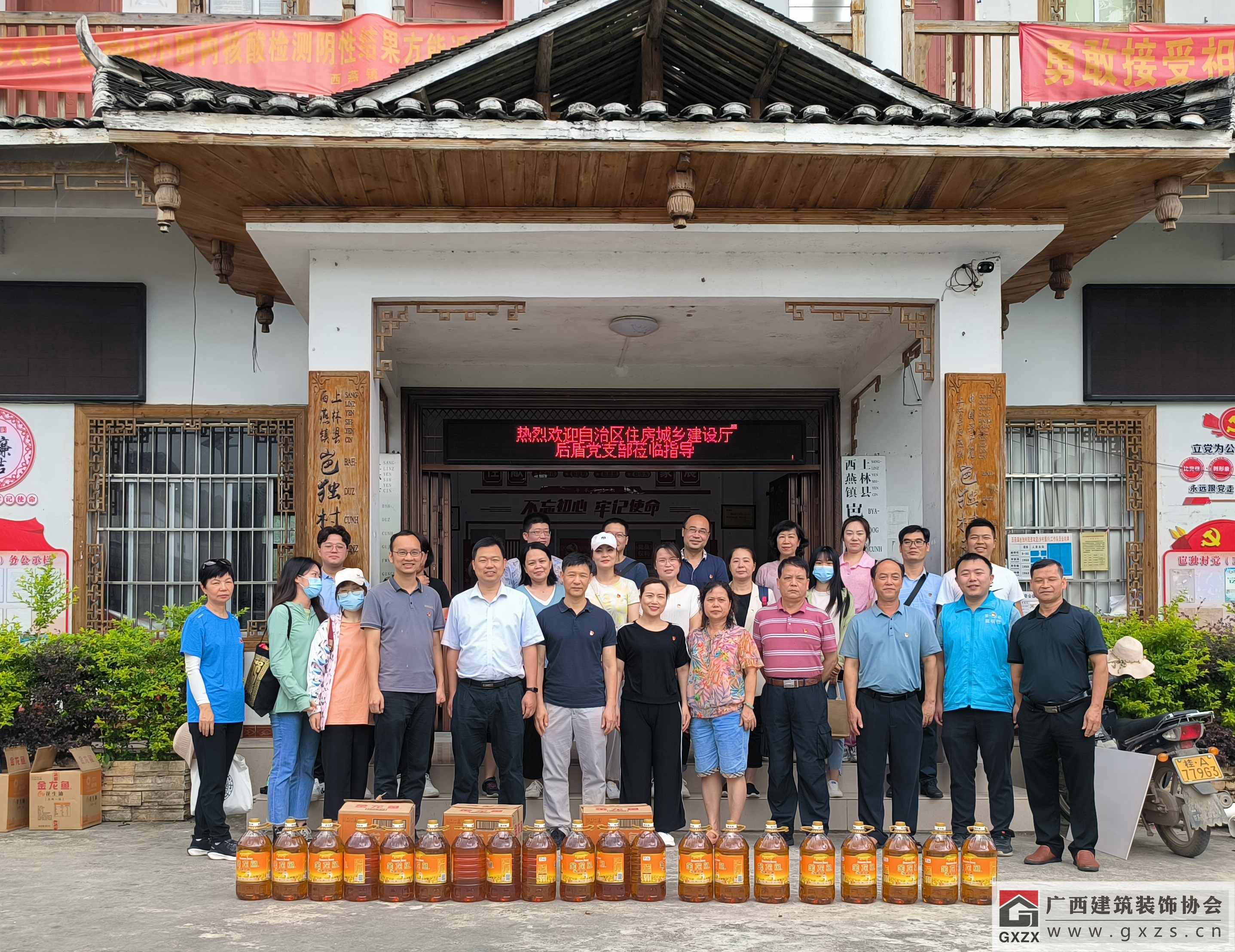 2022年7月15日,根据自治区住房和城乡建设厅直属机关委员会《关于开展“七一”党建助力乡村振兴主题党日活动的通知》(桂建直党〔2022〕20号)精神,协会党支部组织协会员工,与自治区住建厅第二党支部、第六党支部、广西建筑安装工程劳动保险费保障中心党支部及部分兄弟协会党支部等住建厅后盾支部一起到结对共建点上林县西燕镇岜独村开展“七一”党建助力乡村振兴主题党日活动。