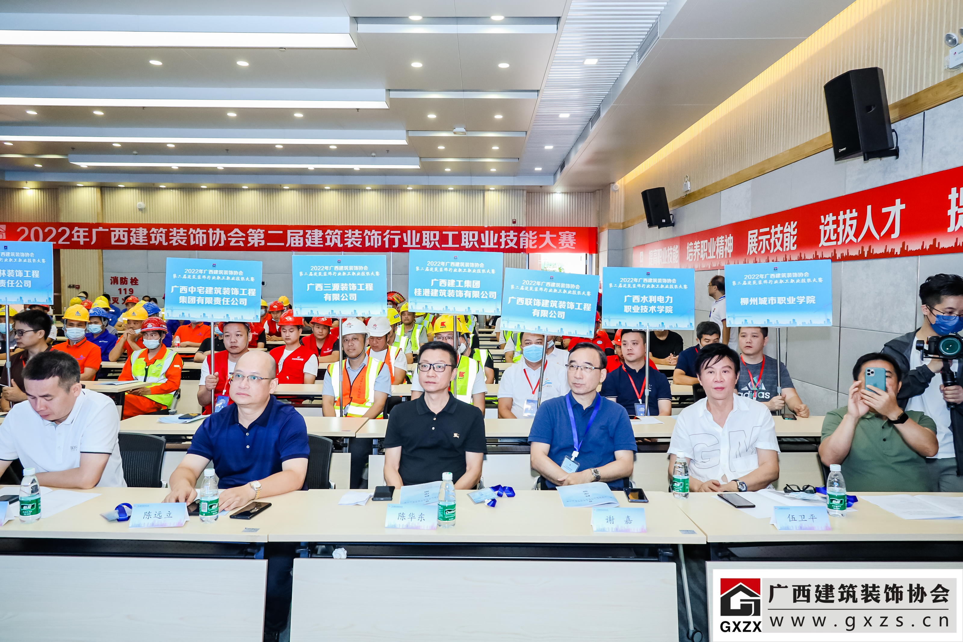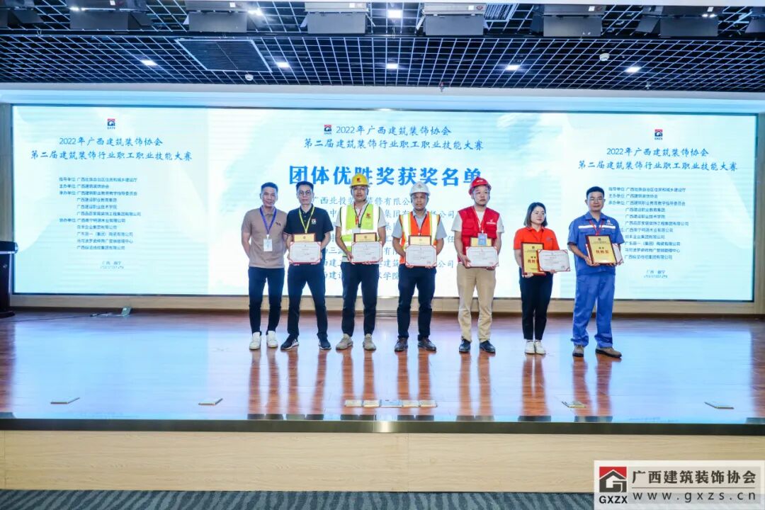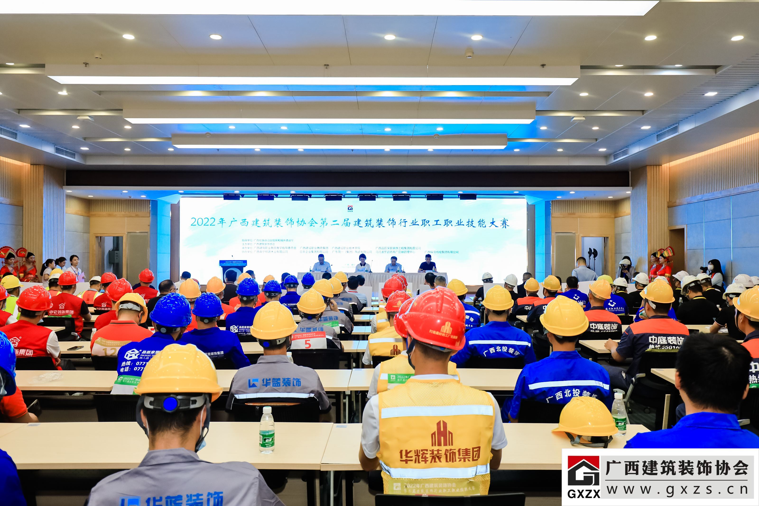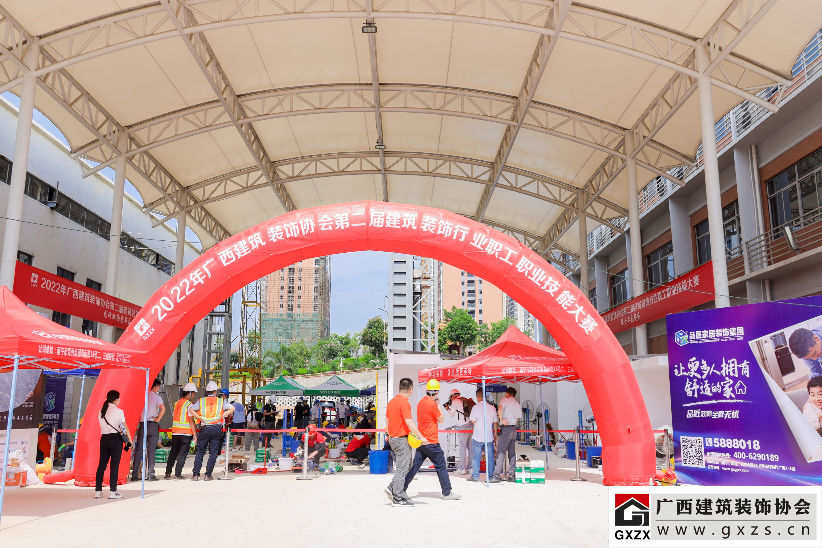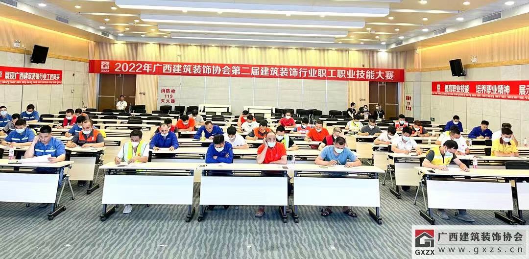 2022年7月29日,经过3个月紧张筹备,2022年广西建筑装饰协会“第二届建筑装饰行业职工职业技能大赛”如期举办。7月29日上午,大赛隆重开幕。广西住房和城乡建设厅人事教育处处长、机关党委专职副书记、一级调研员甘梅华,广西建设职业技术学院副校长梁伟,绿地大基建集团、广西建工集团有限责任公司 总工程师肖玉明,广西建筑装饰协会会长庞耀国等领导以及广西装协负责人、参赛人员、各支持单位代表约180人参加开幕式。