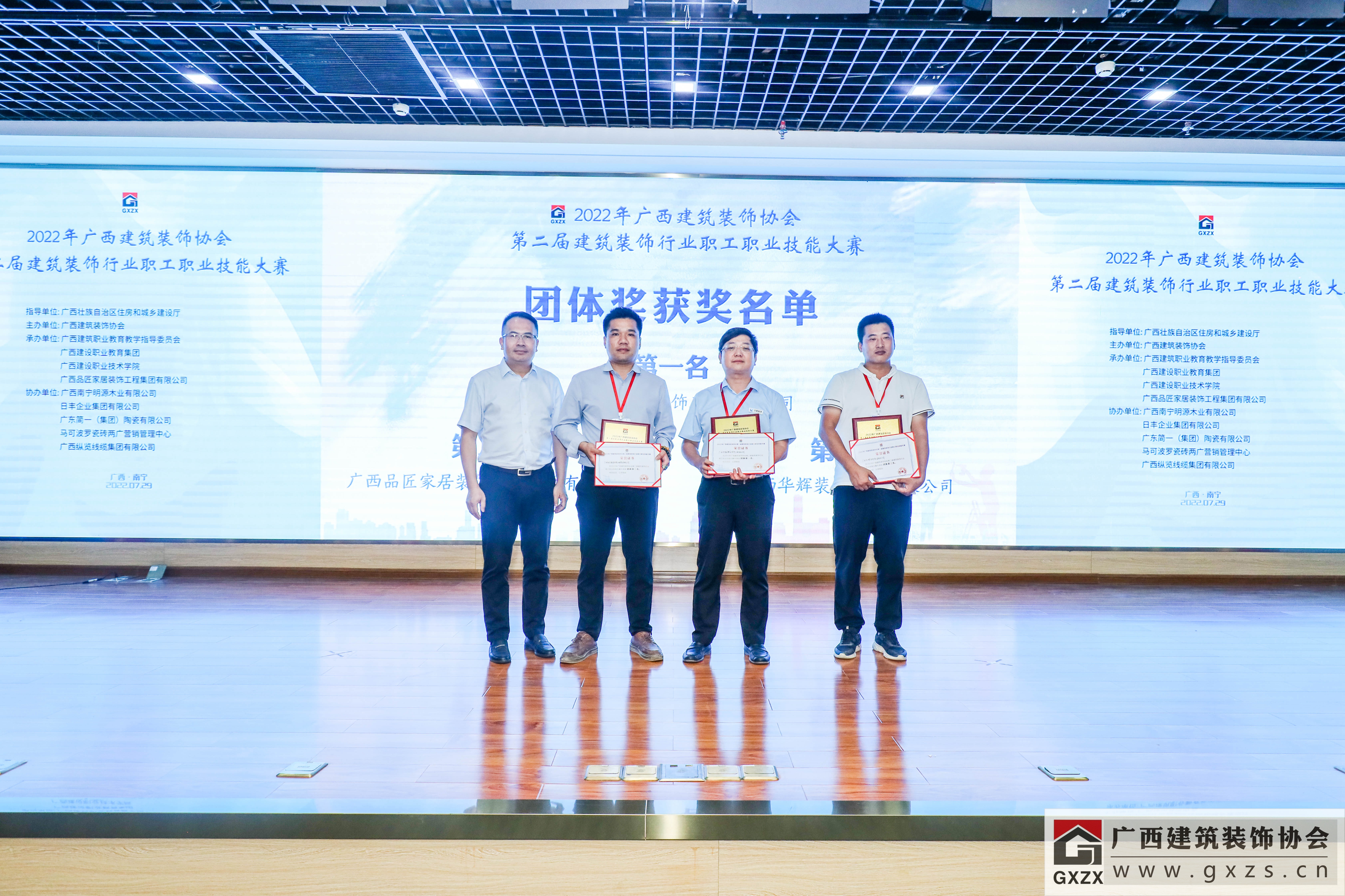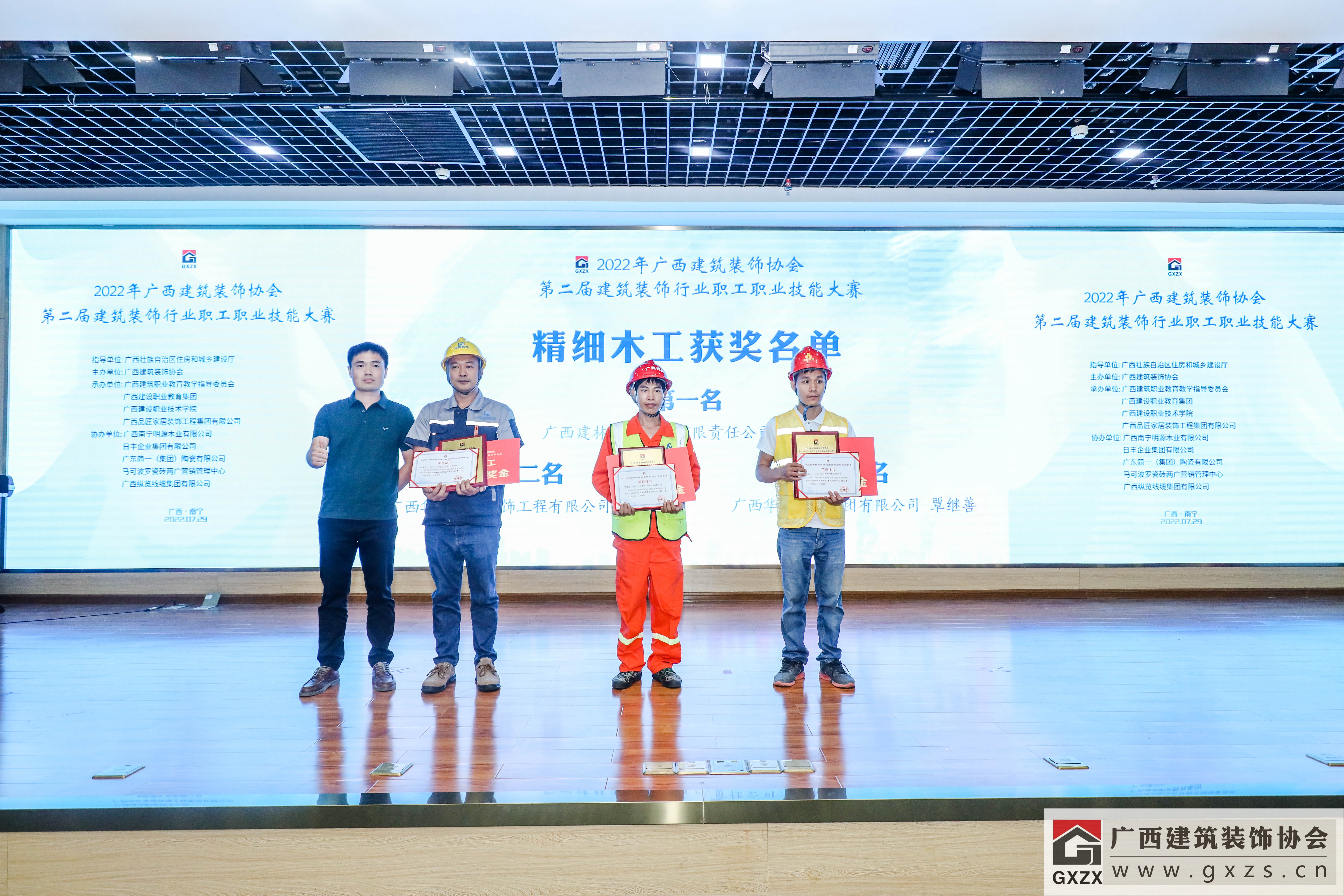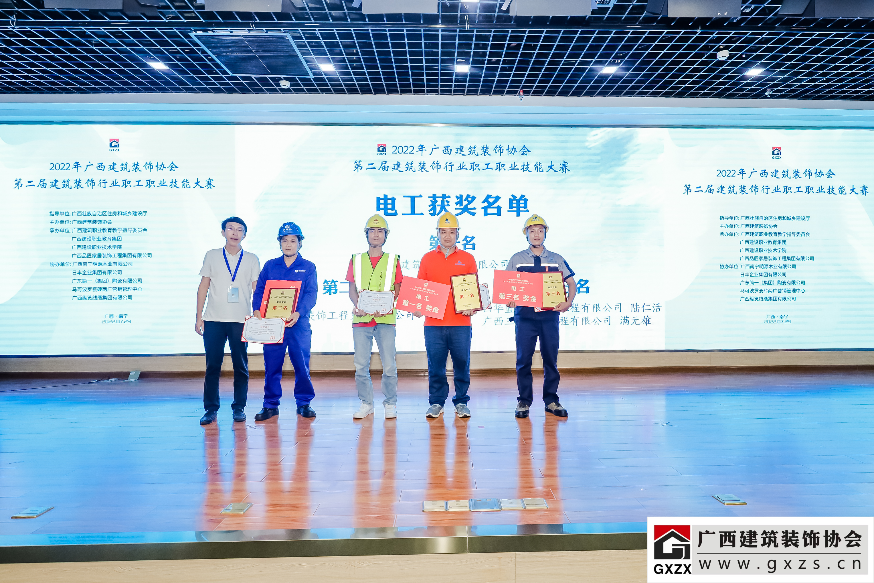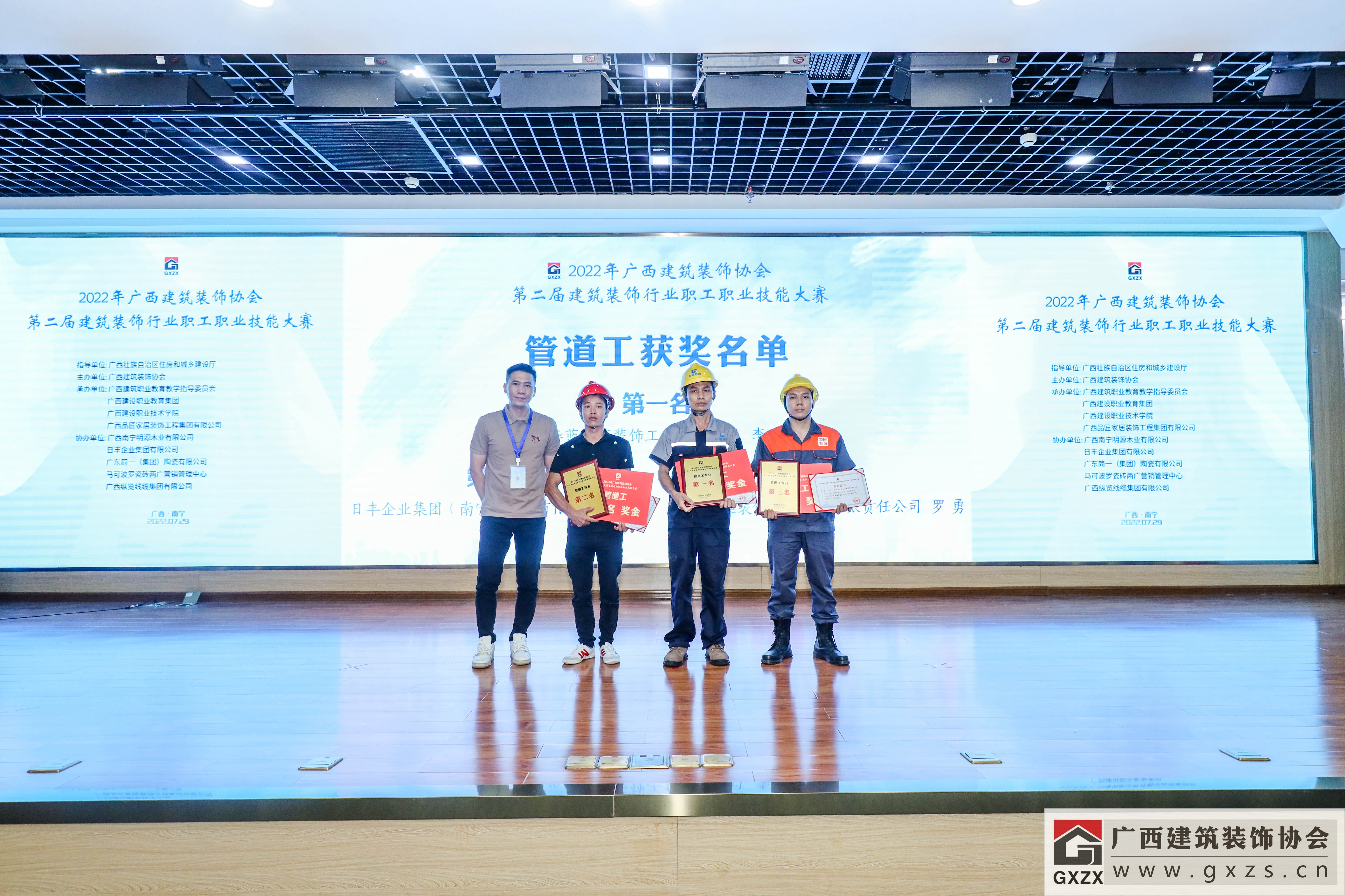 2022年7月29日,经过3个月紧张筹备,2022年广西建筑装饰协会“第二届建筑装饰行业职工职业技能大赛”如期举办。7月29日上午,大赛隆重开幕。广西住房和城乡建设厅人事教育处处长、机关党委专职副书记、一级调研员甘梅华,广西建设职业技术学院副校长梁伟,绿地大基建集团、广西建工集团有限责任公司 总工程师肖玉明,广西建筑装饰协会会长庞耀国等领导以及广西装协负责人、参赛人员、各支持单位代表约180人参加开幕式。