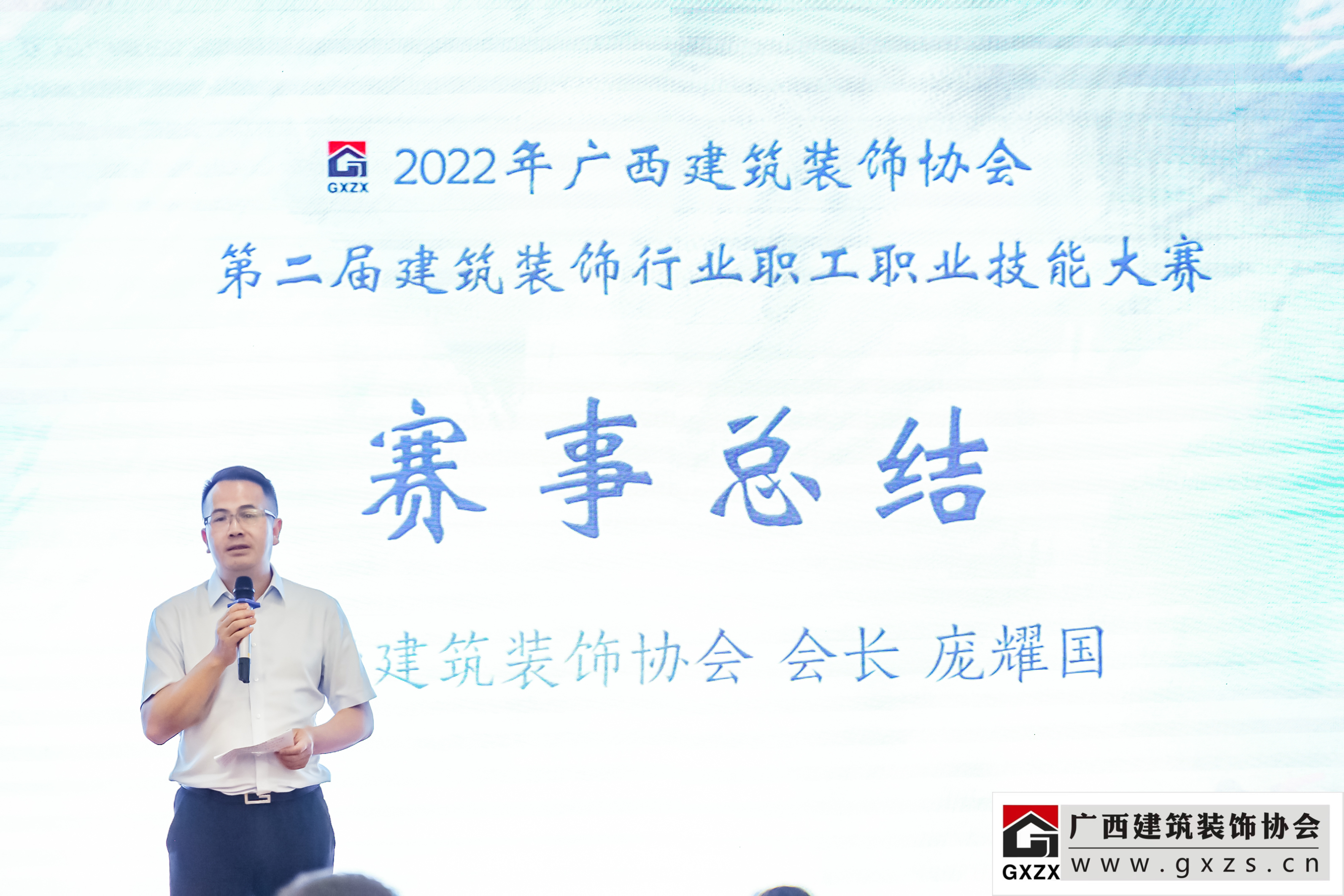 庞耀国会长在发言中对广西住房和城乡建设厅对大赛的指导,对承办单位和协办单位、对参赛队伍和参赛选手以及所有裁判为大赛成功举办给予的支持和帮助表示衷心感谢。他谈到,协会通过举办技能大赛,一是通过同台竞赛,促进行业内部良性竞争,促进行业职工装饰职业技能提升;二是提升工程质量水平,培养高素质的工匠团队;三是顺应国家政策,大力弘扬劳模工匠精神,培养更多高技能人才和大国工匠,为建设中国特色社会主义国家提供人才保障。他认为,现阶段经济下行,受市场承接(承包)模式的改变等因素影响,当下装饰行业虽然面临前所未有的挑战,但装饰行业是一个资源永续,业态长青的行业,不但有巨大的增量市场,也有巨大的存量市场,拥有美好未来,他呼吁装饰企业练好内功,做好应对新形势、新时代的准备,多储备人才,坚定信心,响应国家发展的主旋律,贯彻新发展的理念,提高企业的质量和效益,在建设主管部门的正确指导下,协会将与装饰企业一起推进行业的稳定高质量发展!