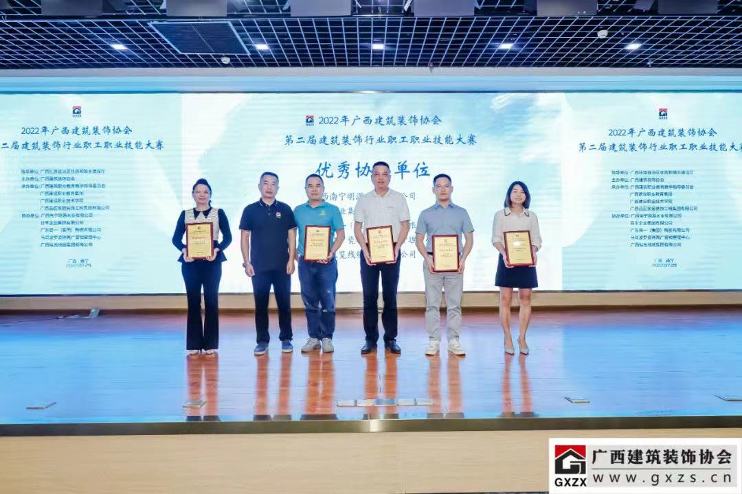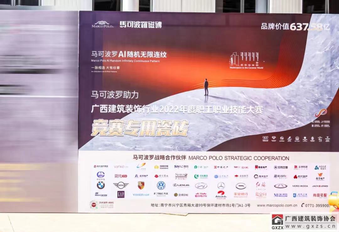 2022年7月28-29日广西建筑装饰协会第二届建筑装饰行业职工职业技能大赛成功举办,马可波罗瓷砖两广营销管理中心作为协办单位之一,提供了瓷砖贴面竞赛比赛专用瓷砖,被评为“优秀协办单位”。