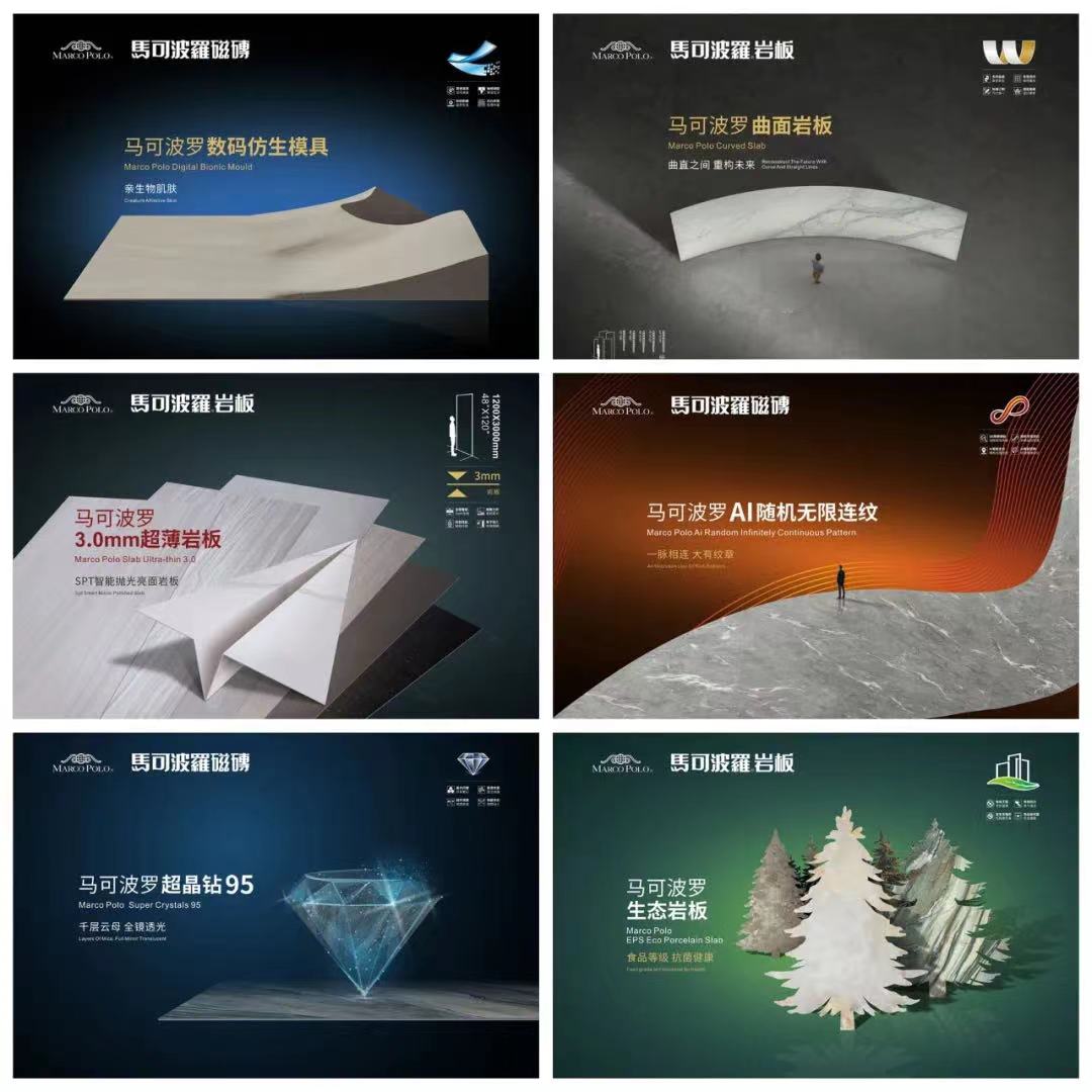 马可波罗瓷砖在全球建立五大生产基地,分别位于广东东莞、广东清远、江西丰城、重庆荣昌及海外,其智能化生产、数字化管理及各项指标均达到国际先进水平,被授予国家级“绿色工厂”。企业全面通过国家3C体系认证、欧盟IntertekCE认证。作为广东省高新技术企业和省民营科技企业,拥有行业首批通过CNAS (国家实验室)认证的国家级实验室、两个省级技术研发中心和一个博士后站点,成功申请国家专利1000多件,数十项专利荣获“国际先进’及“国际领先”等认证。马可波罗专注建陶生产,90年代初, 第一-片防滑砖和仿古砖相继推出,打响品牌知名度。坚持技术创新和产品革新,马可波罗瓷砖相继研发出引领行业发展的“E石代”、“中国印象”、地理石、真石、岩板等优质产品,目前产品涵盖亚光砖、抛光砖、抛釉砖、内墙瓷片、陶瓷岩板、岗岩等所有品类。“马可波罗岩板”系列产品卓越性能,自主研发的曲面岩板最大弯曲度可达120",为全空间领域提供高品质的装饰材料和完善的配套方案。