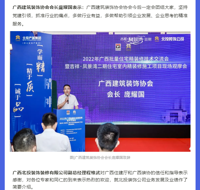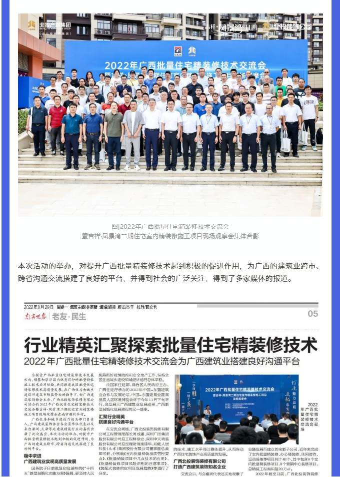 广西北投装饰公司成功承办2022年广西批量住宅精装修技术交流会暨吉祥·凤景湾二期住宅室内精装修施工项目现场观摩会