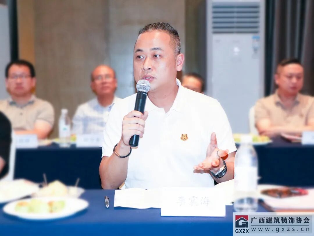 副会长、广西新美格建设集团总经理李震海:广西企业需要更注重专业化、精细化发展,树品牌、立服务,与广西装协开展多方面合作。呼吁广西装协应在引导装饰企业加强自律、加强品牌竞争面发挥更大作用;希望相关部门加大中小微企业融资需求方面的支持,盘活中小微企业活力。