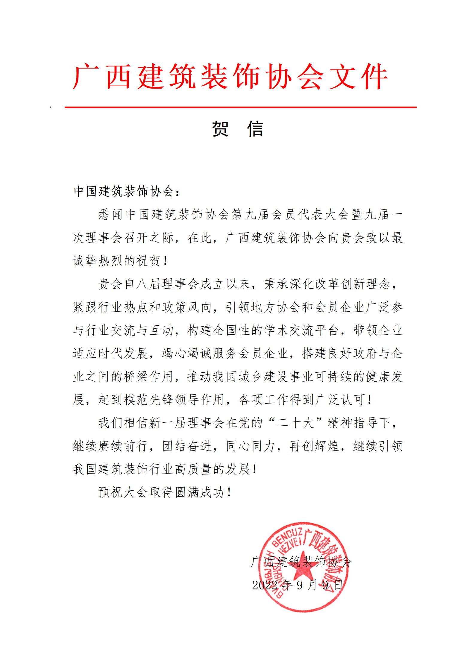 祝贺中国建筑装饰协会第九届会员代表大会召开