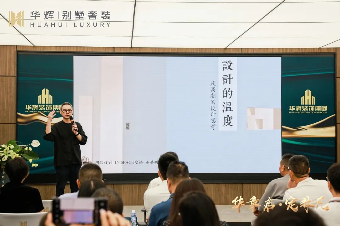 在全场来宾的共同见证之下,华辉集团董事长杨景忠、广西建筑装饰协会会长庞耀国、富安居国际家居建材广场副董事长张颖睿、中国建筑学会室内设计分会理事秦岳明、广西江苏商会创会会长单桂林,共同开启了华辉别墅奢装品牌启动仪式,华辉别墅奢装新征程正式启航。活动特邀嘉宾,深圳大学艺术学院客座教授、SIID深圳室内建筑设计行业协会执行会长、中国十大杰出建筑装饰设计师、CCTV2《秘密大改造》第五季特邀设计师秦岳明,在现场带来了《设计的温度》主题分享,饱含设计与人文温度的深度理解,折射出对“人与空间”以及未来生活方式的敏锐洞察力,向现场来宾展示了空间设计师细腻的人文情怀。协会秘书长谭谦,副会长、金鼎幕墙公司董事长李钟金以及部分会员企业负责人受邀出席活动。
