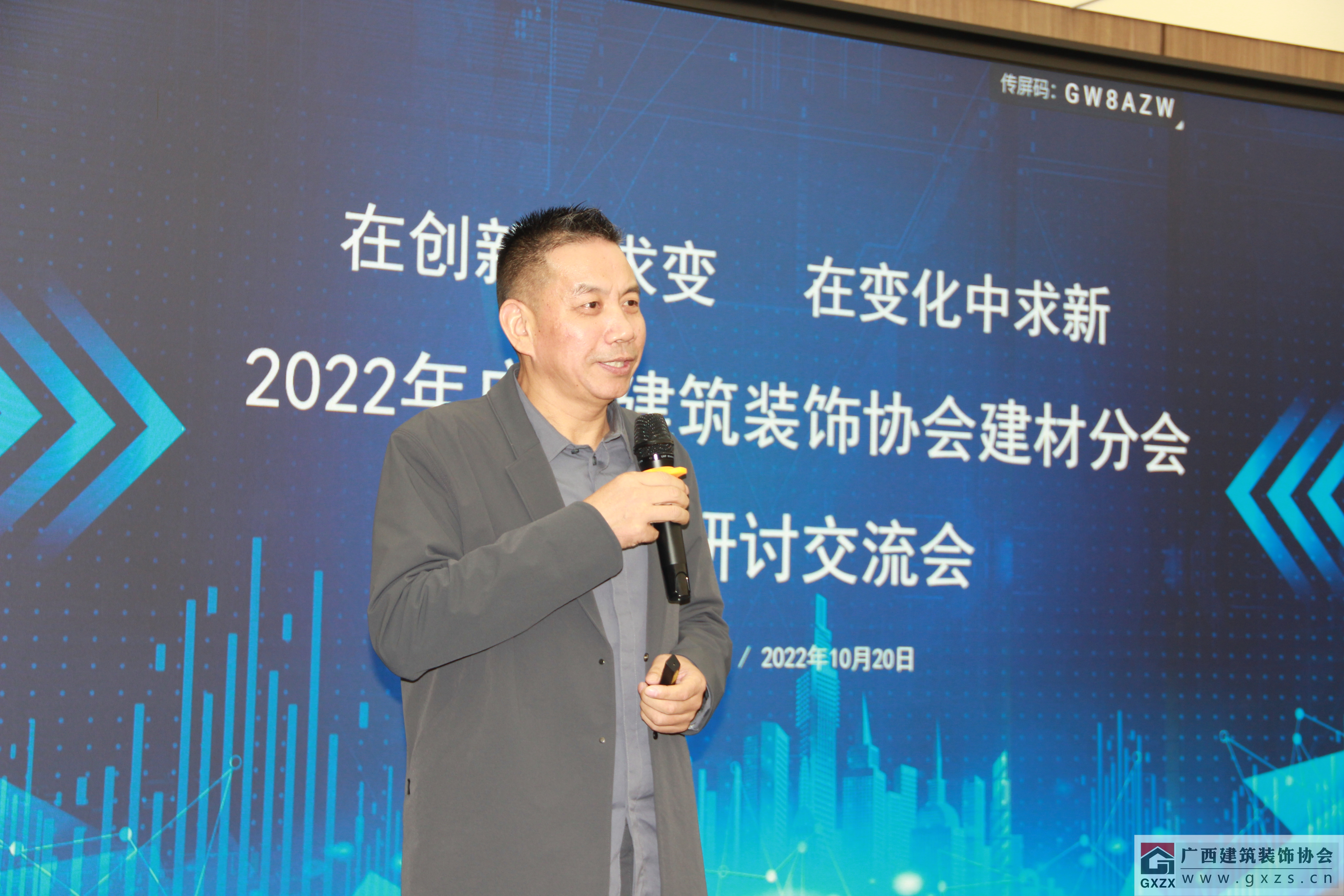 2022年10月20日,协会在广西华辉装饰集团多媒体厅举办建材分会创新研讨交流会,共同探讨面对当前多变的形势,装饰和建材企业应该如何在创新中求变,抓住市场形势变化后的发展机遇,推动企业持续健康发展,开创高质量发展新局面。来自建材分会的部分建材企业负责人共30余人参加会议。