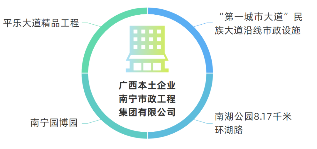 在南宁市,“第一城市大道”民族大道沿线市政设施、南湖公园8.17千米环湖路、南宁园博园和平乐大道精品工程等这些南宁人熟知的地标性道路和建筑,均是出自广西本土企业南宁市政工程集团有限公司建设。