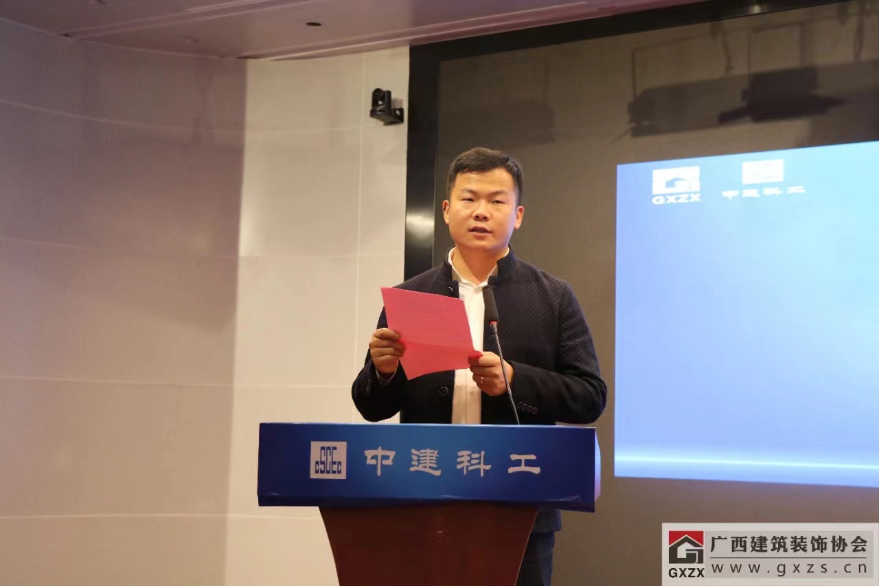 广西建筑装饰协会副会长、柳州市建筑装饰协会会长伍卫平在发言中表示欢迎各位同仁来到柳州,希望借此机会与大家一同学习,共同进步。