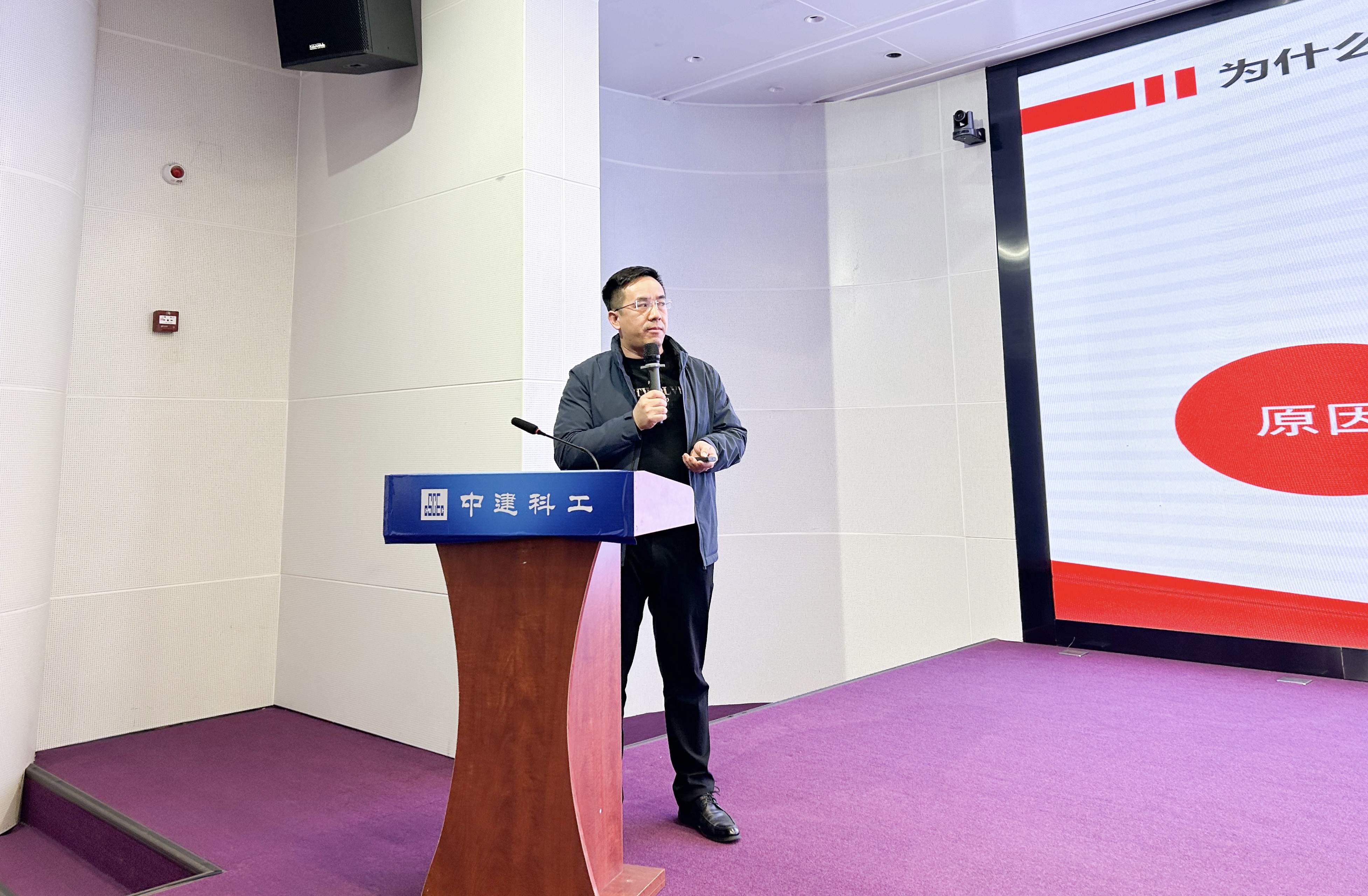 柳州市图书馆(新馆)项目总工程师梁雄杰为参会人员进行了项目管理经验分享,他详细讲解了中建科工柳州市图书馆(新馆)装修项目对各个品质要点的管控措施和效果。向参会人员展示了中建科工严格把控工程质量的态度和致力打造精品工程的决心。