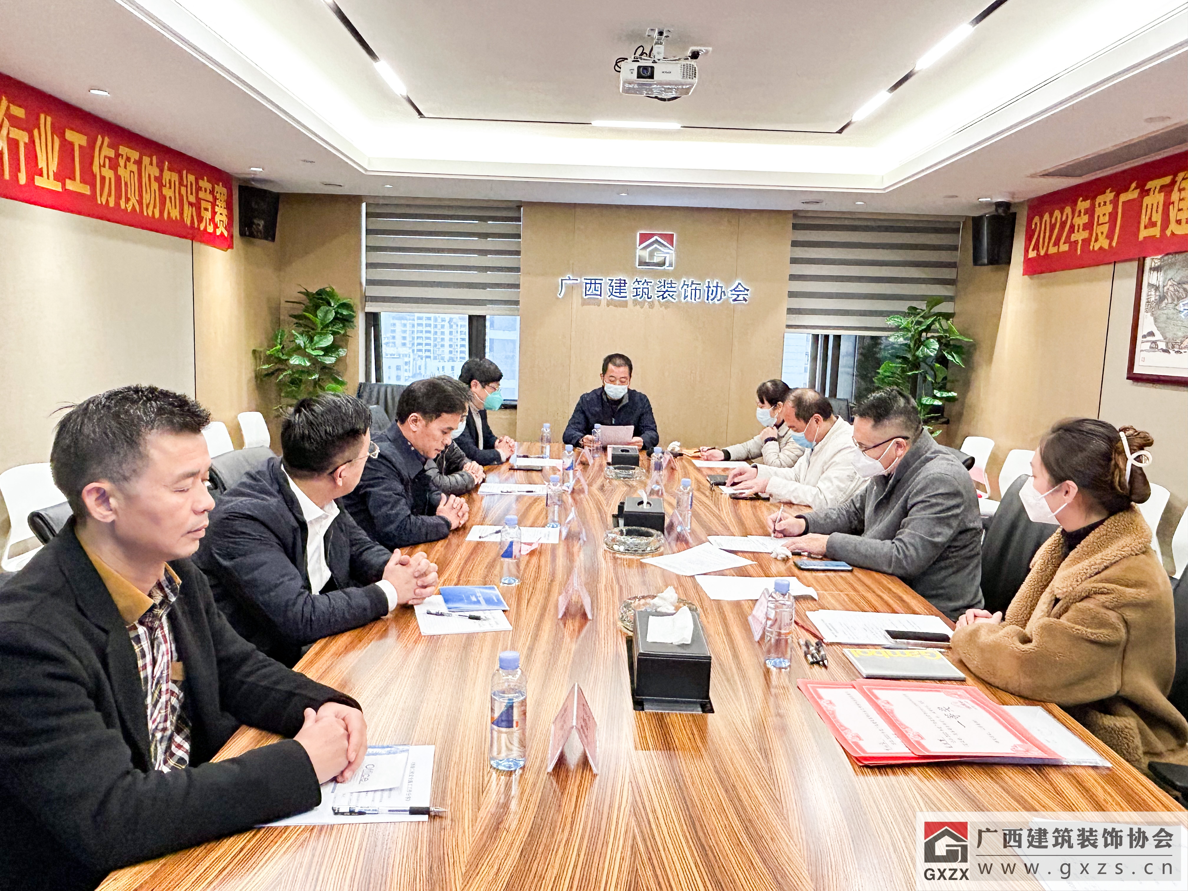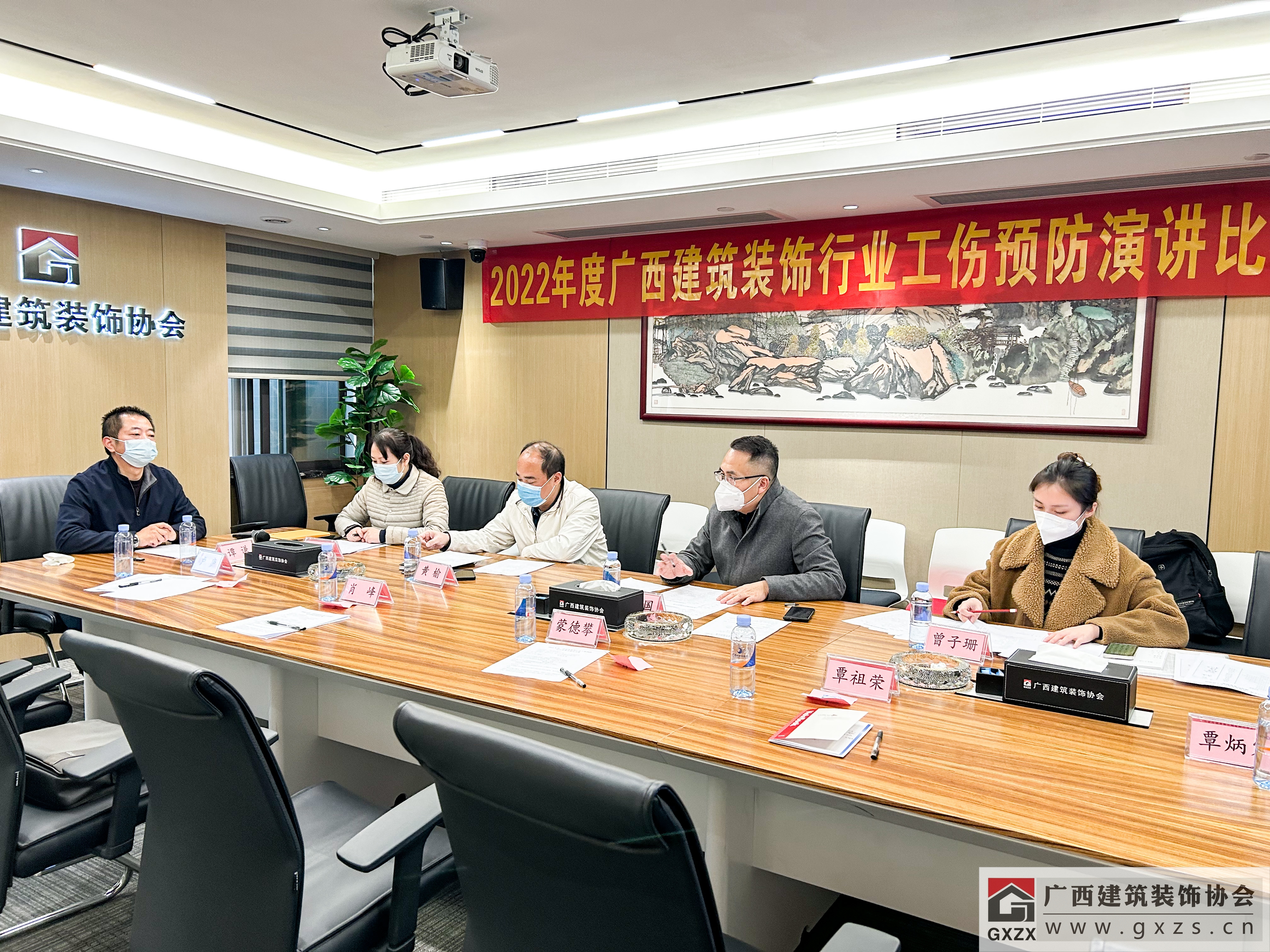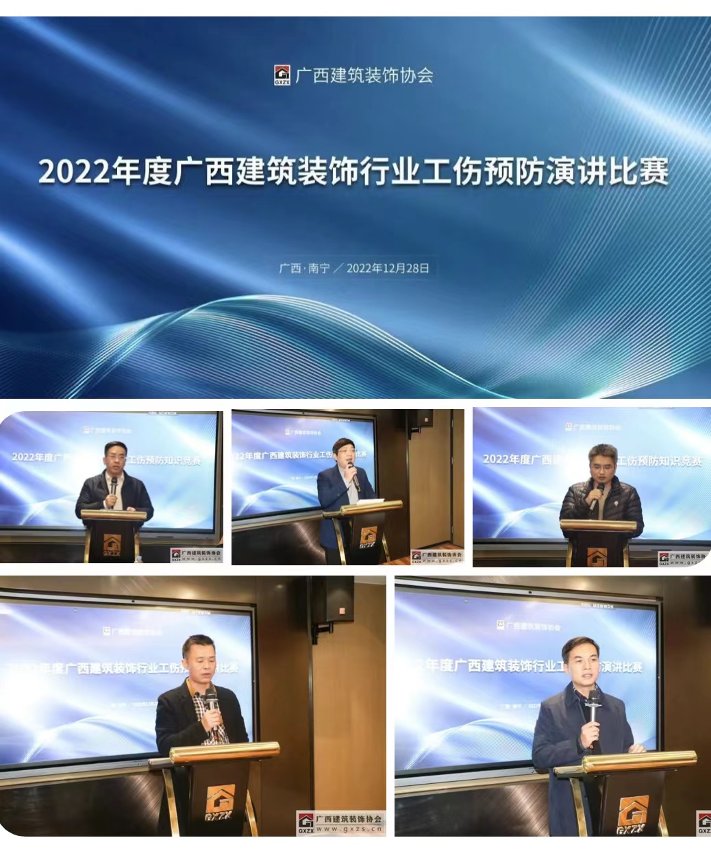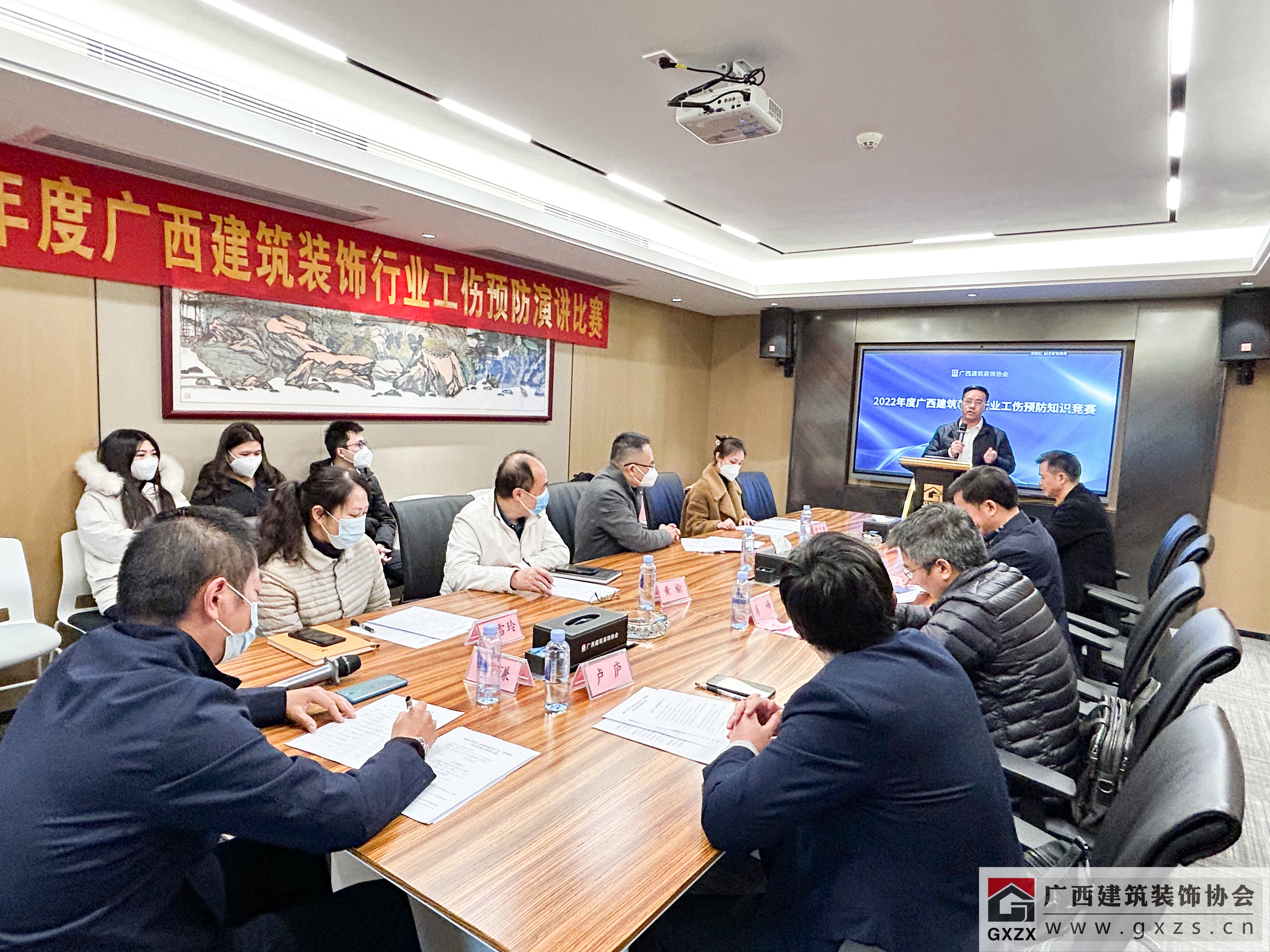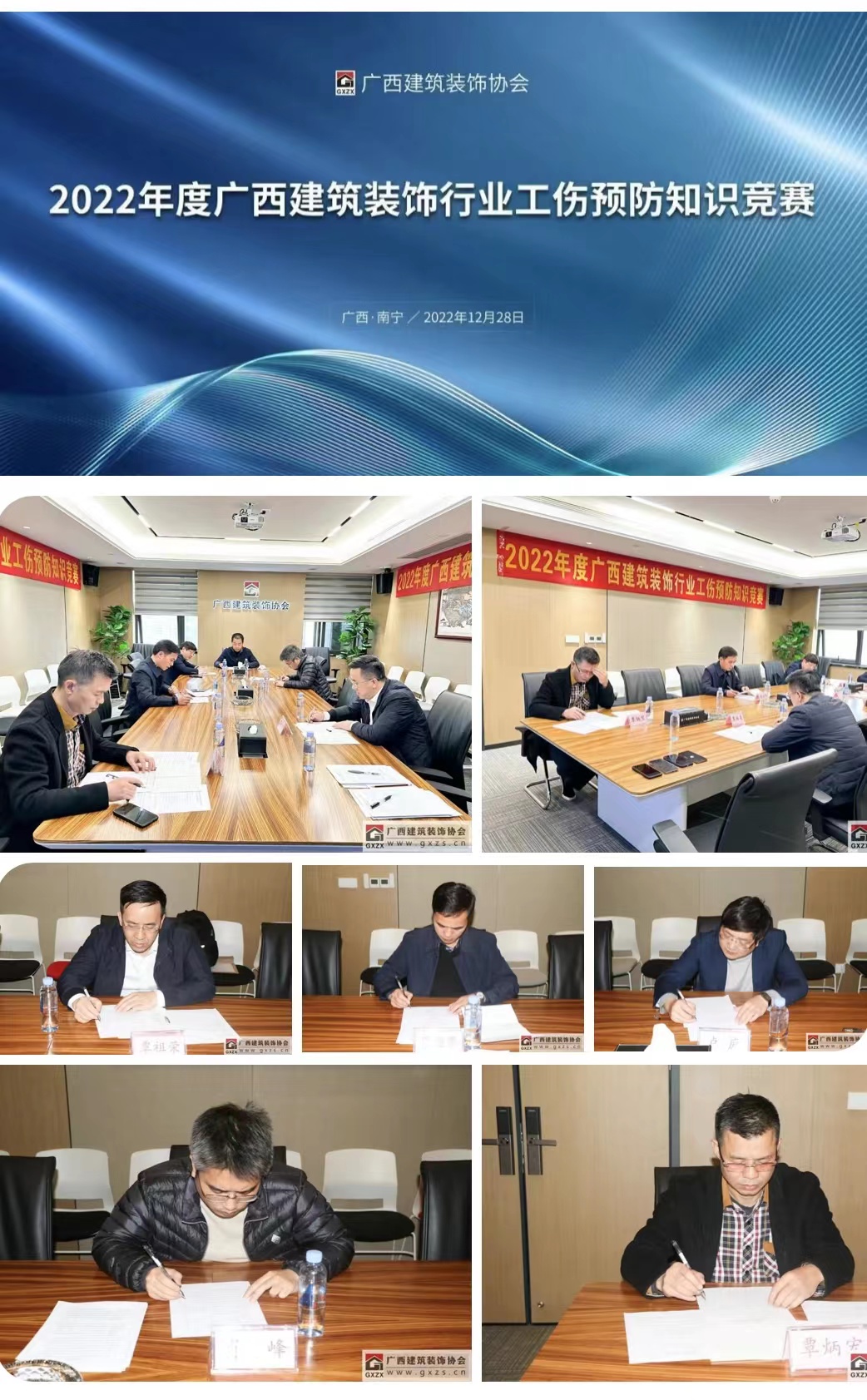 2022年12月28日,2022年度广西建筑装饰行业工伤预防知识竞赛及演讲比赛顺利举办,本次比赛邀请了广西华辉装饰集团有限公司、广西联饰建筑装饰工程有限公司、广西华蓝建筑装饰工程有限公司、广西建工第一建筑工程集团有限公司、广西建林装饰工程有限责任公司等5家头部建筑(装饰)企业代表参与。本次比赛裁判——广西建筑装饰协会秘书长、工伤预防特聘讲师谭谦在竞赛开始前讲解了比赛各环节规则及注意事项,强调文明考风、公正评判,并现场拆封试卷。
