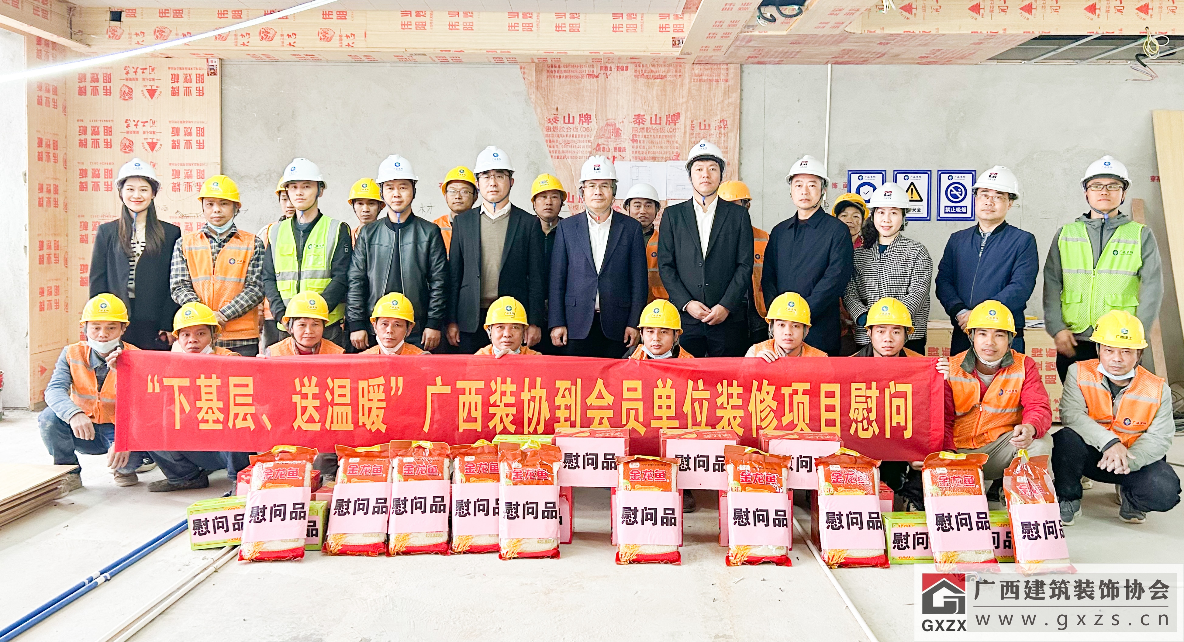 协会前往慰问的两个项目承建单位负责人对协会表示感谢,他们表示随着国家疫情防控政策的调整,今年一开年,明显感觉各项工作都在提速,久违的热闹景象正在呈现。企业也认真学习了国家以及地方政府的相关政策,在协会的指导下,认真做好项目施工,在安全施工的前提下,努力创建精品装饰装修工程,树起“广西装饰”的品牌。