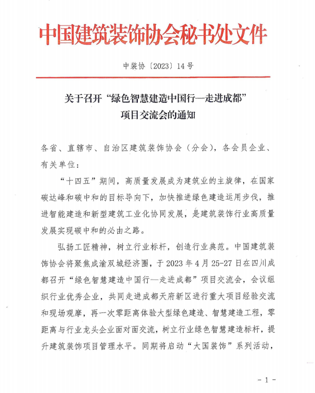 转 | 关于召开“绿色智慧建造中国行—走进成都”项目交流会的通知