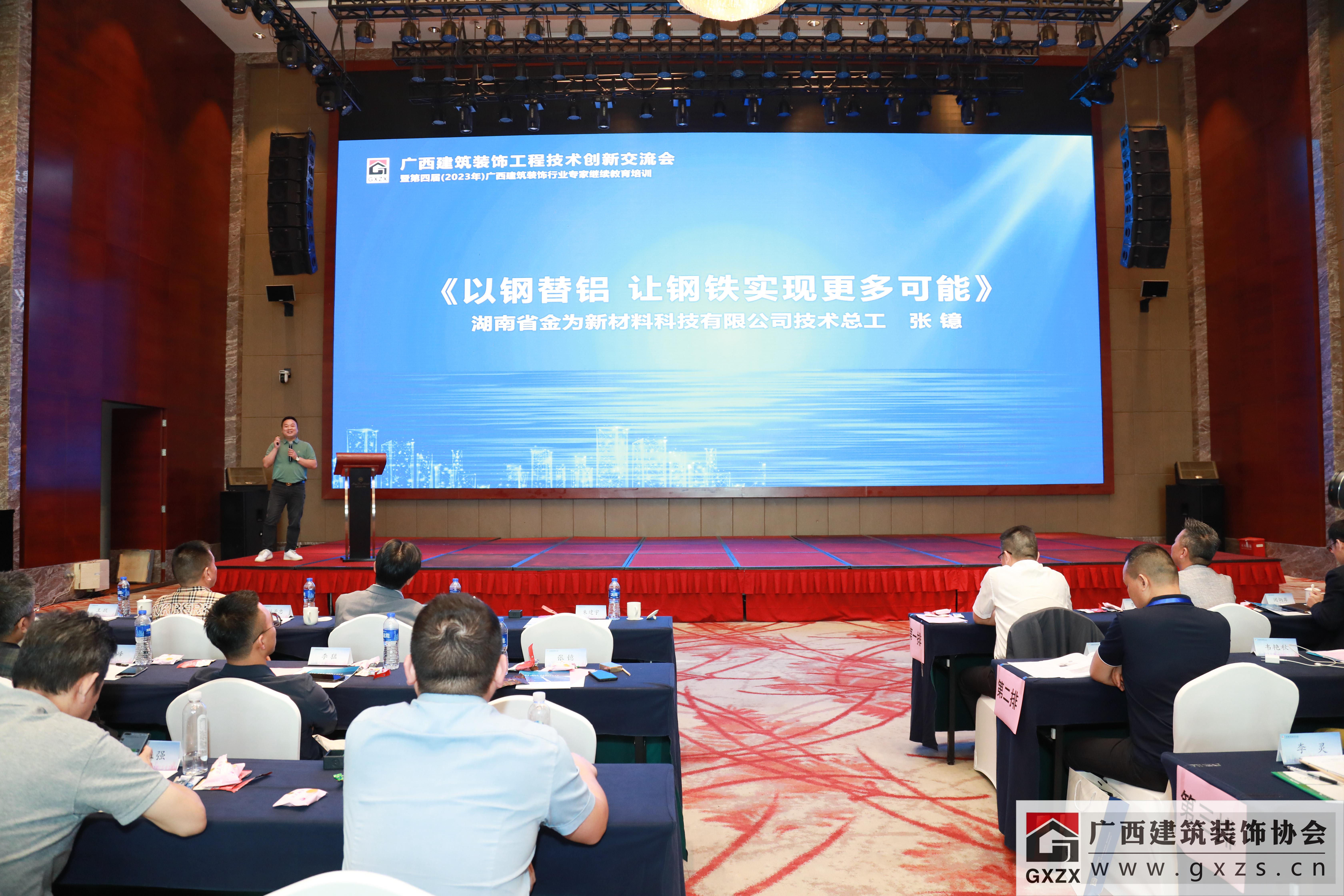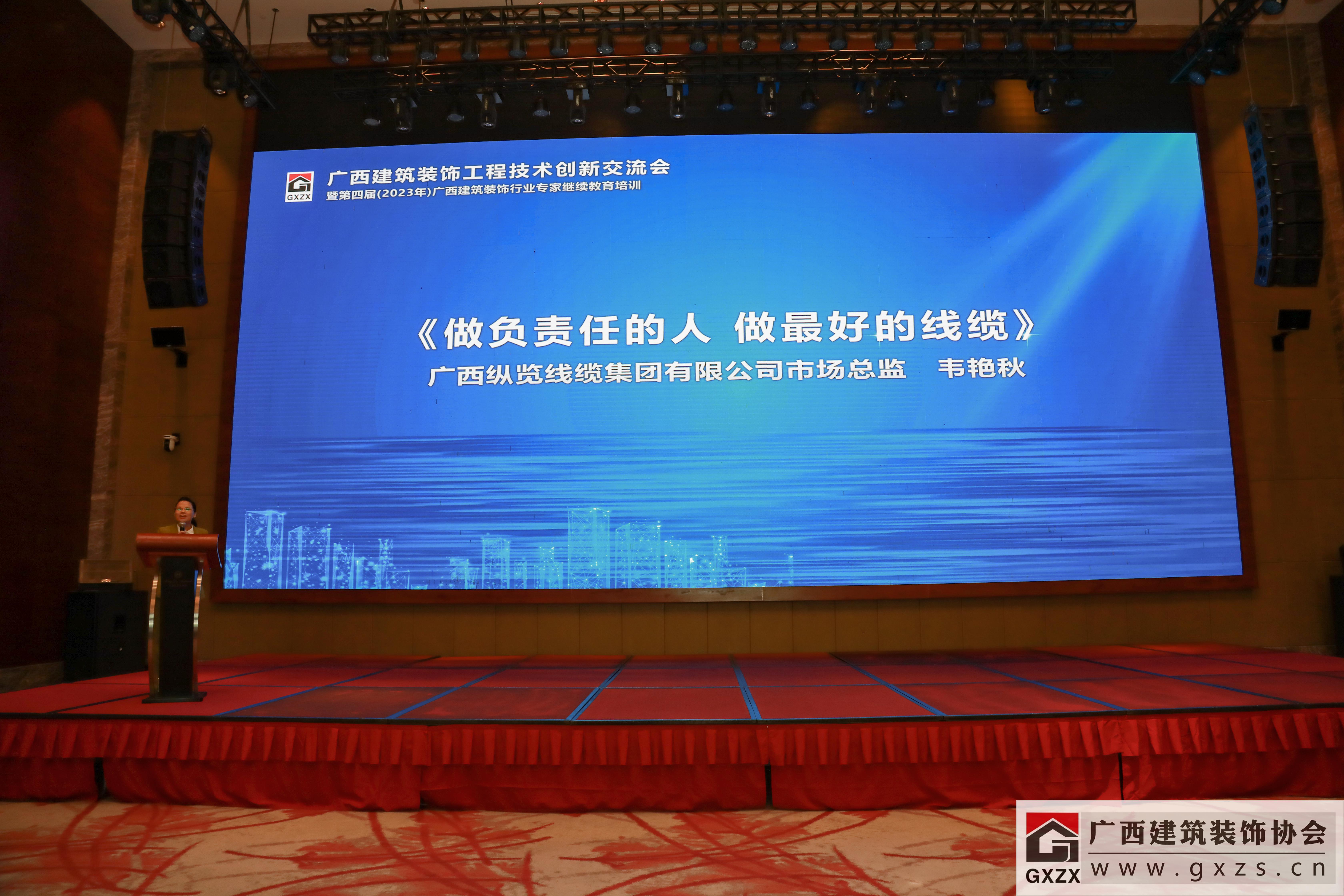 2023年5月9日,为推动我区建筑装饰行业工程技术创新和科技进步,体现高技术、高素质人才资源价值,优化装饰行业专家团队质量,持续提升广西建筑装饰行业专家综合素养,由广西建筑装饰协会主办,广西纵览线缆集团有限公司、湖南省金为新材料科技有限公司协办的“广西建筑装饰工程技术创新交流会暨第四届(2023年)广西建筑装饰行业专家继续教育培训”在南宁顺利举办。