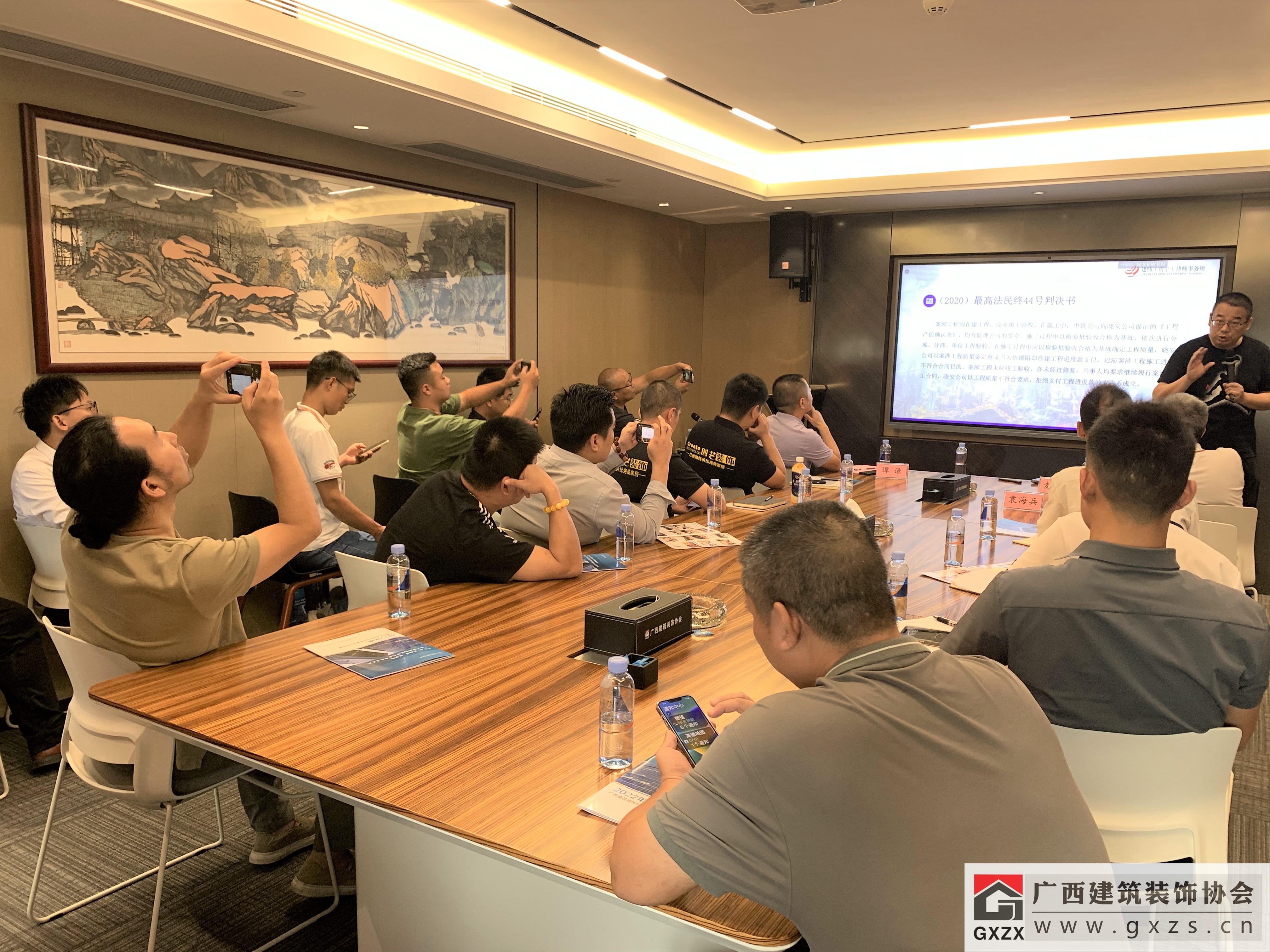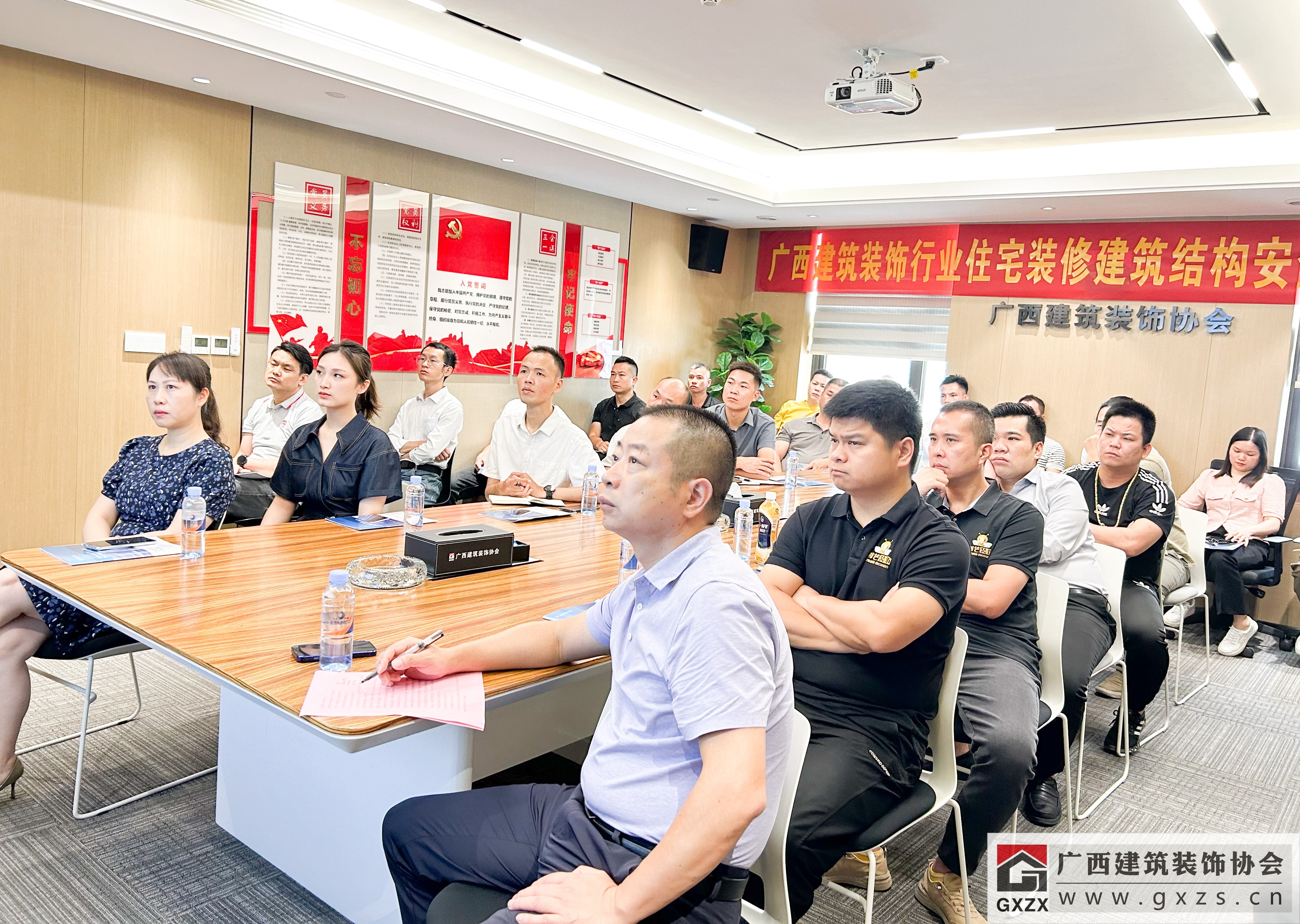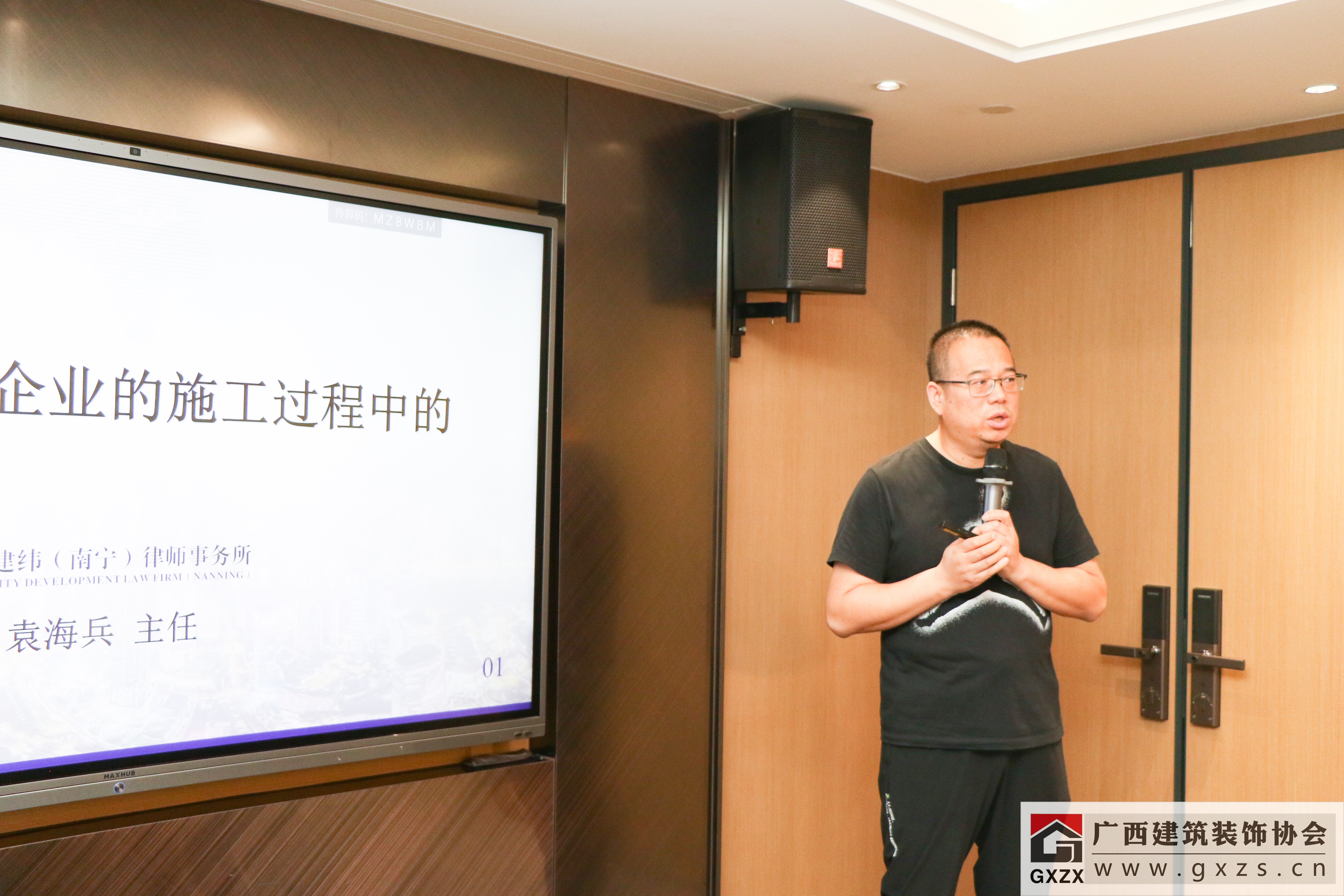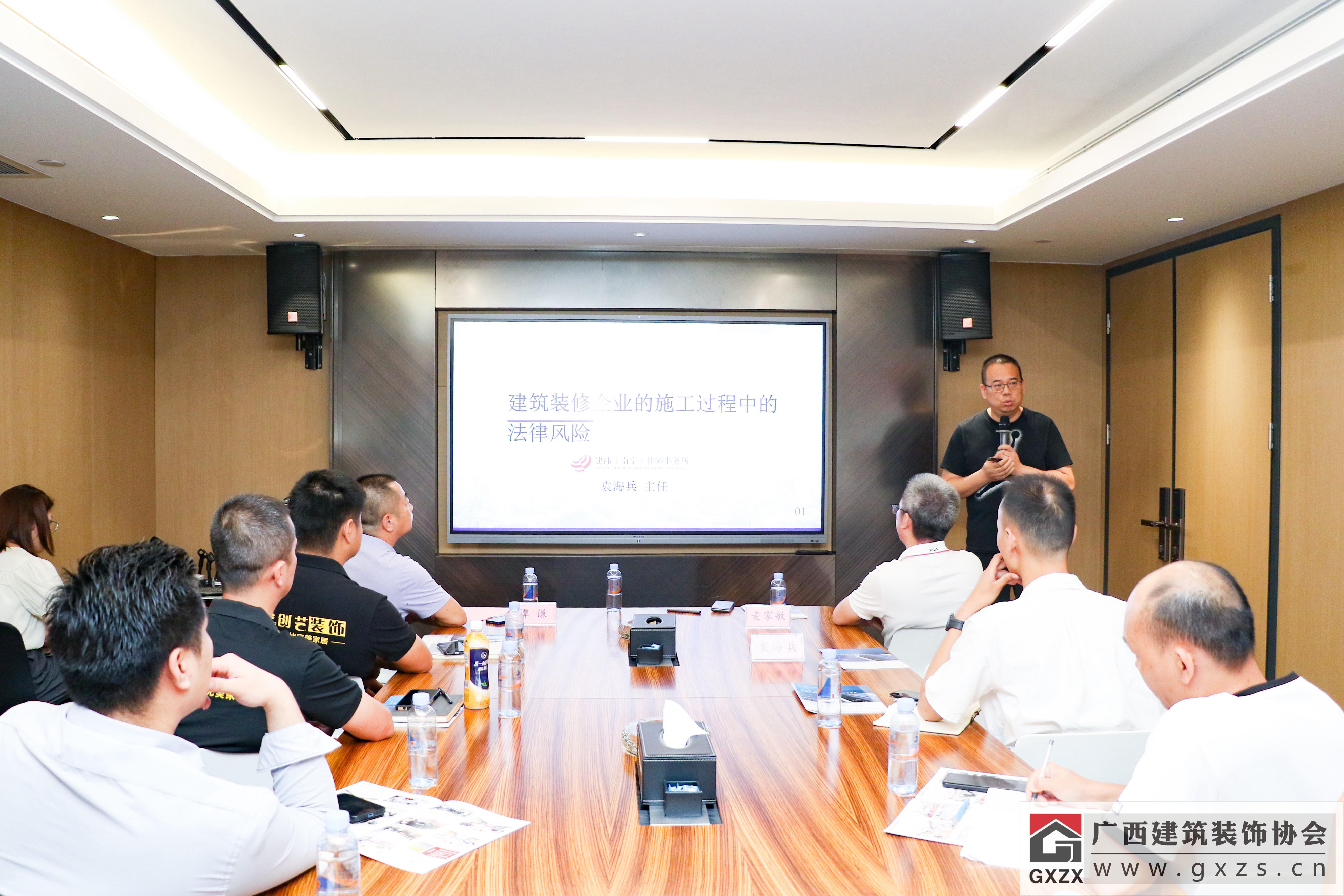 2023年6月13日,由广西建筑装饰协会主办的广西建筑装饰行业住宅装修建筑结构安全知识培训班在南宁顺利举办,协会特邀广西建筑科学研究设计院检测与评价中心副主任麦家敏、上海市建纬(南宁)律师事务所主任袁海兵作为授课专家,结合实际情况,针对建筑装修(住宅)结构安全知识、建筑装修施工过程中的法律风险进行专业授课,具有很强的现实针对性和理论指导性。本次培训会共有19家家装企业约30名代表参加,由协会秘书长谭谦主持。