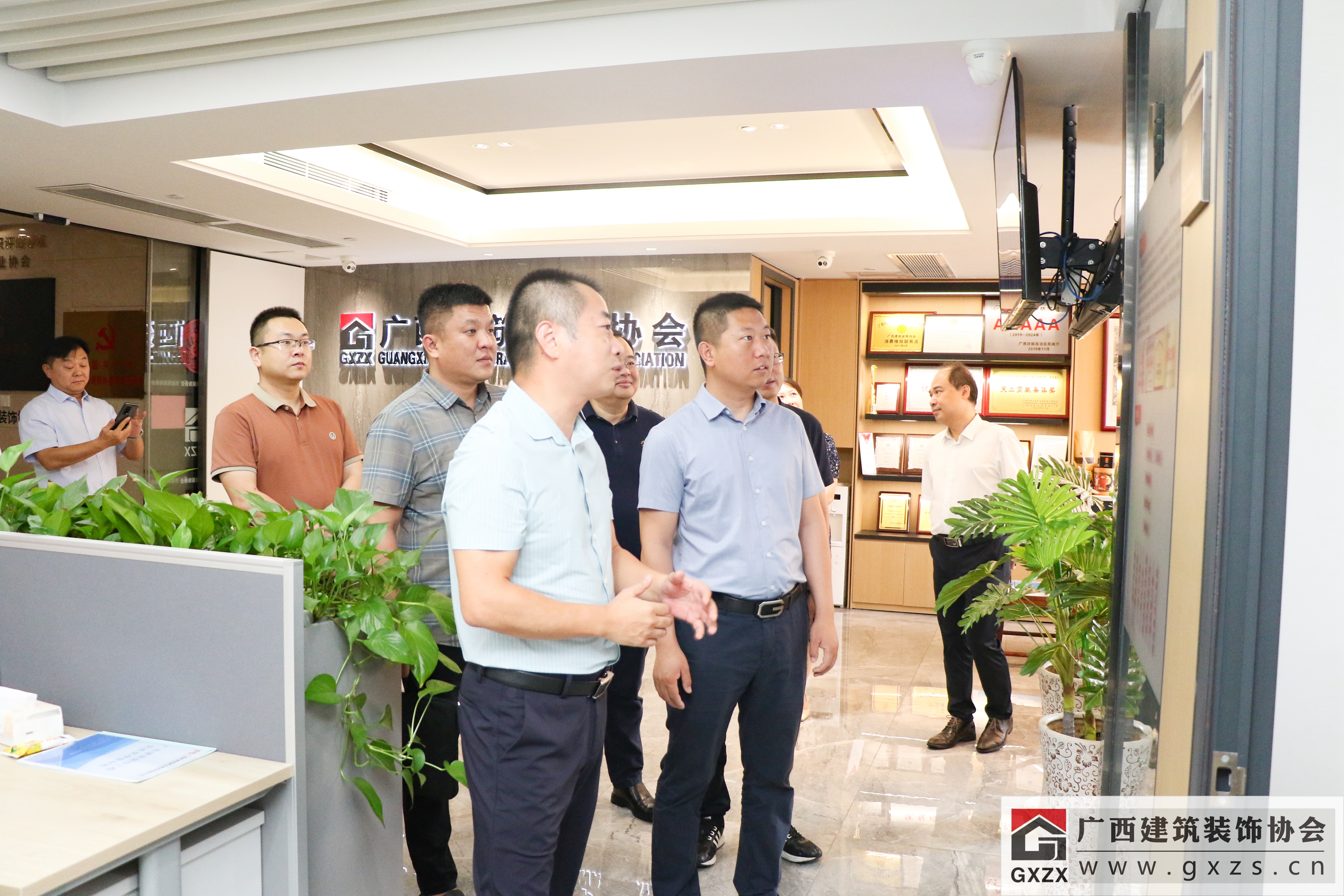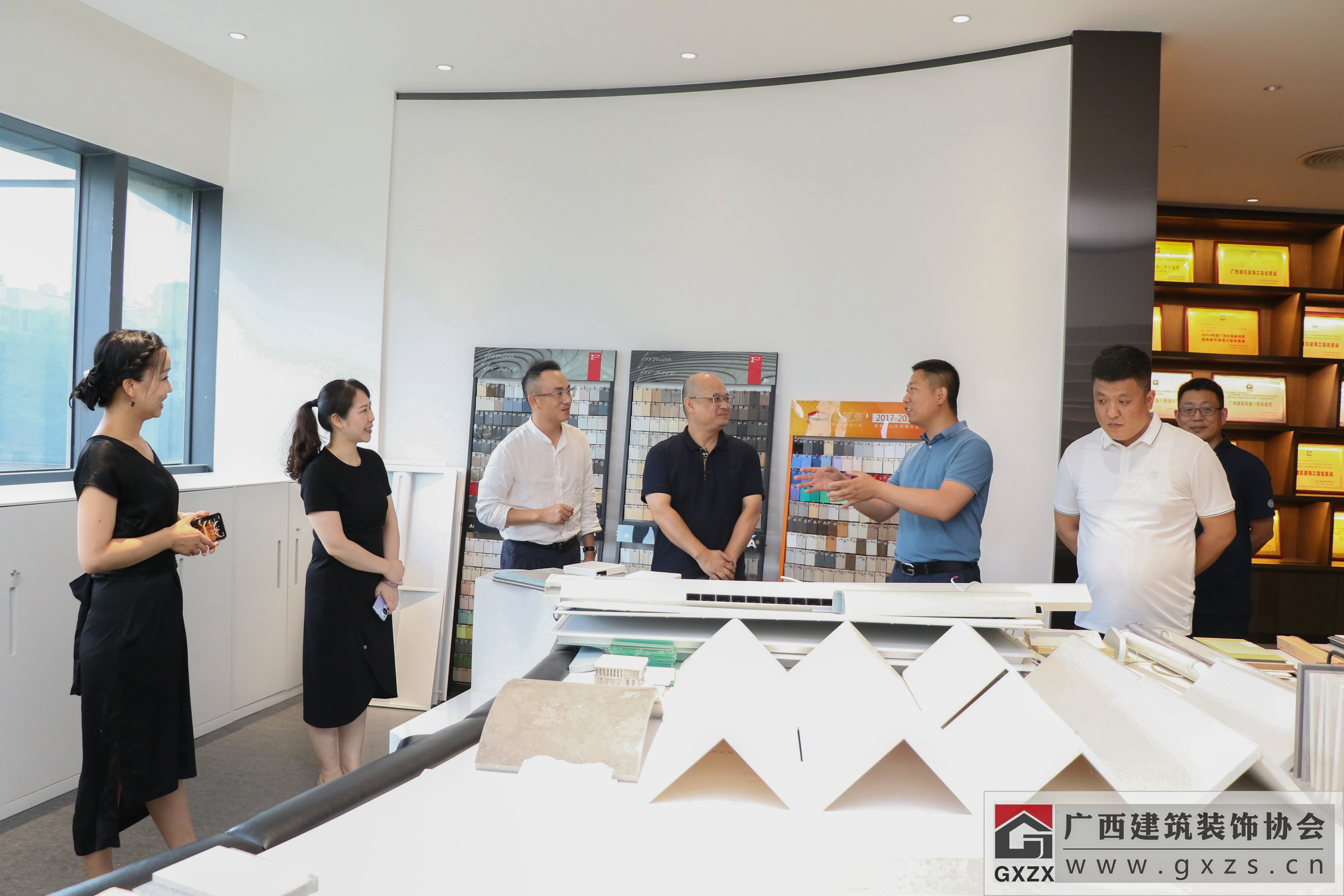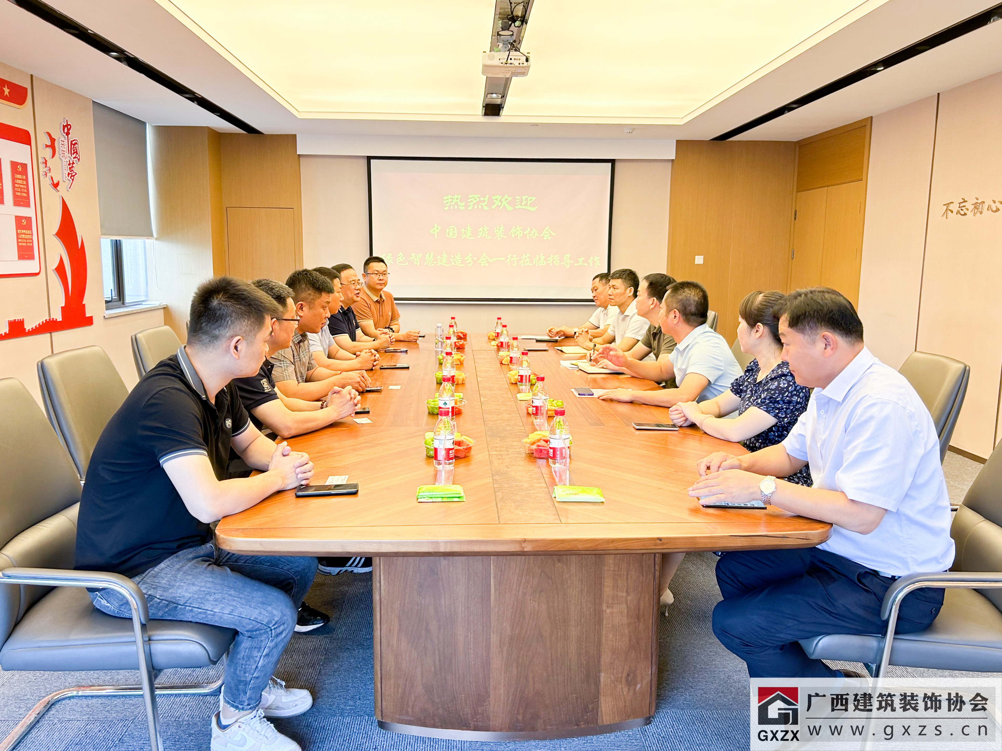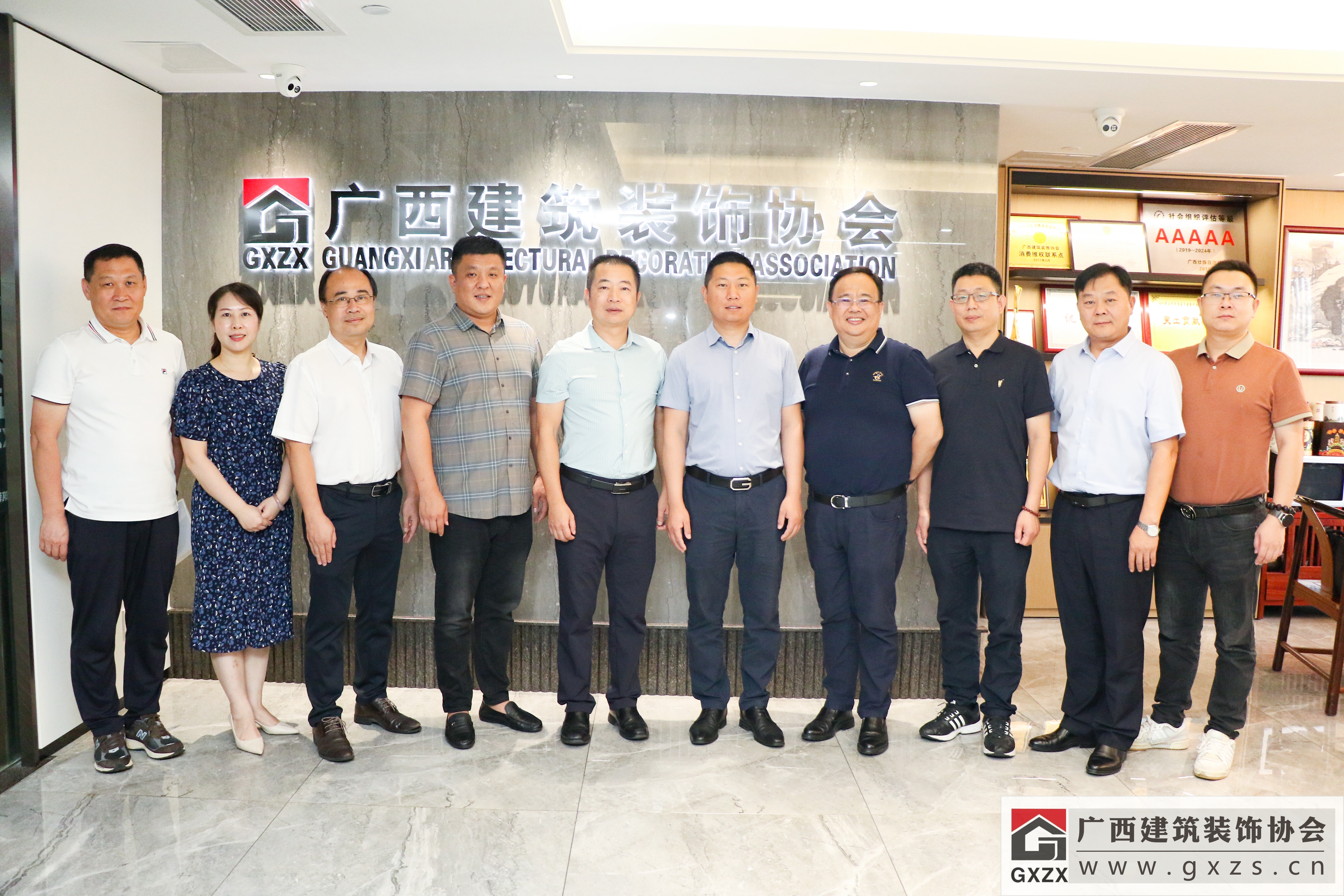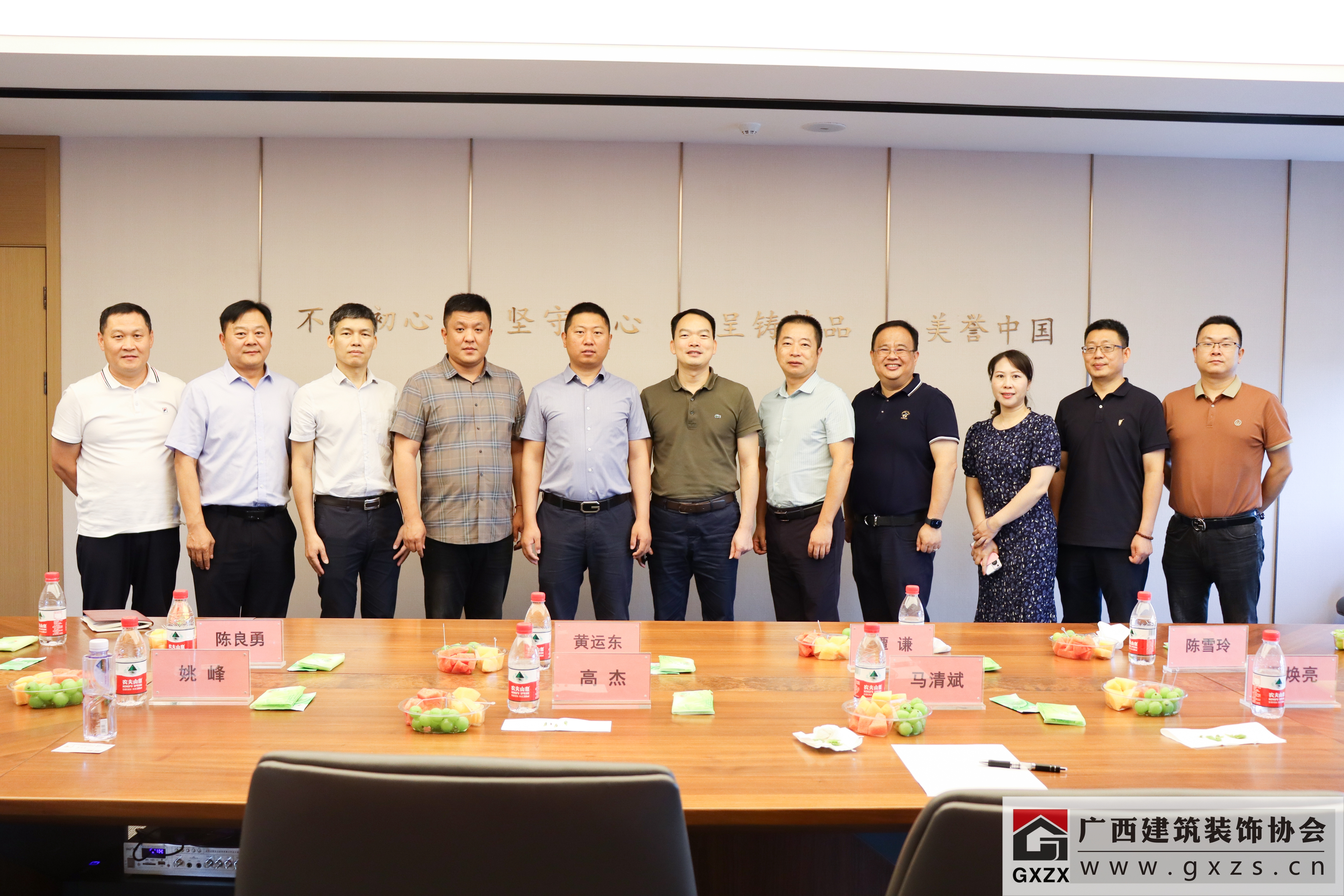6月27-28日,中国建筑装饰协会绿色智慧建造分会秘书长高杰、副秘书长马清斌以及随行的建材企业代表组成的考察团一行来到广西(南宁)的装饰企业调研,先后来到广西部分头部装饰企业总部以及协会秘书处参观调研、交流。