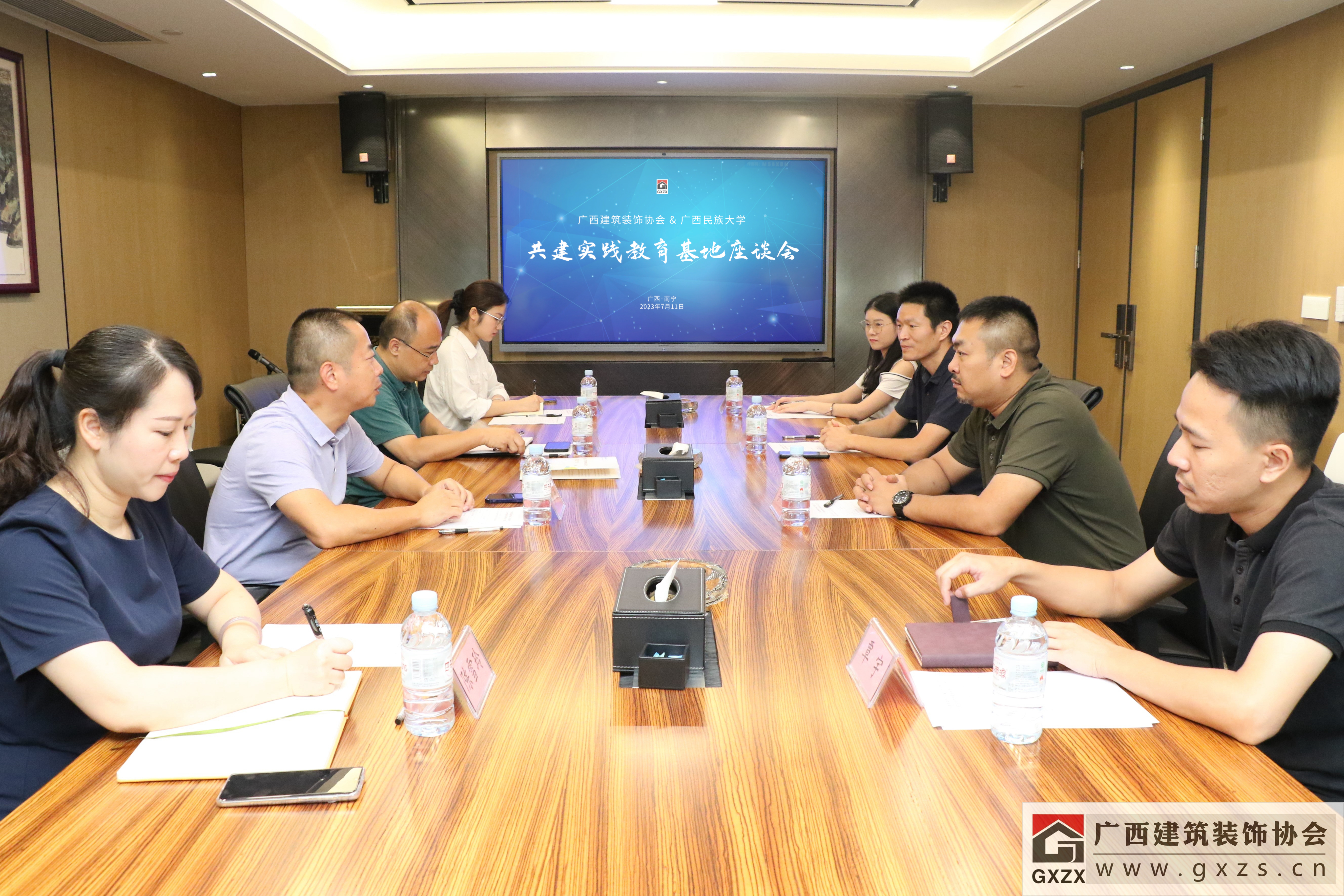 2023年7月11日,为进一步加强校企合作、深化产教融合,充分强化人才对产业发展的支撑作用,畅通人才引进渠道,广西建筑装饰协会与广西民族大学在协会秘书处召开了共建实践教育基地座谈会,在会上达成了共建实践教育基地合作。
