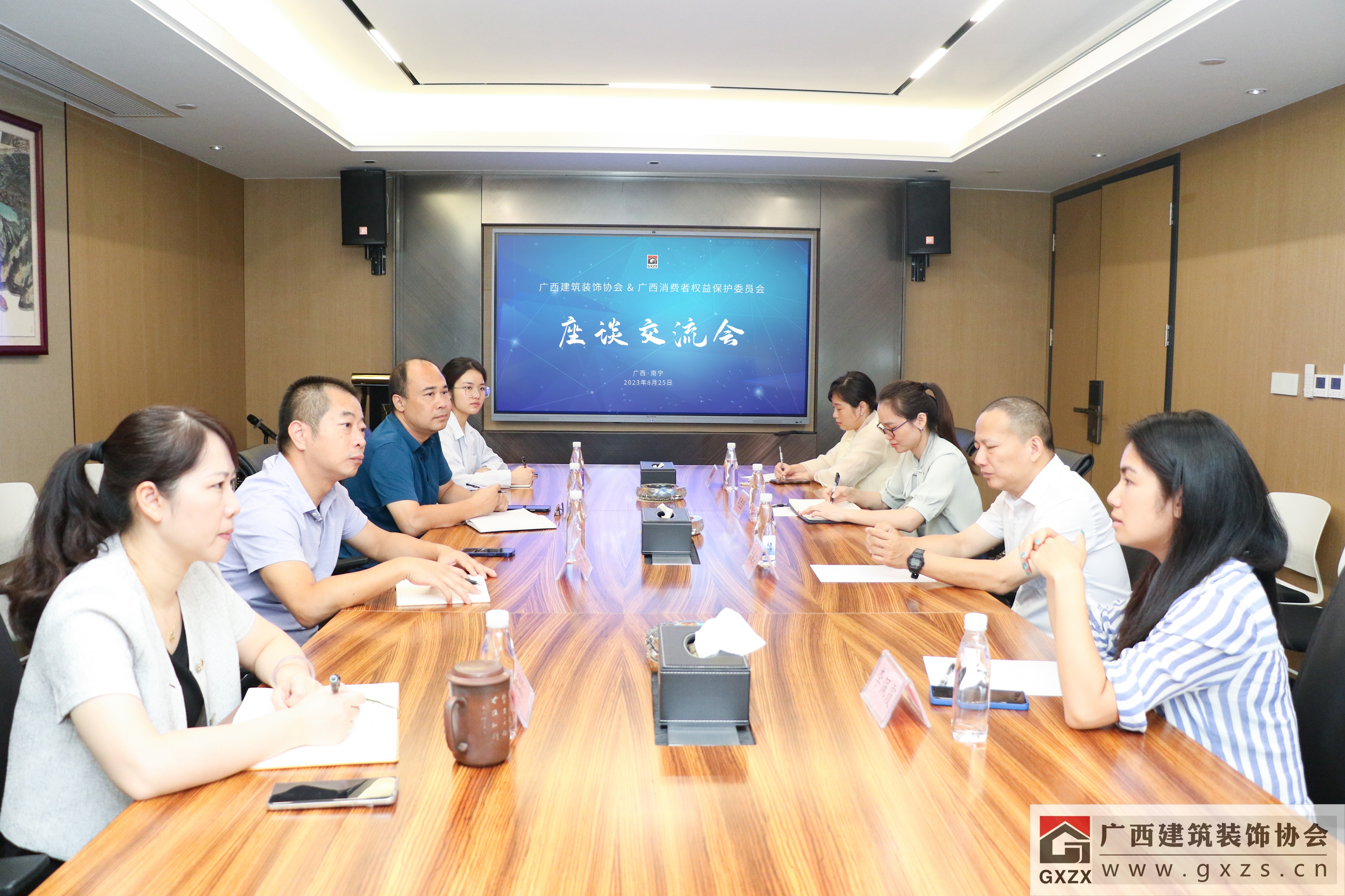 2023年8月25日,为进一步推动广西家居行业落实国家促进消费的政策,加强家装企业诚信建设及自律管理,广西消费者权益保护中心主任、广西消费者权益保护委员会秘书长唐楚尧带领相关职能部门负责人到协会秘书处开展交流座谈活动。