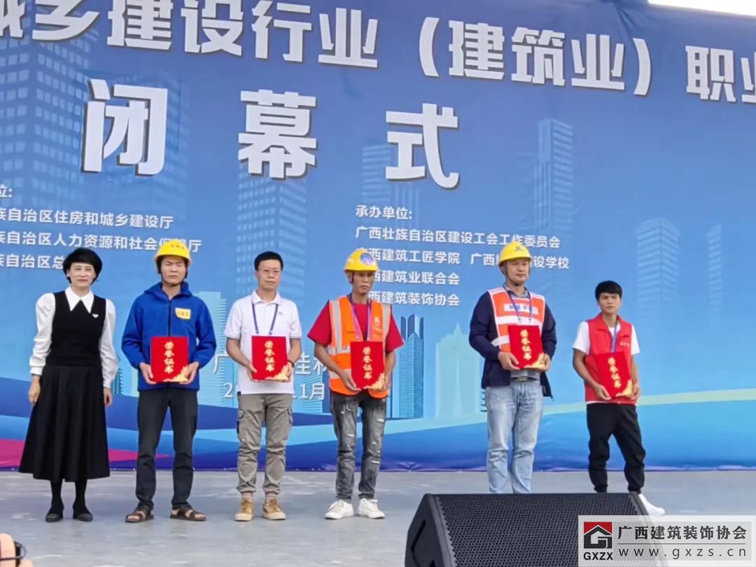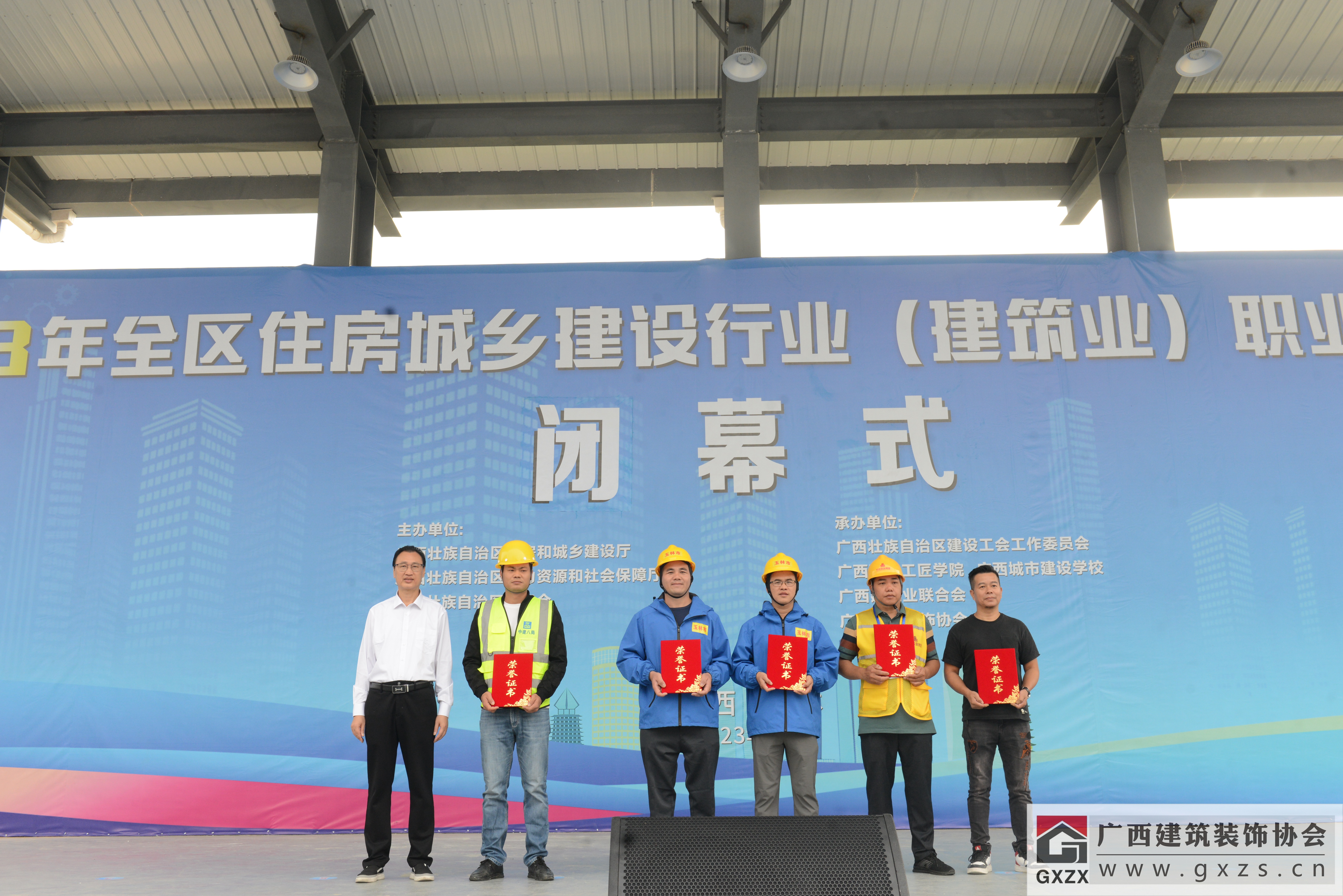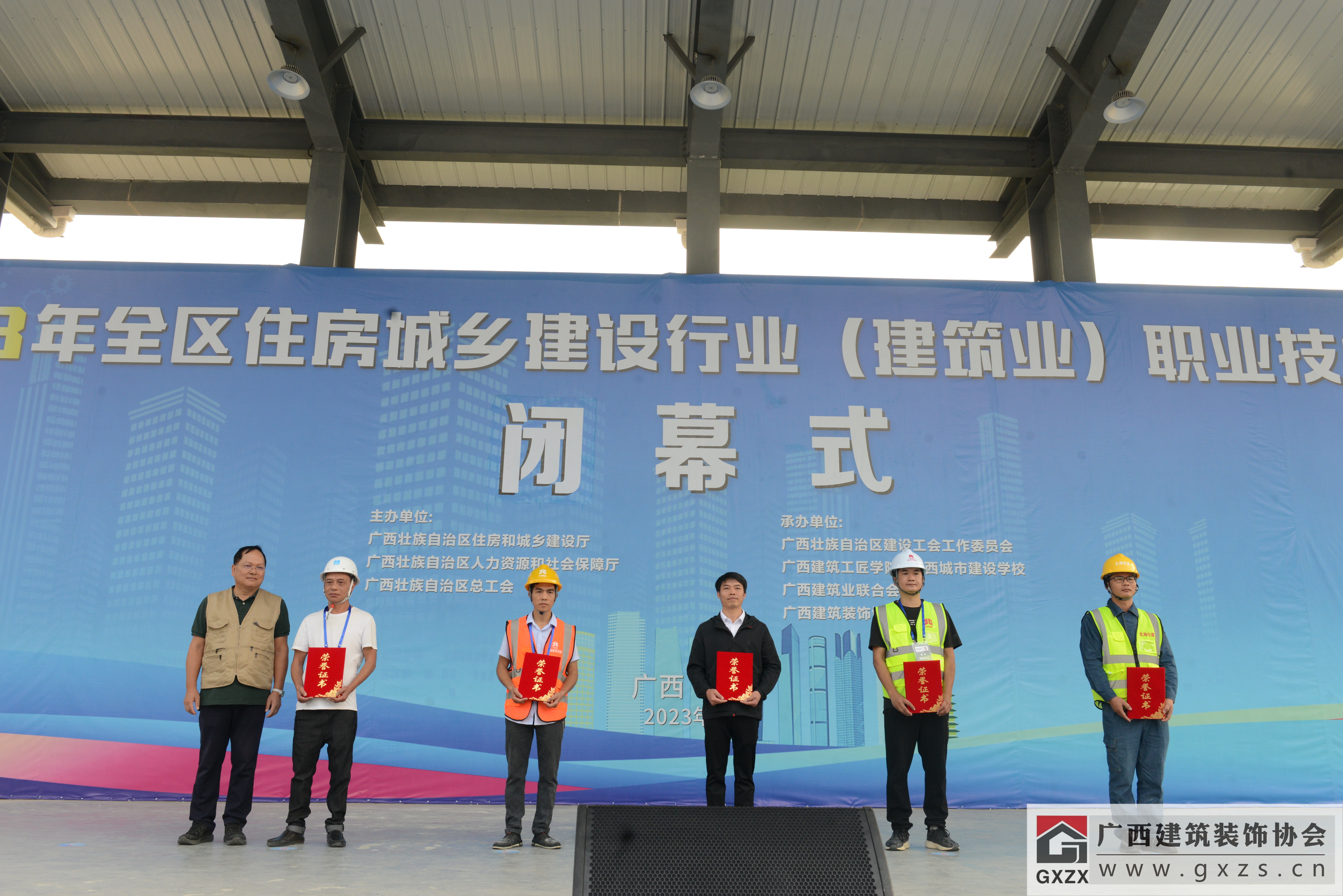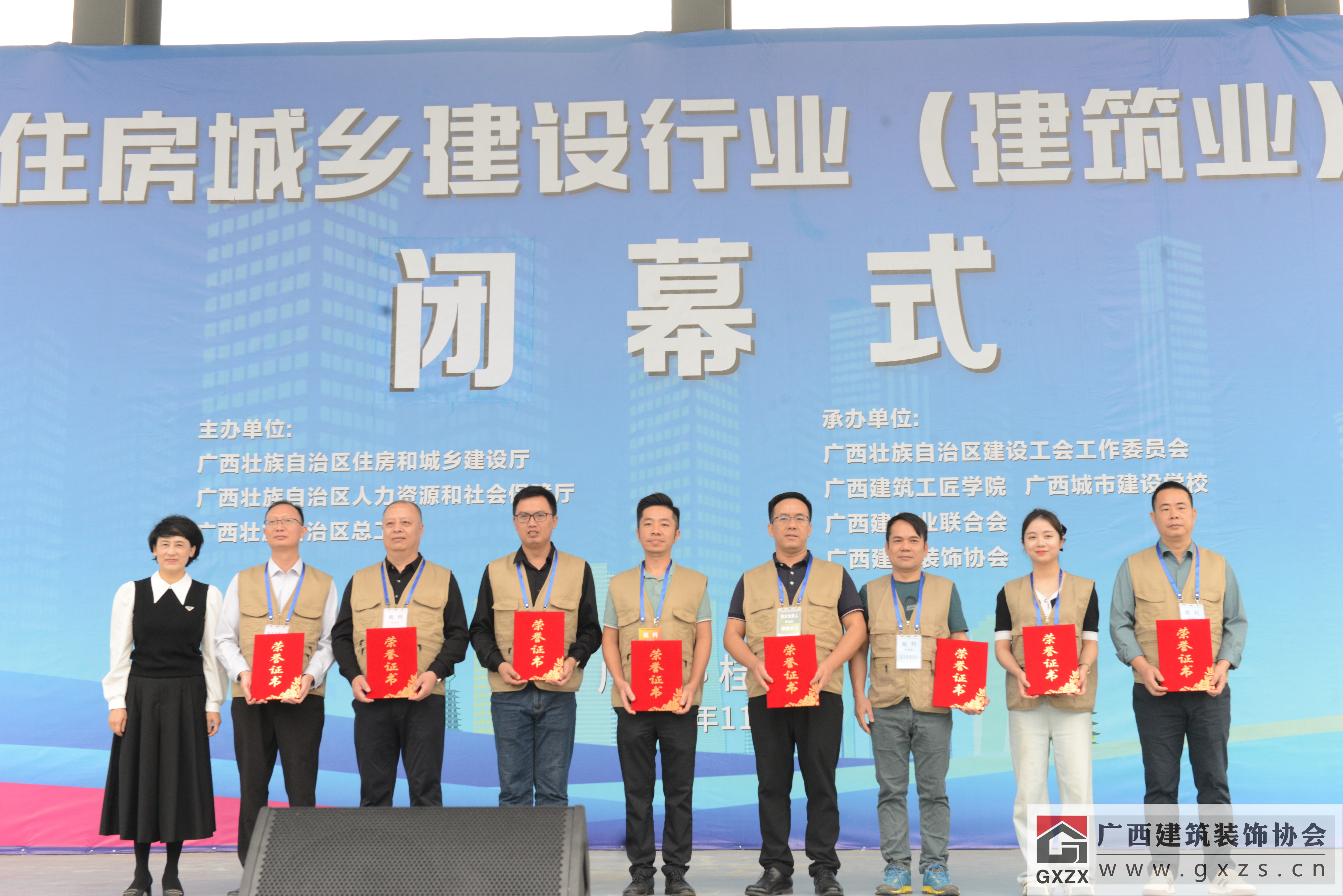 自治区总工会产业工作部部长刘文伟,广西建设工会副主任(主持工作)、二级调研员邹丽萍,广西城市建设学校副校长黄永乾、副校长崔永娟,广西建筑业联合会会长黄大友、副会长茹海华,广西建筑装饰协会秘书长谭谦等出席闭幕式,并为获奖选手颁奖。广西建设工会副主任、三级调研员韩荔红主持闭幕式。