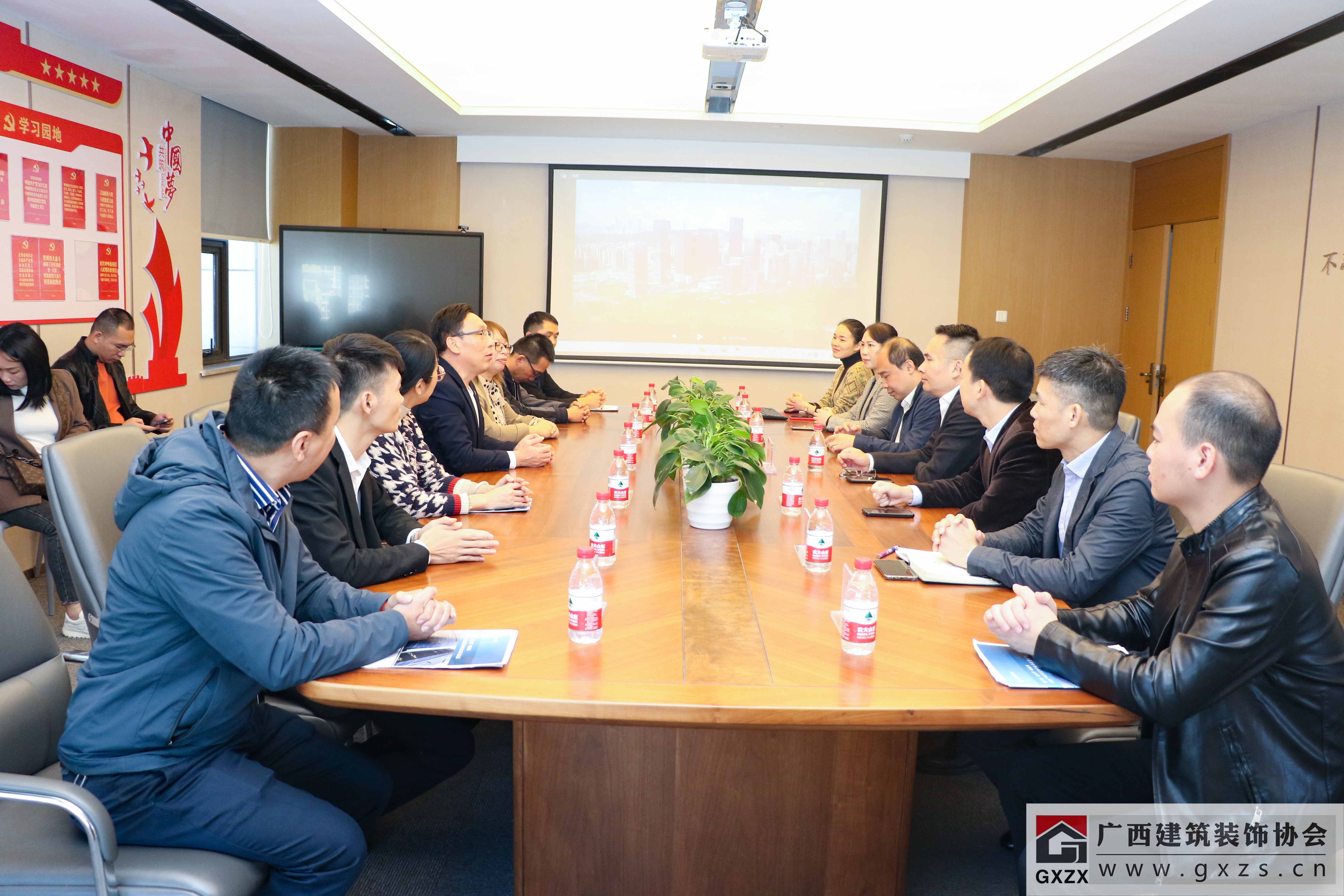 随后,一行人来到了广西呈美建筑装饰集团有限公司,在我会副会长、广西呈美装饰董事长黄运东的介绍下,了解了呈美装饰的业务流程、项目管理、质量控制等方面的经验和做法,同时,双方也就未来的合作进行了探讨和交流。