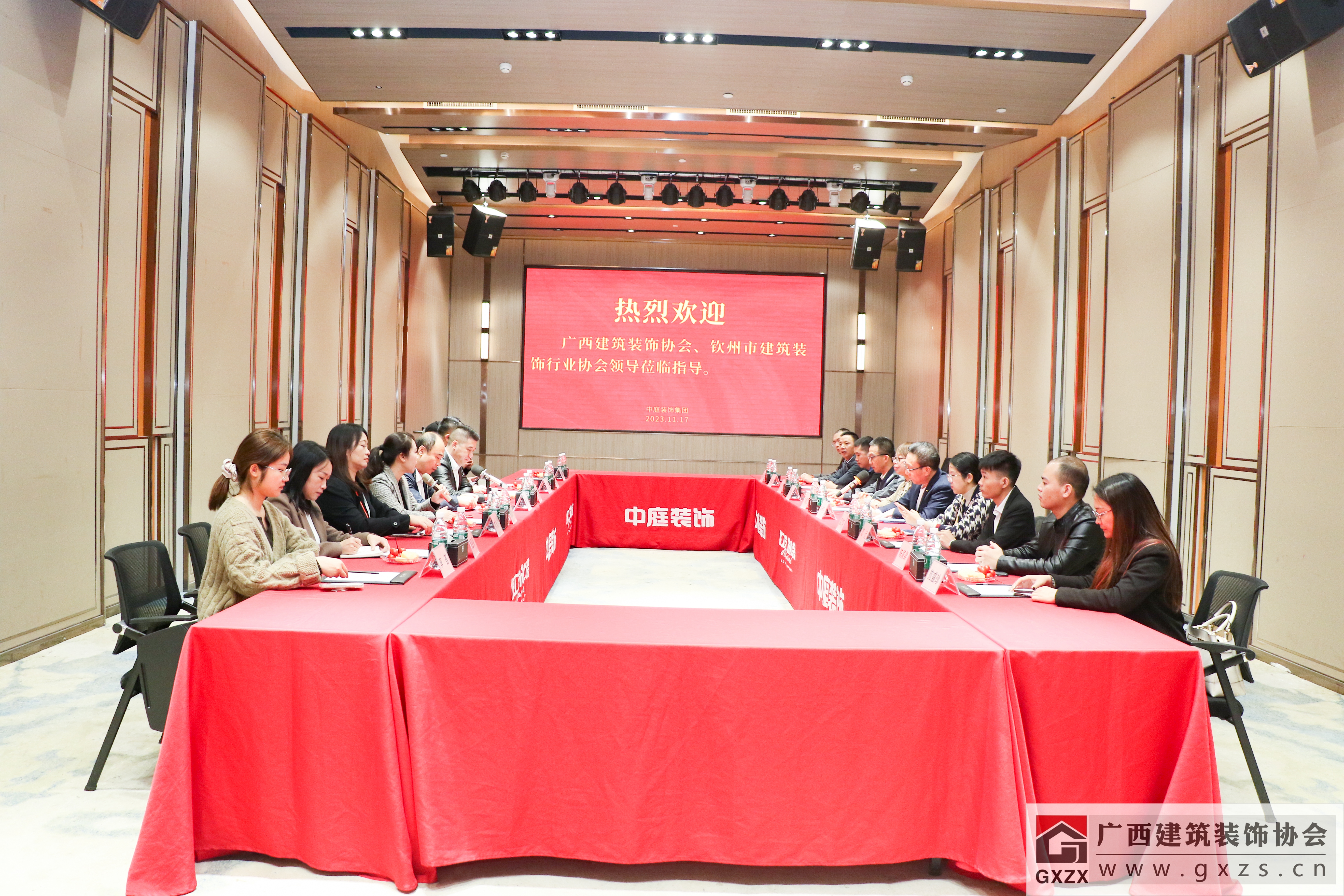 钦州装饰协会一行来到广西中庭装饰工程集团有限公司,在中庭装饰副总裁张浩熙带领下参观了展厅和党建园地,并详细介绍了企业在创新业务模式、服务建设、加强员工党建意识培养等方面的做法和成效。在座谈会上,钦州装饰协会与中庭装饰相关职能负责人就业务开展问题进行了深入探讨,分享了各自的市场拓展和企业管理经验。