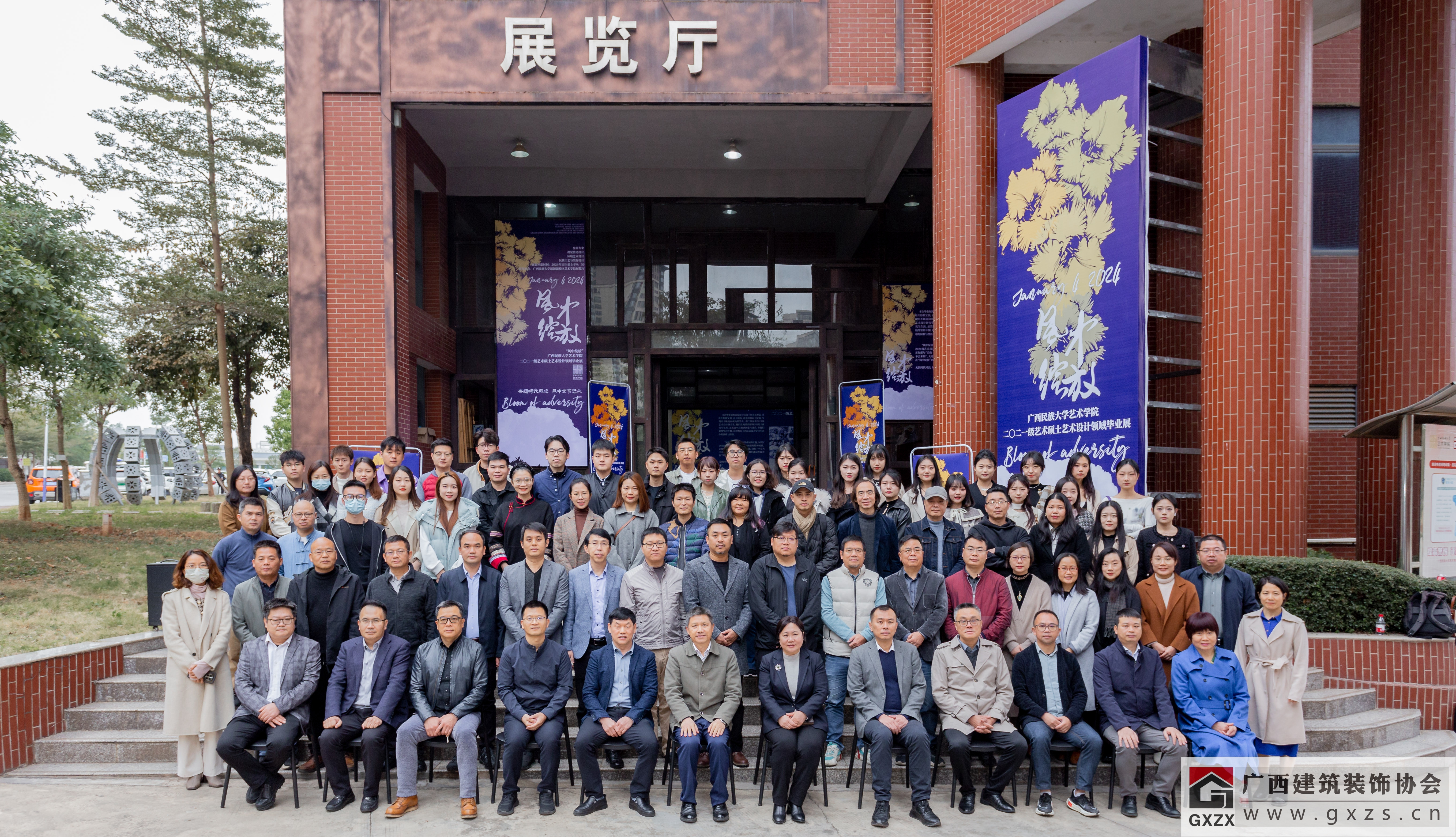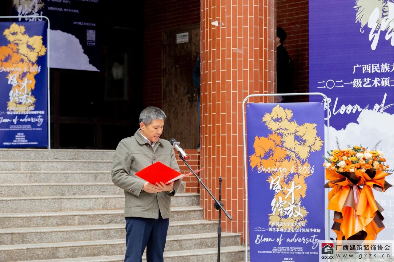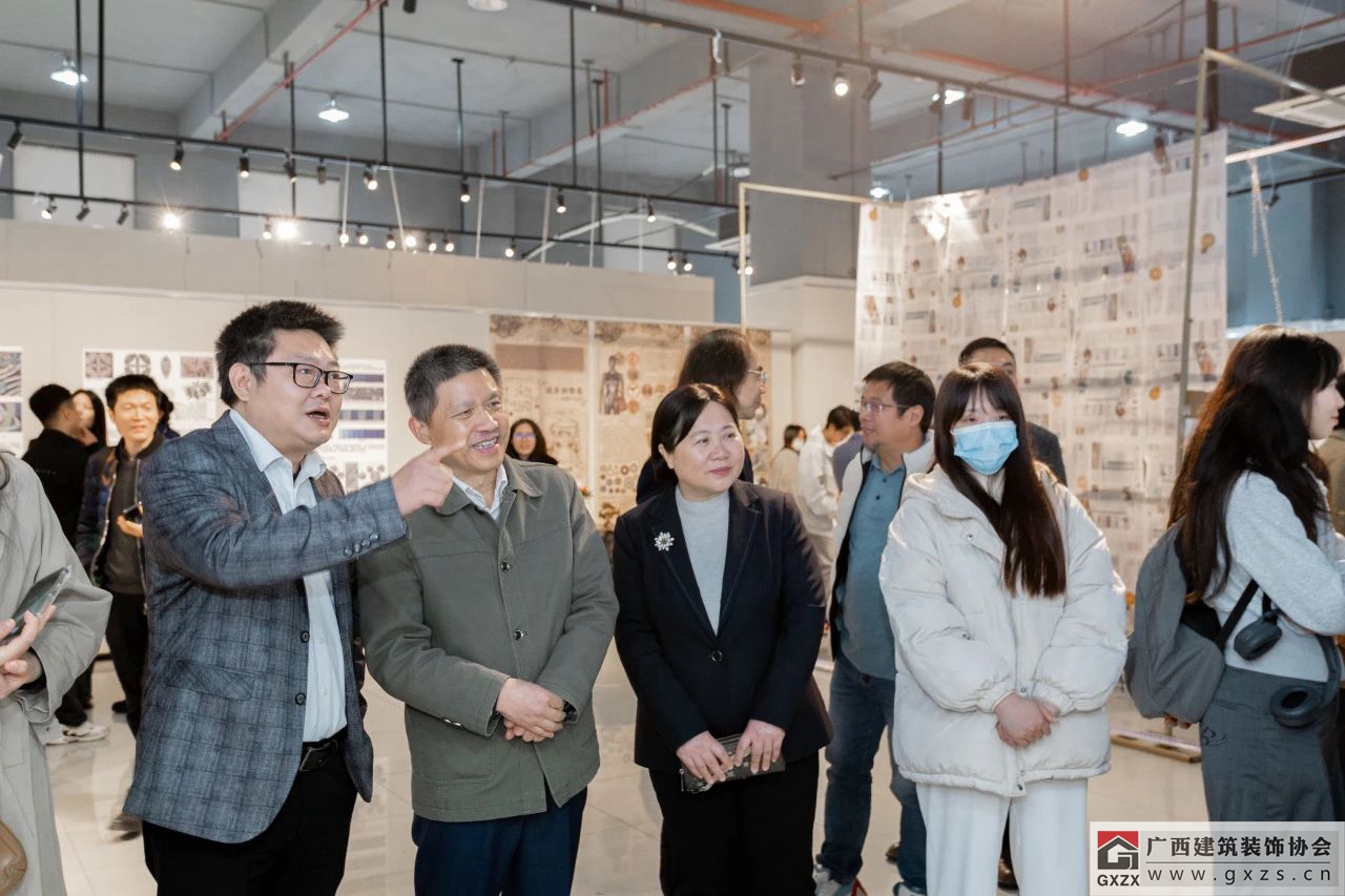 2024年1月4日上午,广西民族大学艺术学院2021级艺术硕士艺术设计领域毕业展在思源湖校区展览厅开幕。协会会长庞耀国,副会长、广西华蓝装饰董事长朱建宇作为民大校外实践导师出席。出席本次活动的主要领导有:广西民族大学党委常委、副校长吕俊彪,广西建设职业技术学院党委书记刘晓红,南宁市文联主席程小华,各兄弟院校负责人以及民大学校职能部门及学院领导等。