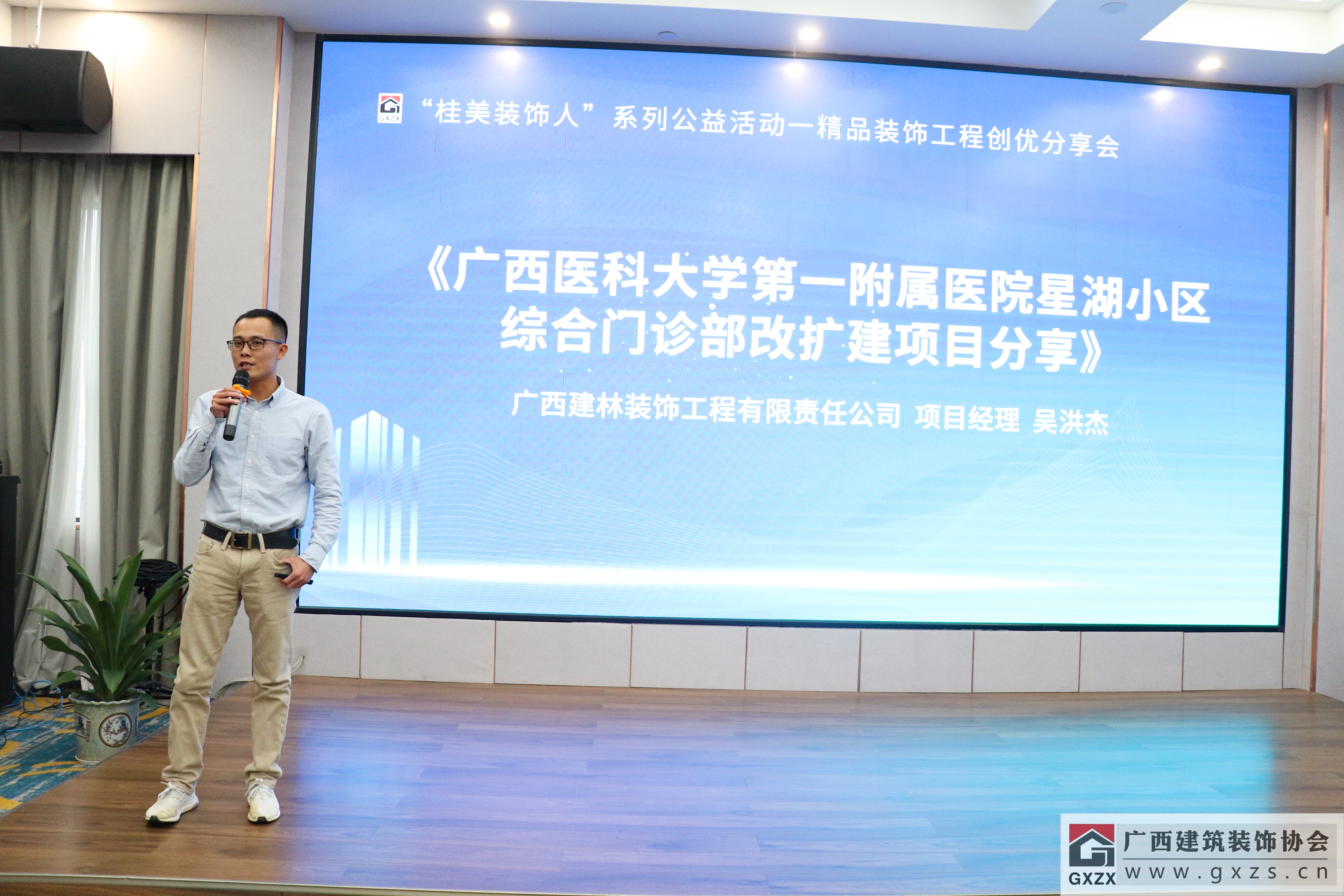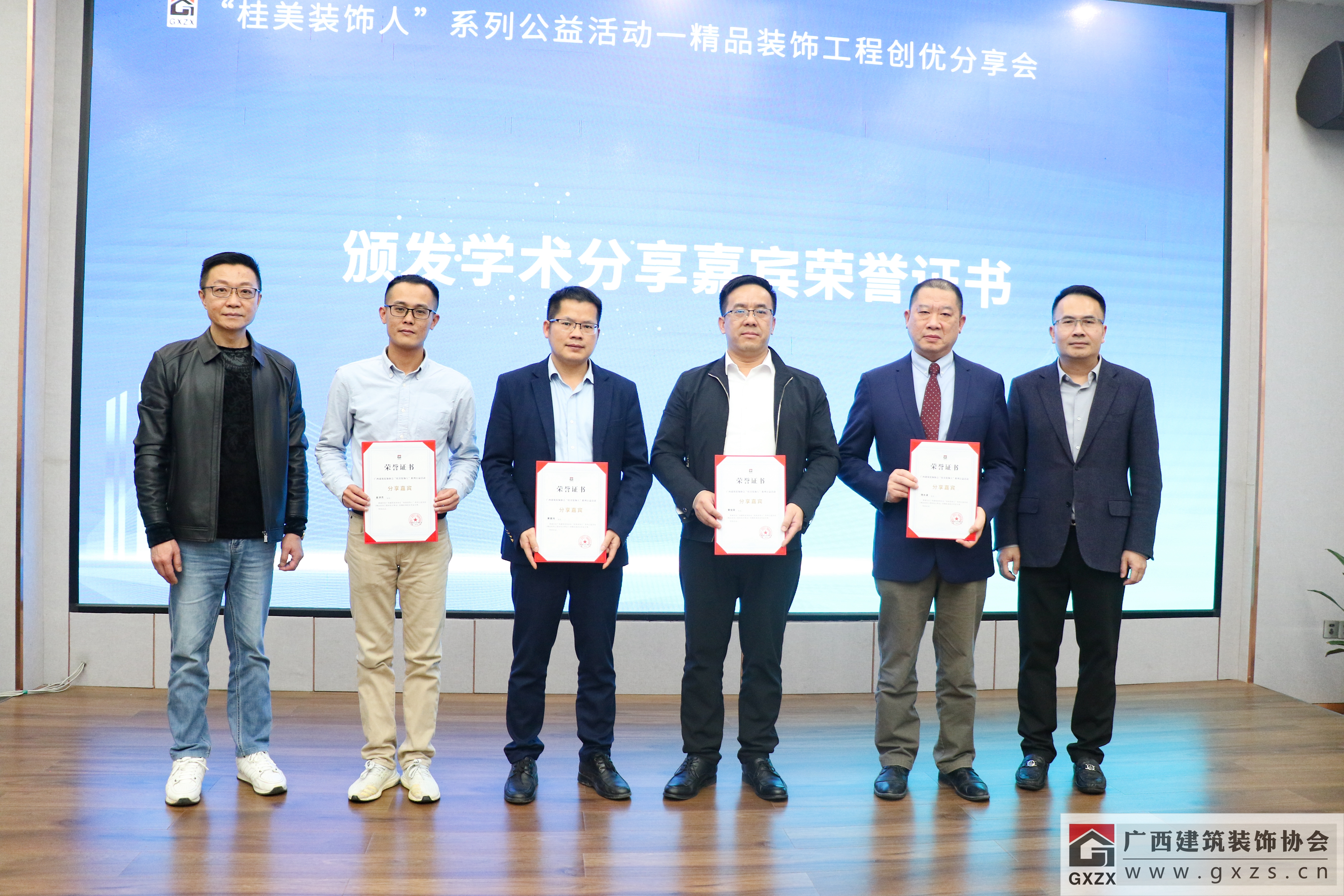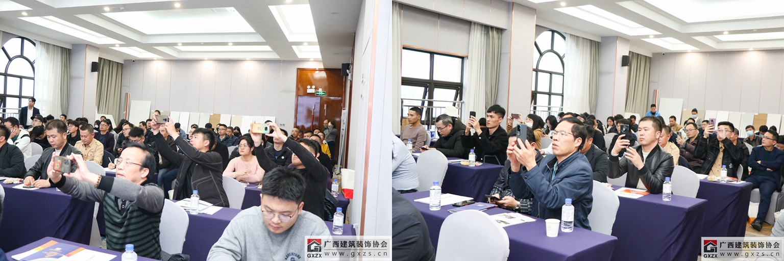 2024年1月10日,协会“桂美装饰人”系列公益~精品装饰工程创优分享会(2024年第一期,总第16期)在南宁顺利举办。本次分享会由广西建筑装饰协会主办,协会设计分会、施工委员会承办,协办单位为广西同创实业集团有限公司。协会相关负责人以及来自52家会员企业、三所高校师生代表约110人参加本次会议。