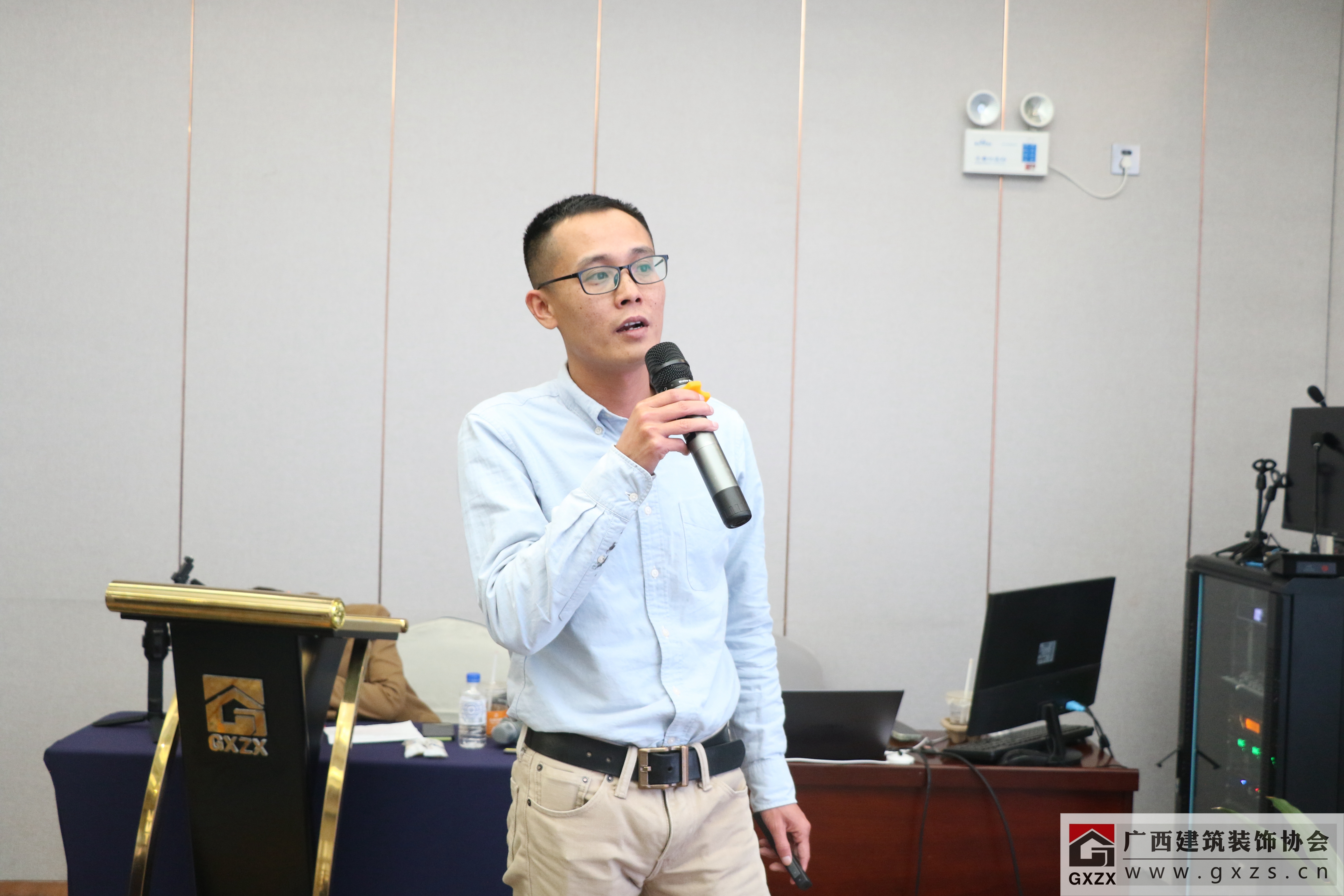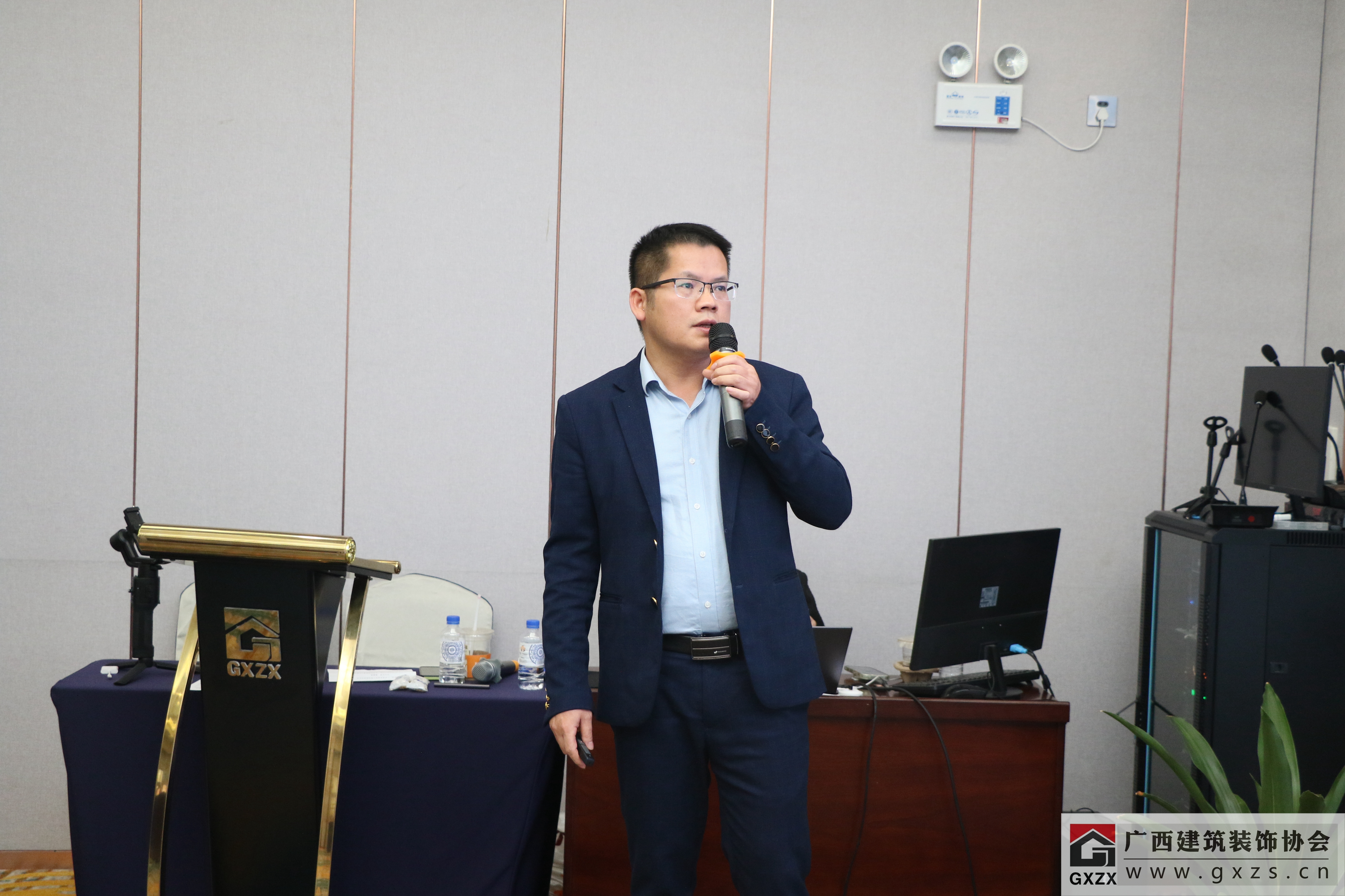 广西华辉装饰集团有限公司副总裁覃祖荣作“建筑装饰行业科学技术奖--科技人才奖申报经验”分享。他对“科技人才奖”最新的申报要求和标准进行解读和分析,同时分享了准备申报材料的经验和看法。