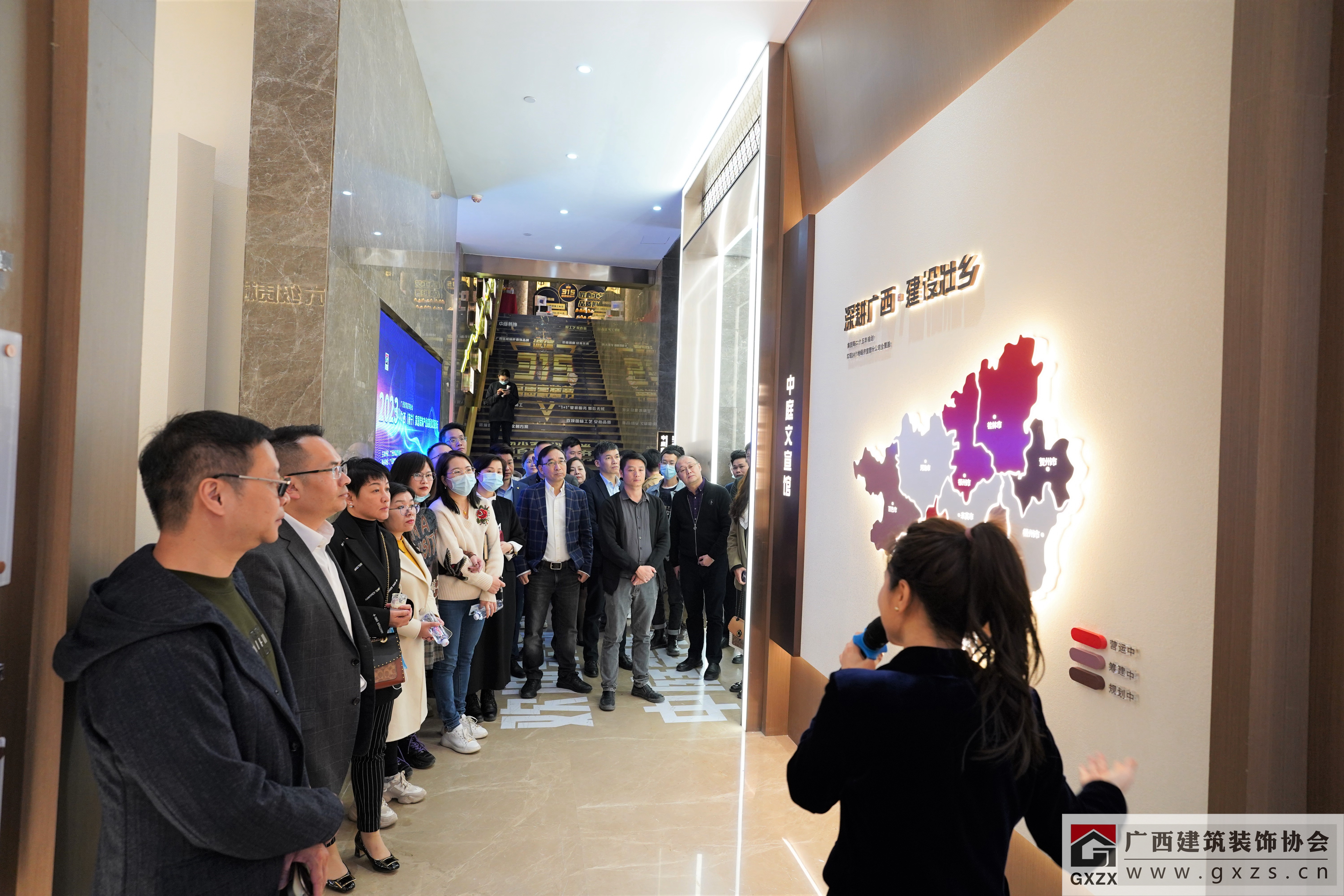 2023年1月,协会精选了在医疗康养板块具有丰富经验的广西头部装饰专包企业打造的精品装饰工程,举办《装饰精品工程现场质量观摩分享交流会》,庞耀国会长,协会副会长陈远立以及特邀2022年度区优复查专家以及协会55家会员企业代表共150余人参加了本次活动。通过本次观摩会,参会人员对该项目的施工要点、亮点、项目的规模、施工工艺等都有了直观的了解,也促进施工单位之间的专业交流。