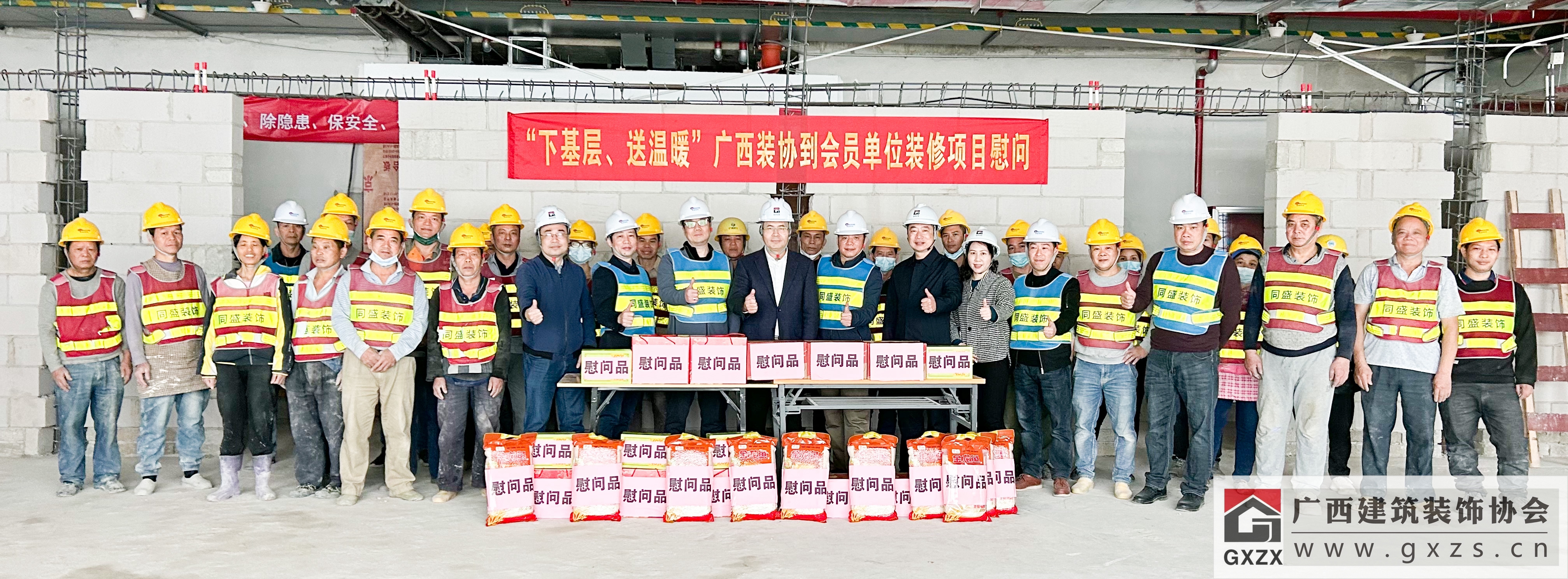 2023年2月,春节假期刚过,庞耀国会长一行来到广西同盛装饰、广西旅发装饰在建工地了解项目建设进展情况。为一线工人送上关心和慰问,并叮嘱工人规范施工、注意安全生产,为2023年的各项工作开好头、起好步。