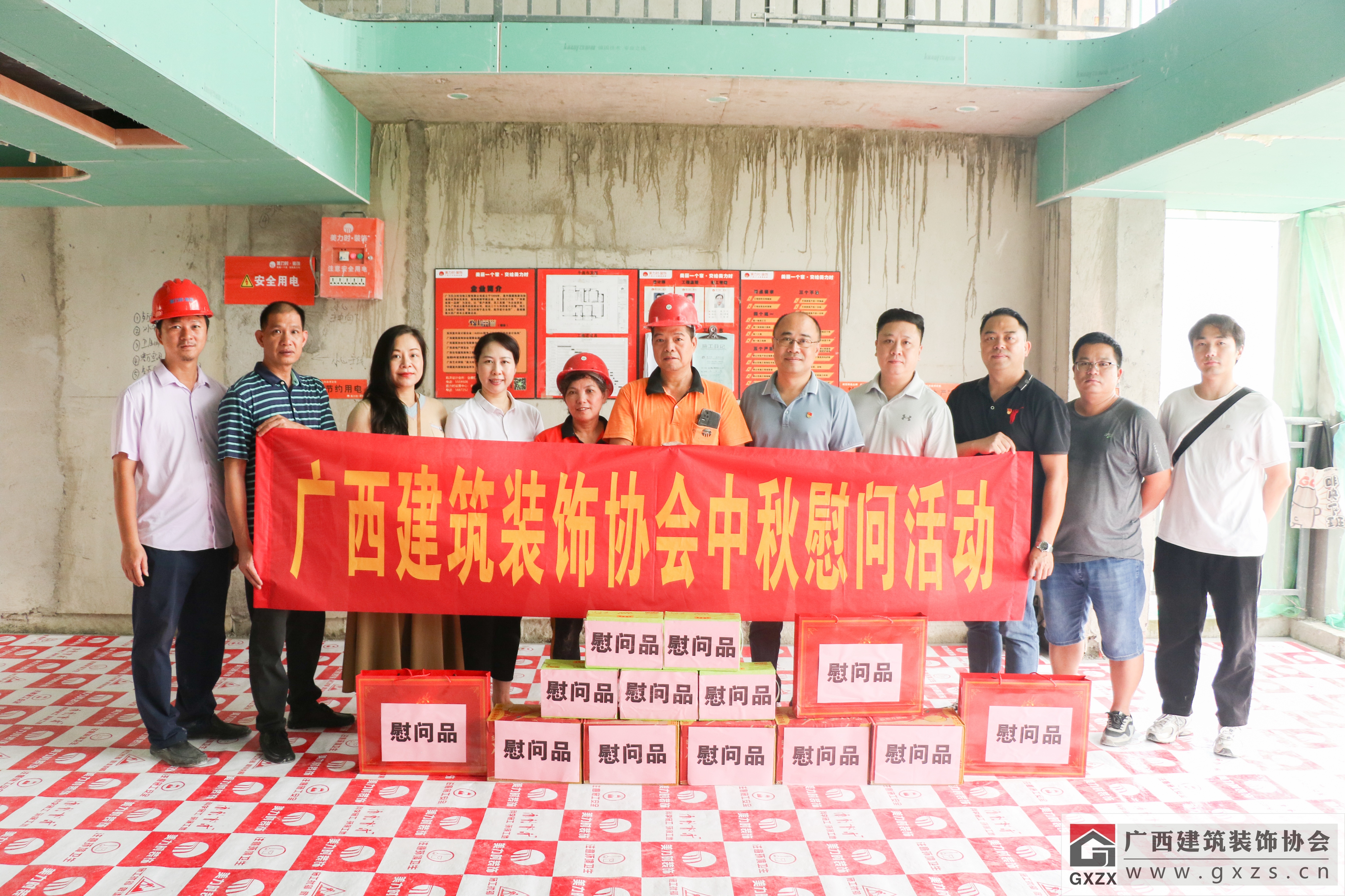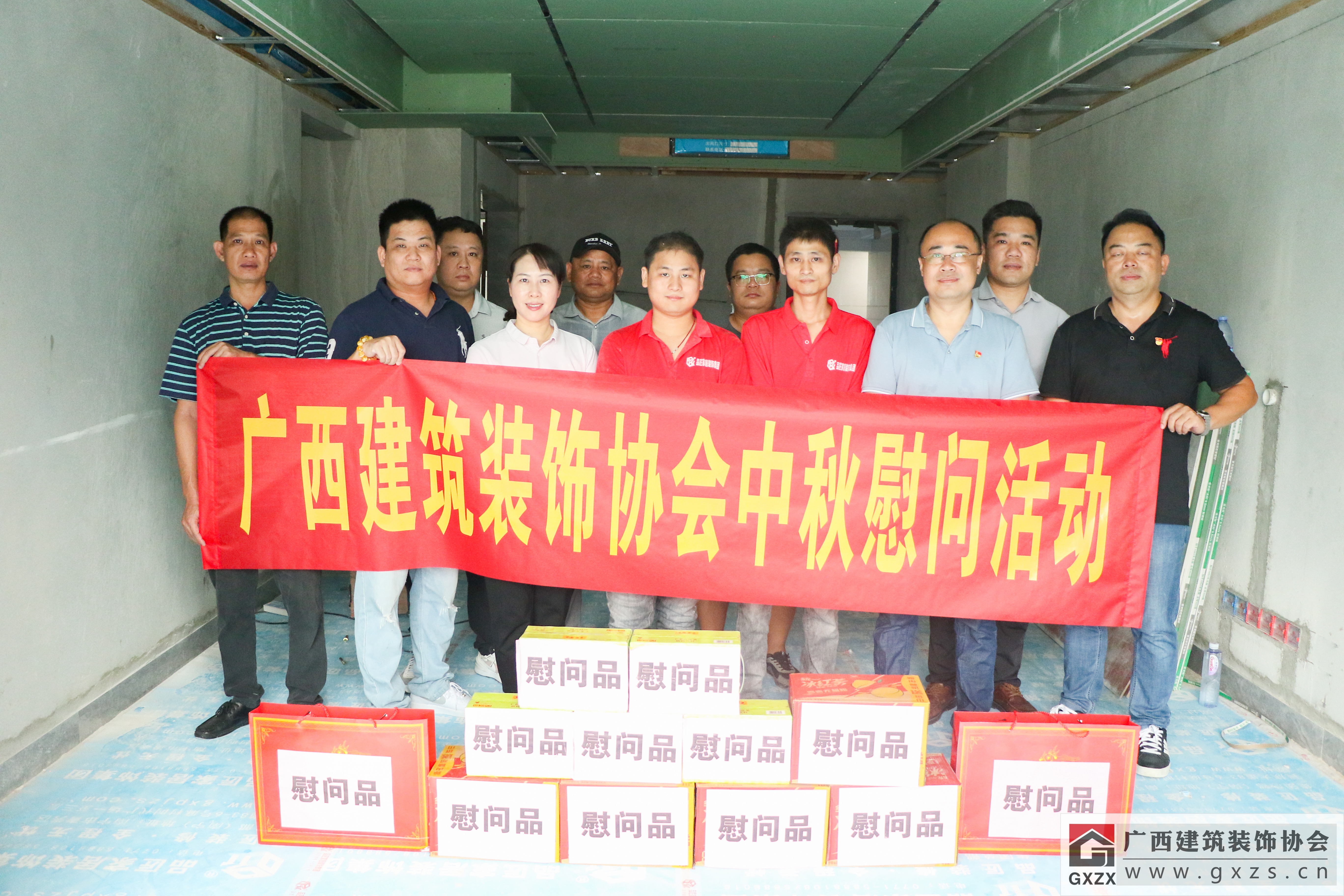 2023年9月,中秋佳节来临之际,协会党支部开展“迎中秋 送温暖”下工地中秋慰问活动。协会党支部书记黄榆、支部党员代表、入党积极分子以及秘书处工作人员来到广西美力时装饰、 广西品匠装饰、北京深度空间南宁公司住宅装修项目施工现场,通过现场负责人对项目进度和施工情况的介绍以及现场走访,了解项目现场施工情况,并对坚守在项目现场的一线工人送上节日的温暖和祝福,将慰问品送到他们手上。慰问时强调:项目能按照规范化施工、各项安全措施要到位、注意生产安全、杜绝破坏承重墙等,以优质工程质量获取业主的认可。