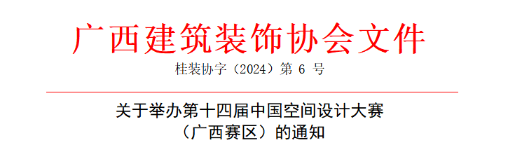 路径:登录广西建筑装饰网(桂装新网)(www.gxzs.cn)-评优报奖-设计奖-文件下载-《关于举办第十四届中国空间设计大赛(广西赛区)的通知》。