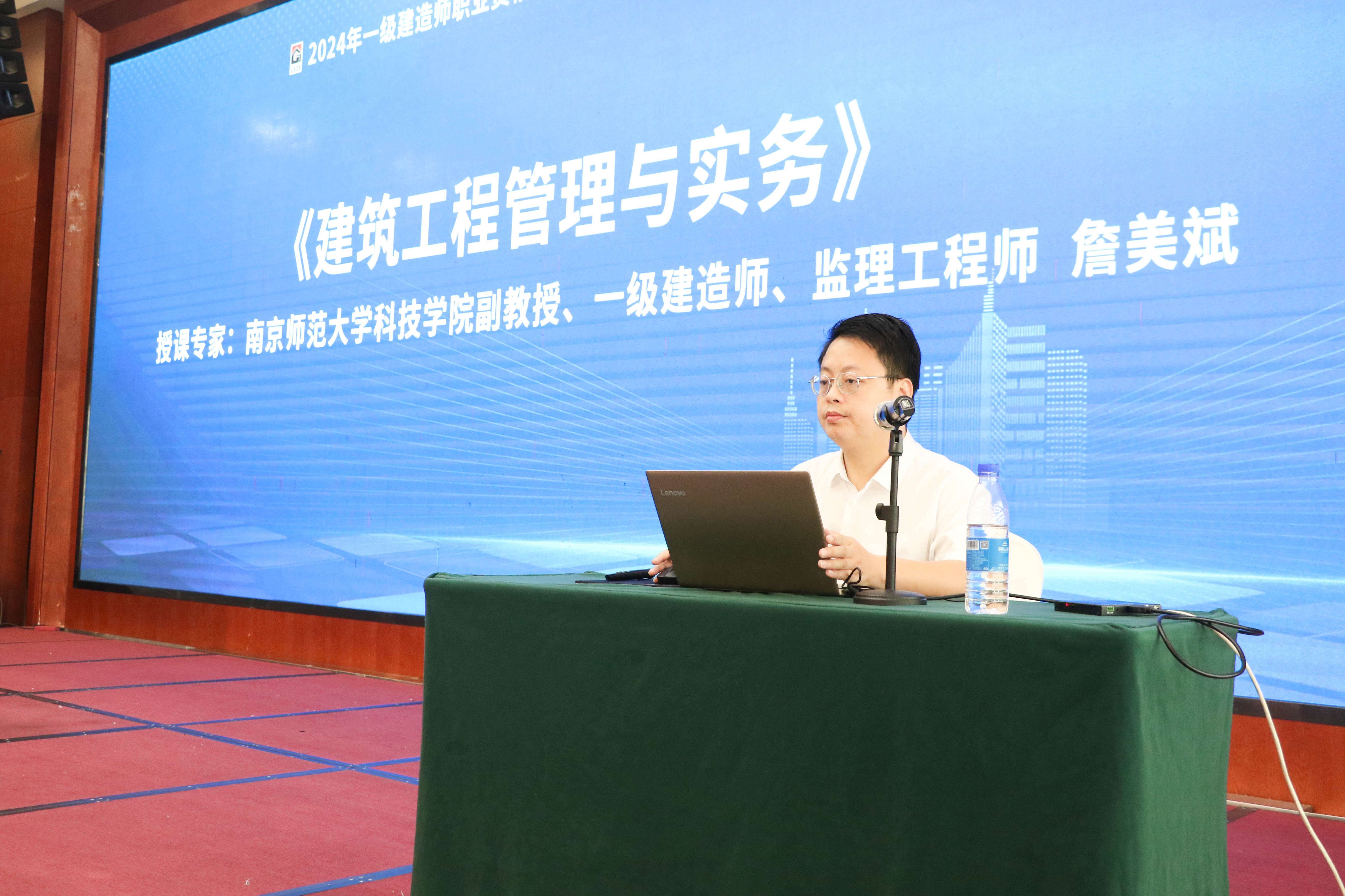 南京师范大学科技学院副教授、一级建造师、监理工程师詹美斌主讲《建筑工程管理与实务》,他在课程中深入讲解了建筑工程管理的核心要点,特别是工程实施过程中的实务操作。并结合自身的工程管理经验,围绕建筑工程管理中的难点和重点进行了详细解析,使学员们对实际工作中的管理流程有了更加清晰的认识。