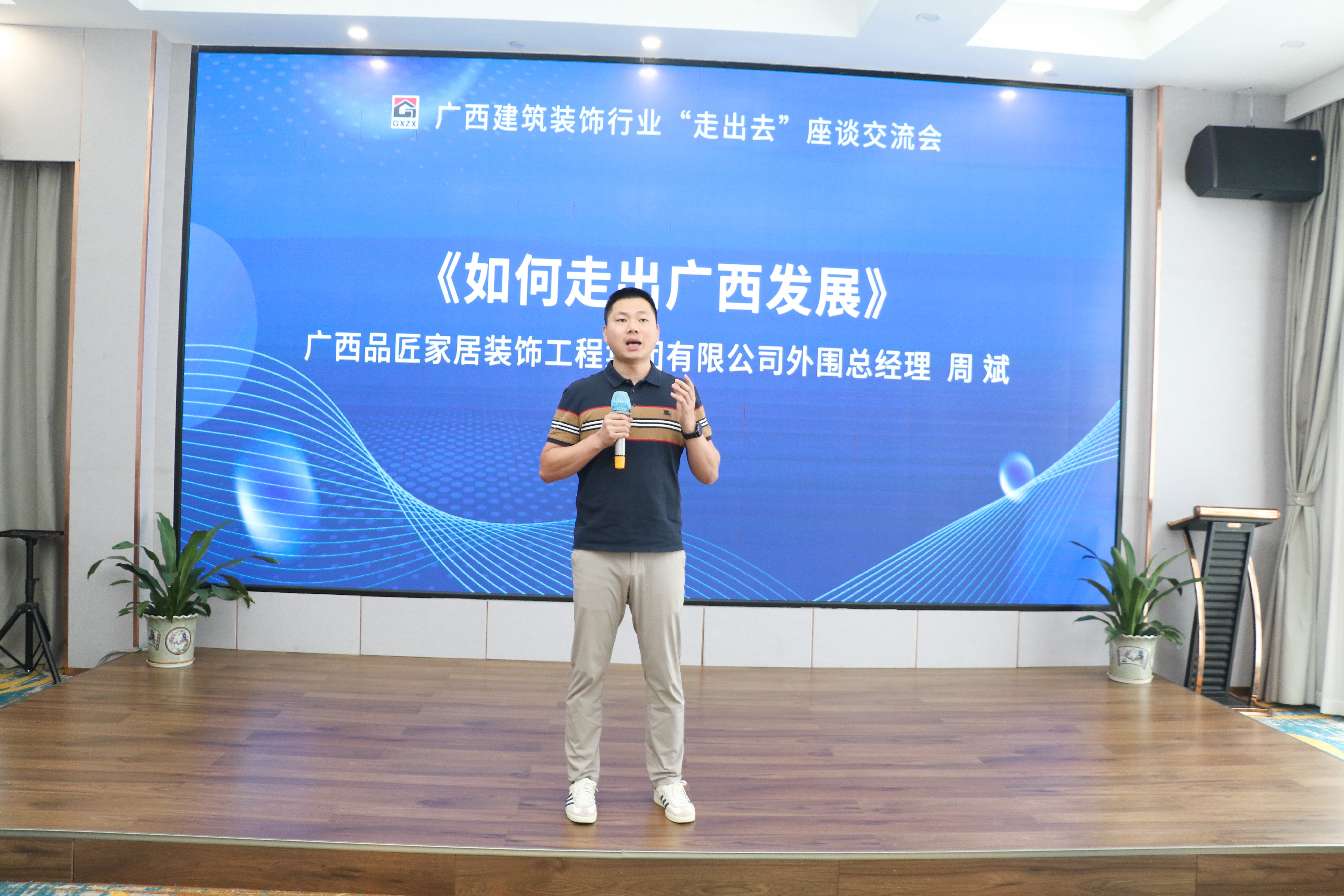 协会常务副会长、广西华辉装饰集团有限公司董事长杨景忠分享了《华辉装饰集团如何“走出去”》,详细介绍了华辉装饰集团在区外市场拓展中的经验和面临的挑战。