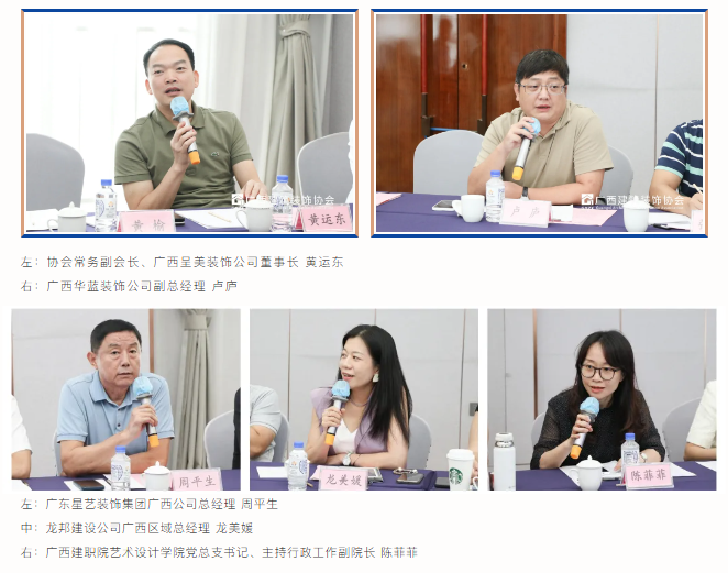 自由讨论环节,参会人员纷纷发言,围绕各自企业在区外市场的拓展经验展开了深入交流。多家企业代表分享了“走出去”和“走进来”心得体会。讨论在项目招投标、资质审核、跨区域项目管理等方面遇到的挑战和解决方法,并重点探讨了如何通过提升企业竞争力、优化管理模式等手段,更好地适应区外市场的需求。参会代表们积极互动,气氛十分热烈,纷纷表示受益匪浅,并期待未来能够通过协会平台进一步加强合作,共同推动广西建筑装饰企业在区外市场的更大突破。