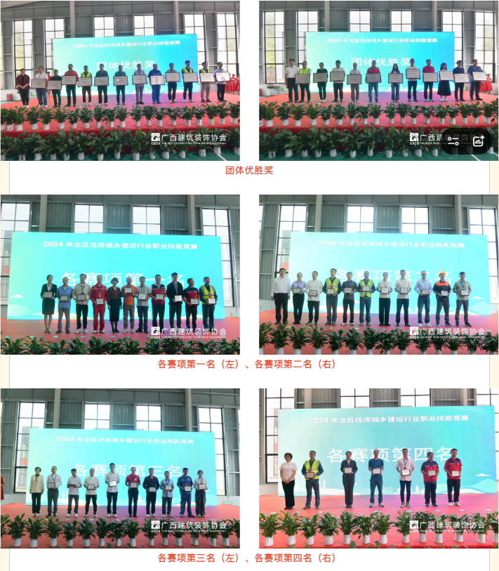 弘扬“工匠精神”,争做“能工巧匠”。协会长期以来注重产业工人队伍建设改革和技能人才培养,2021-2022年连续举办两届“广西建筑装饰行业职工职业技能大赛”;2021-2024连续四届组织会员队伍参加“2024年全区住房城乡建设行业职业技能竞赛”,通过以赛促学、以赛促练、以赛促用,进一步激励了广西建筑装饰行业职工提高理论水平、业务技能和职业素养,促进了行业人才队伍的成长壮大,为推动全区装饰行业高质量发展奠定坚实基础。