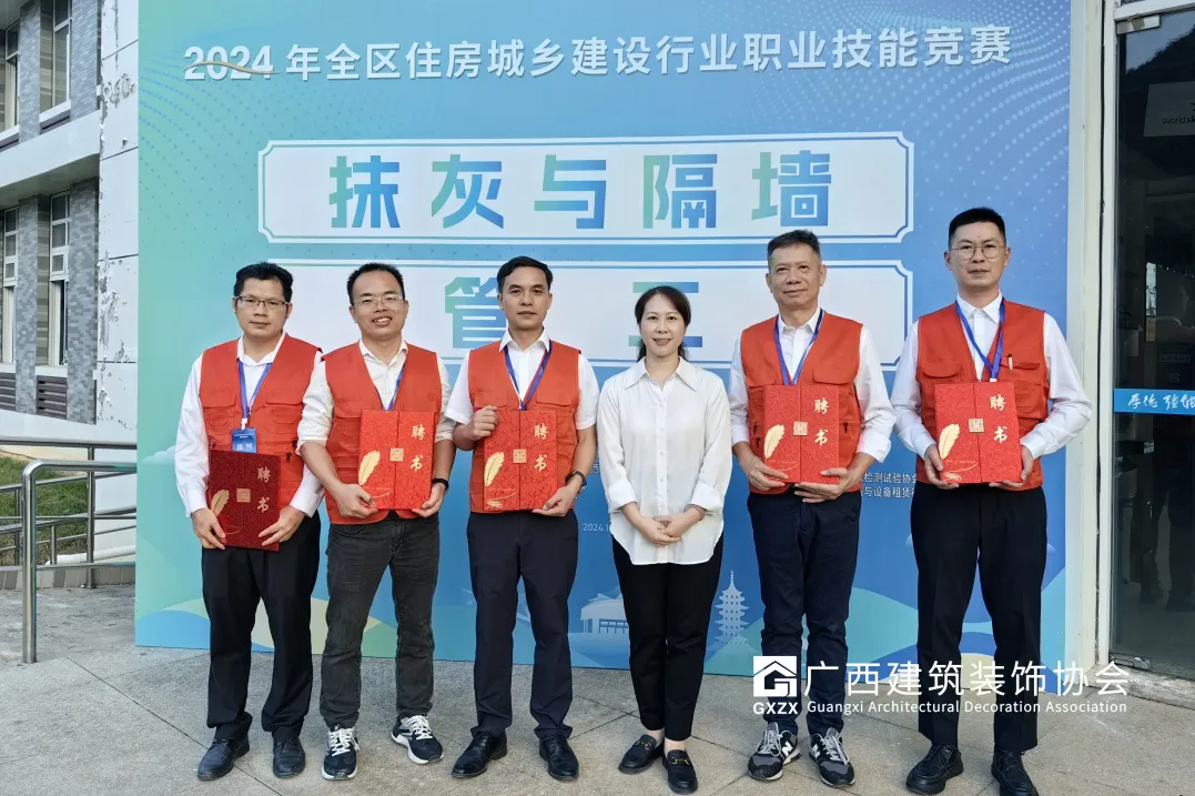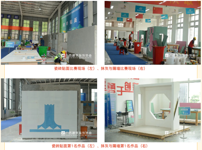 本次竞赛共设10个赛项,分别是抹灰与隔墙赛项、建筑工程质量检测员、瓷砖贴面、建筑信息模型技术员、安全员、物业管理员、工程测量员、管工、防水工、起重装卸机械操作工。组委会委托广西建筑装饰协会全面负责抹灰与隔墙、瓷砖贴面两个赛项的技术支持,协会对此高度重视,挑选资深专家担任抹灰与隔墙、瓷砖贴面技术负责人,编制技术文件和进行技术指导,并选派优秀专家负责抹灰与隔墙、瓷砖贴面赛项的评审工作;同时积极组织会员企业选派优秀选手参加相关赛事。