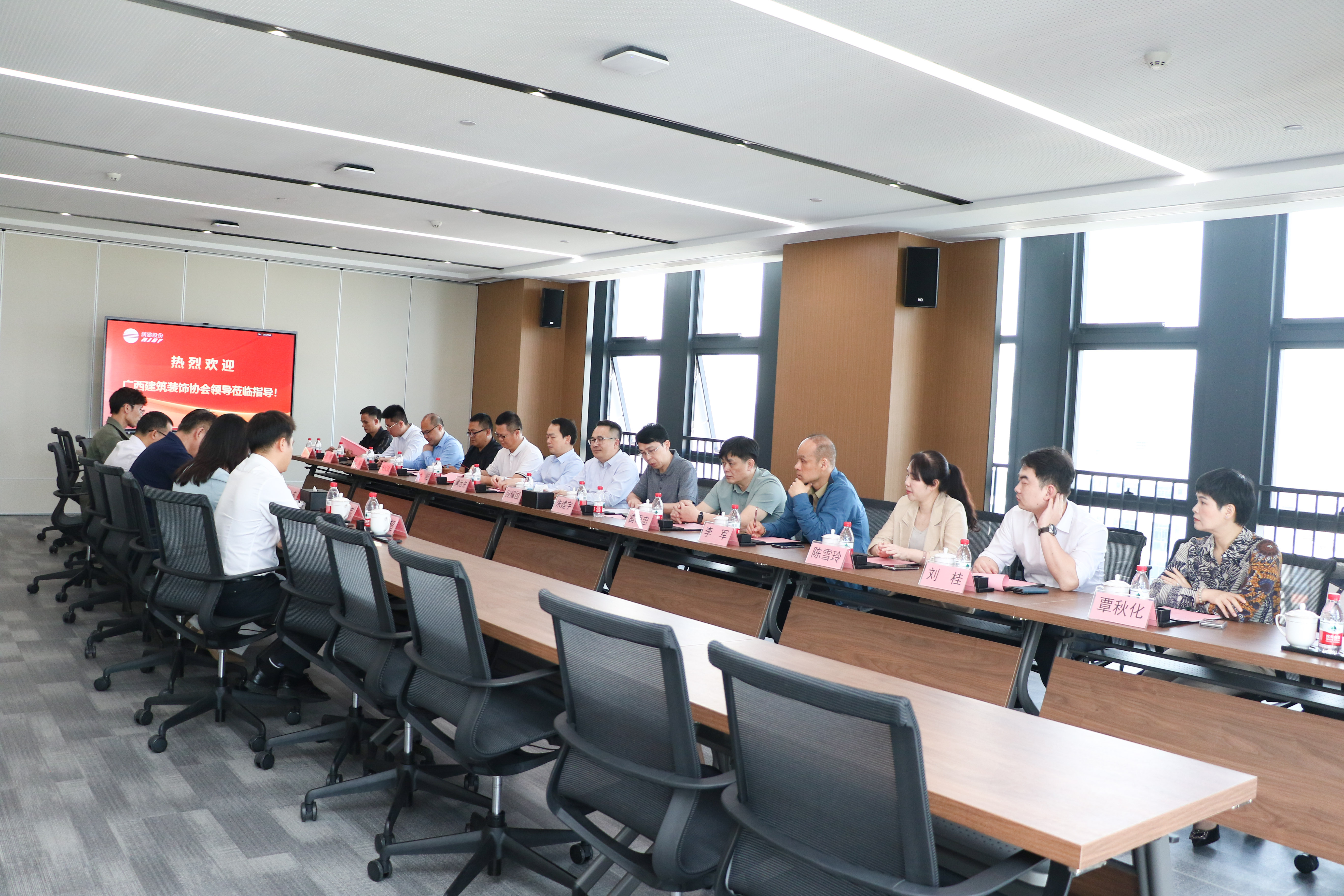 2025年4月15日,广西建筑装饰协会一行赴会员单位润建股份有限公司参观暨开展“人工智能+建筑装饰”专题交流活动。此次活动旨在推动人工智能技术在建筑装饰行业的深度融合应用,探索装饰与科技企业之间的协作模式,助力广西建筑装饰行业健康质量发展。协会负责人、协会监事、润建股份有限公司副总裁、首席专家及相关部门负责人共约20人参加活动。