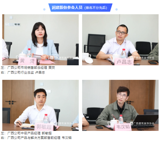 座谈交流环节围绕人工智能如何赋能建筑装饰行业展开了热烈讨论。与会代表纷纷表示此次参观交流深受启发、收获颇丰,进一步增强了对人工智能的认识和应用信心。重点探讨了AI在图纸设计、数据采集、施工现场管控、智能化招投标等方面的应用前景,提出利用AI技术实现降本增效、建设绿色化工厂的设想。并表示希望今后能进一步加强与润建的沟通合作,拓展人工智能在装饰行业的应用场景,实现装饰企业智能化、绿色化发展。