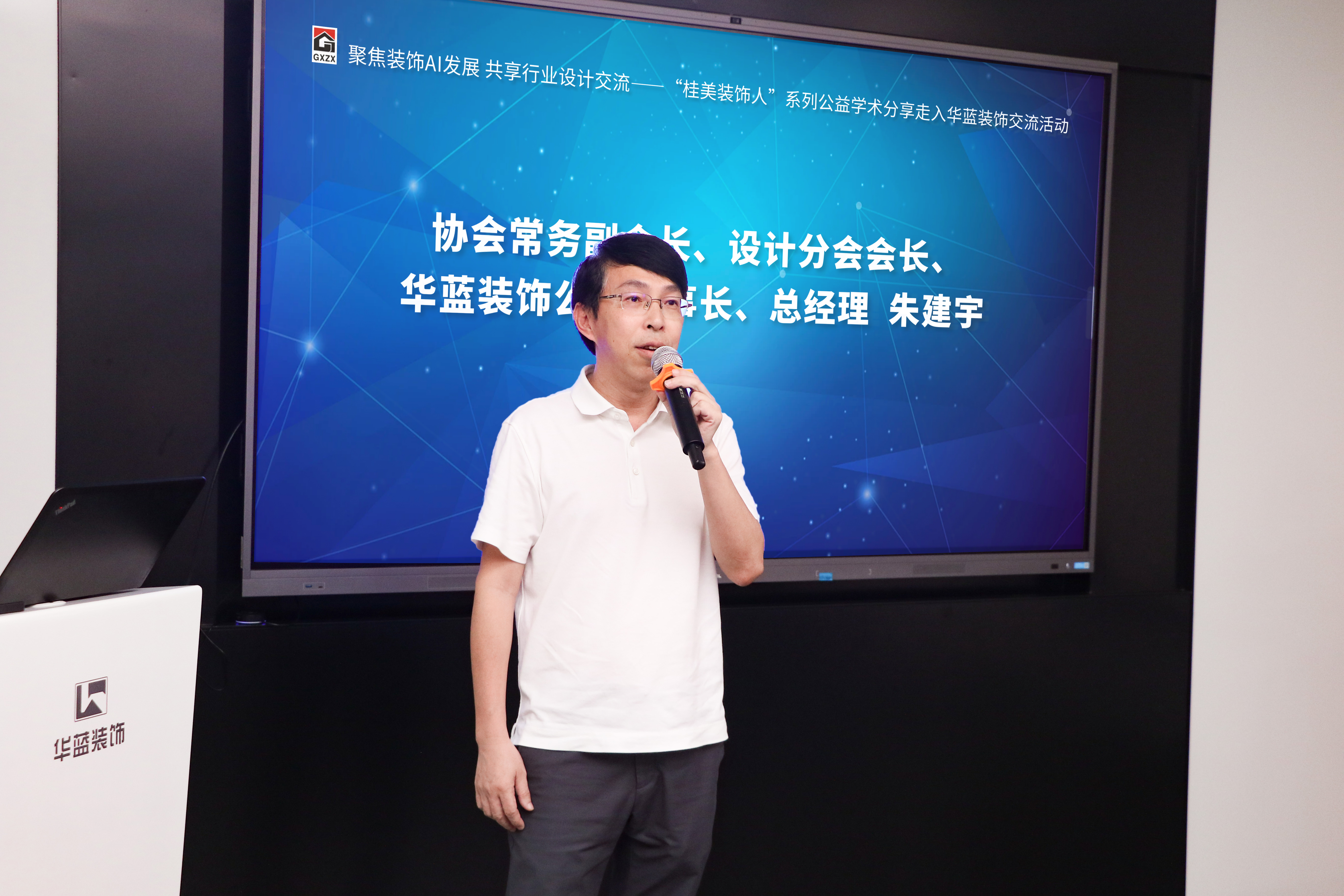 朱建宇对协会精心组织,在华蓝装饰举办本次活动表示感谢,对参会人员的到来表示热烈欢迎。他表示,当前人工智能、数字化、智能制造等新技术正在深刻影响建筑装饰行业发展,如何运用AI赋能设计创新、提升项目交付能力,是行业的重要课题。设计分会一直致力于推动行业技术进步与设计创新,鼓励设计师们运用前沿理念和技术为项目注入新活力。协会特别策划本次“桂美装饰人”系列公益学术分享活动,希望为行业搭建一个交流学习、分享成果、碰撞思想的平台,让更多优秀的设计理念和实践经验在全区范围内广泛传播。华蓝装饰作为本次活动的承办单位,结合近年来在AI设计应用和项目实践方面的经验,精心准备了内容丰富的优秀项目分享,希望能够借此机会与各位同行充分交流、碰撞出更多创新思维的火花,为广西装饰行业高质量发展贡献智慧和力量。